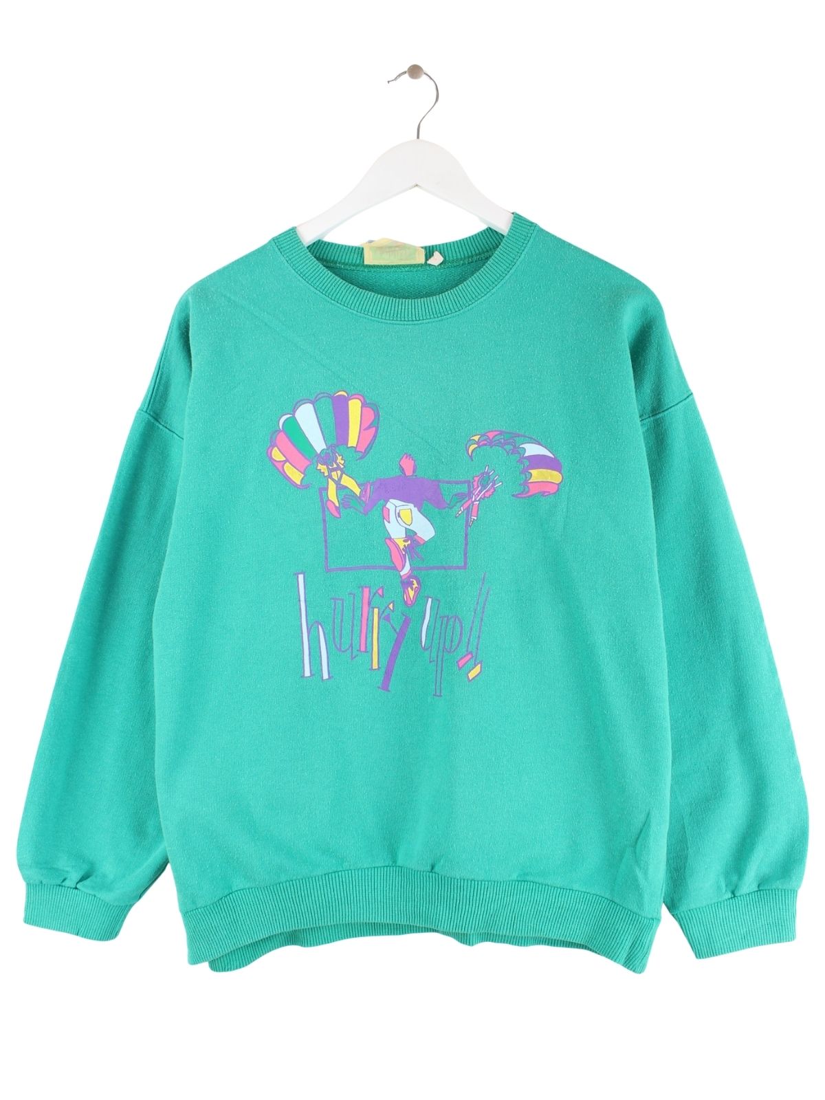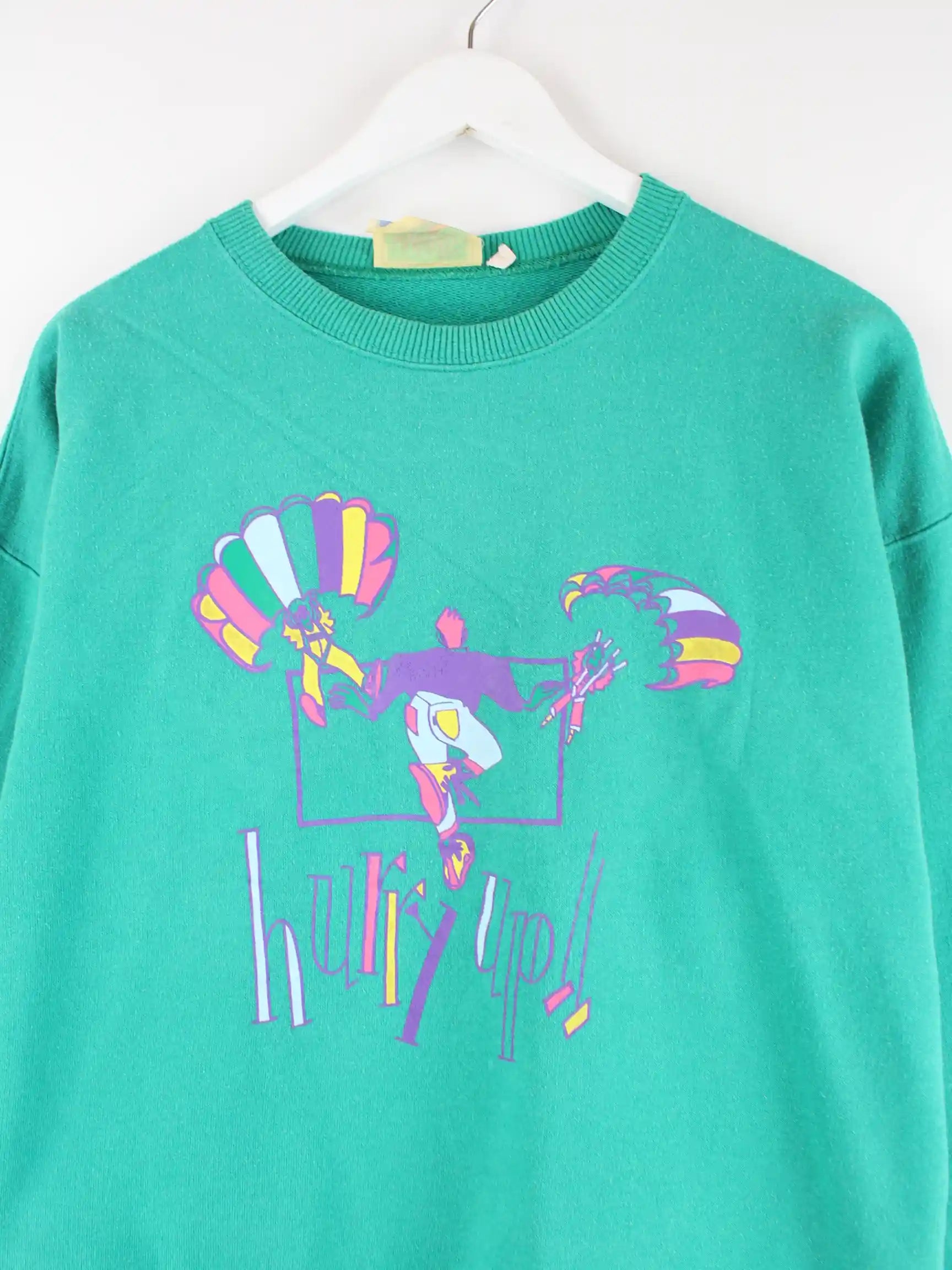 Vintage Damen 80s Hurry Up Print Sweater Grün L