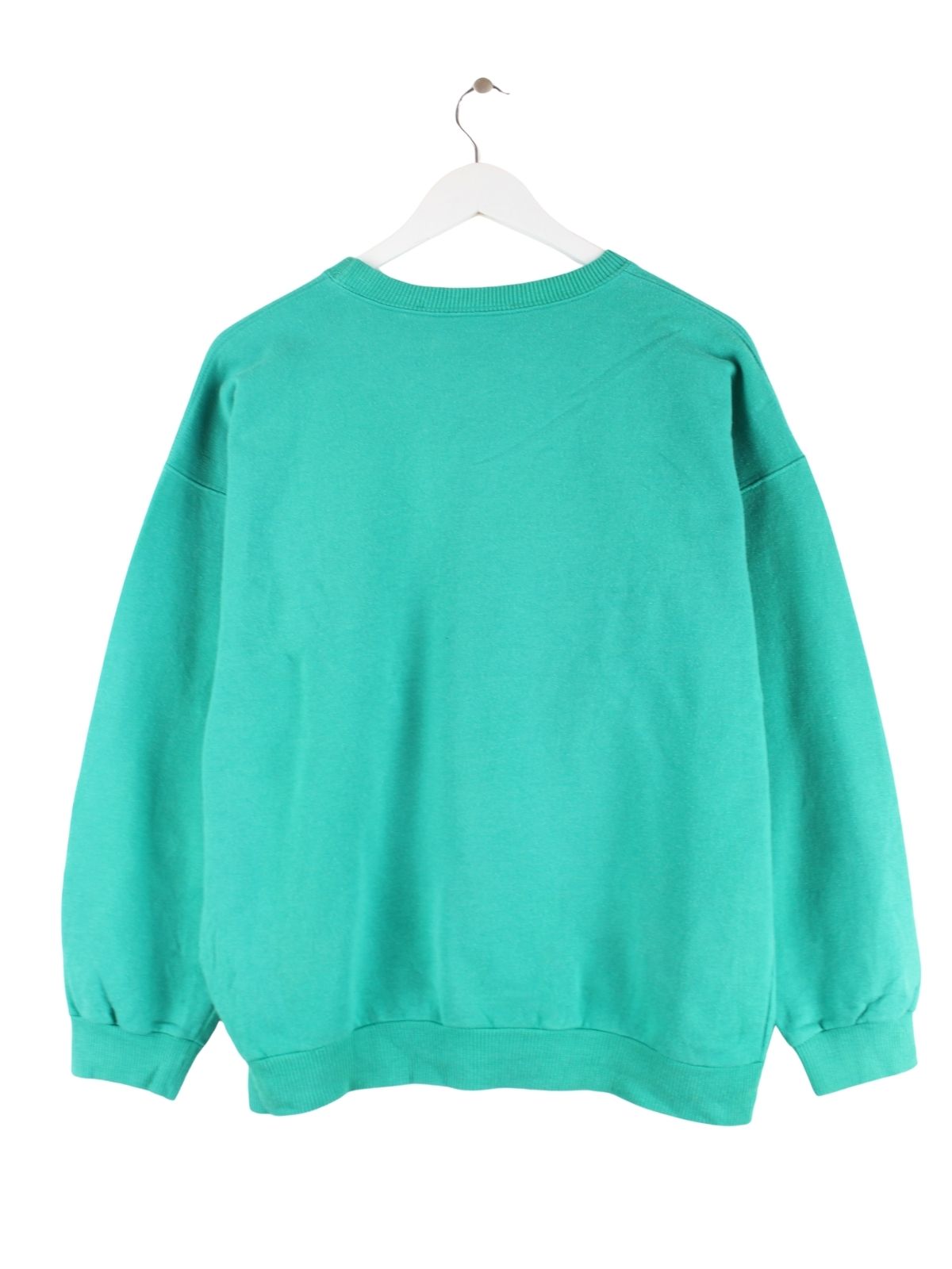 Vintage Sweater in Größe L aus den 80'ern. Er ist aus einer Baumwollmischung angefertigt und in Grün lieferbar. Mit seltenem Up Print.