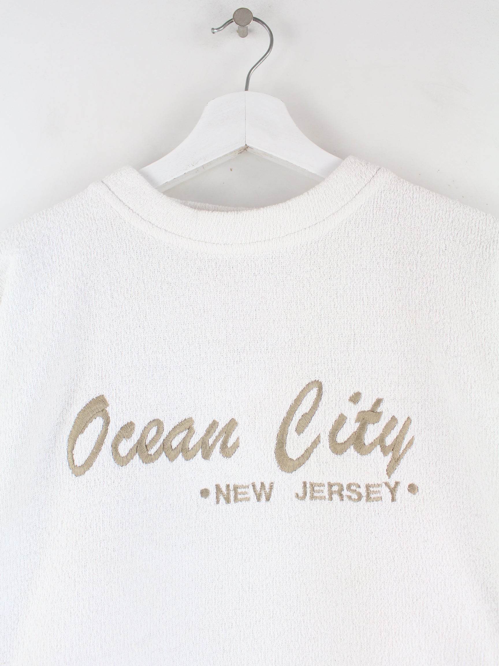 Vintage Damen 90s Ocean City Embroidered Sweater Weiß L