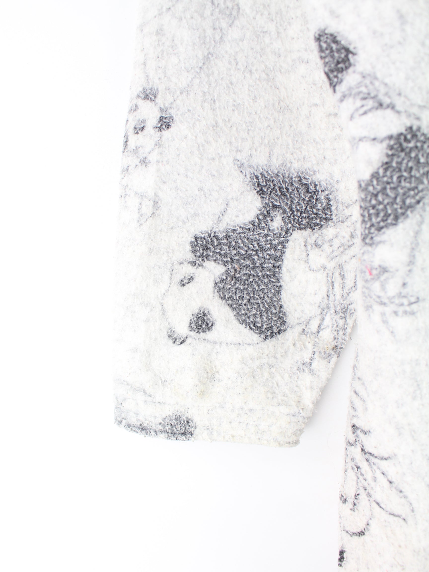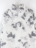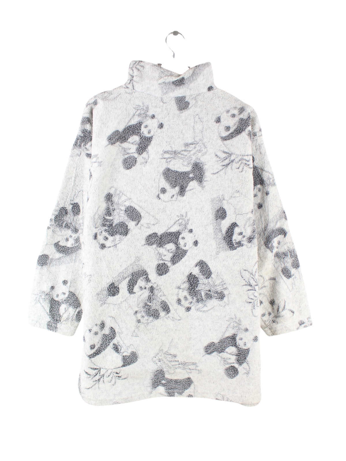 Vintage Damen 90s Panda Crazy Pattern Half Zip Fleece Sweater Grau L