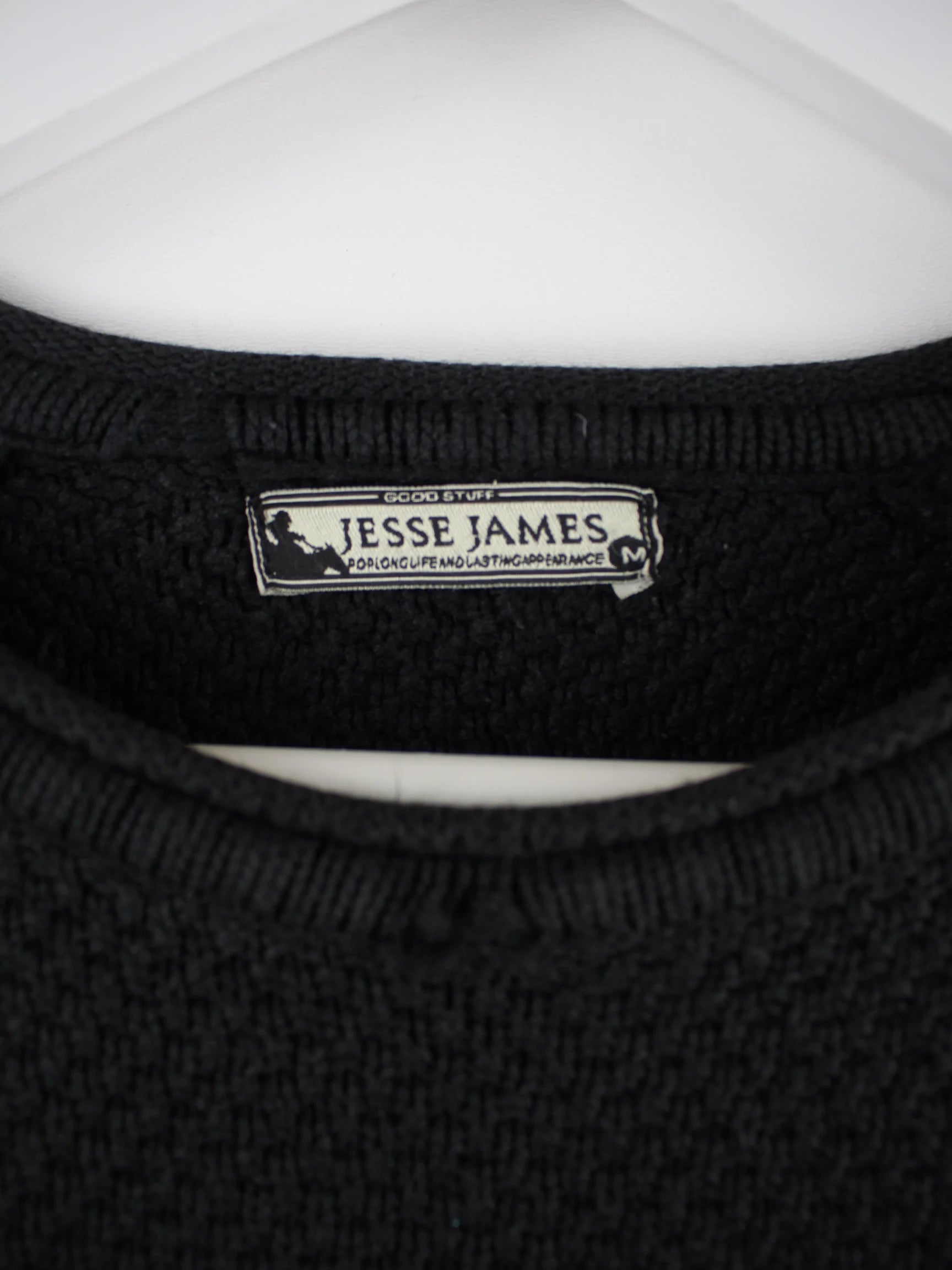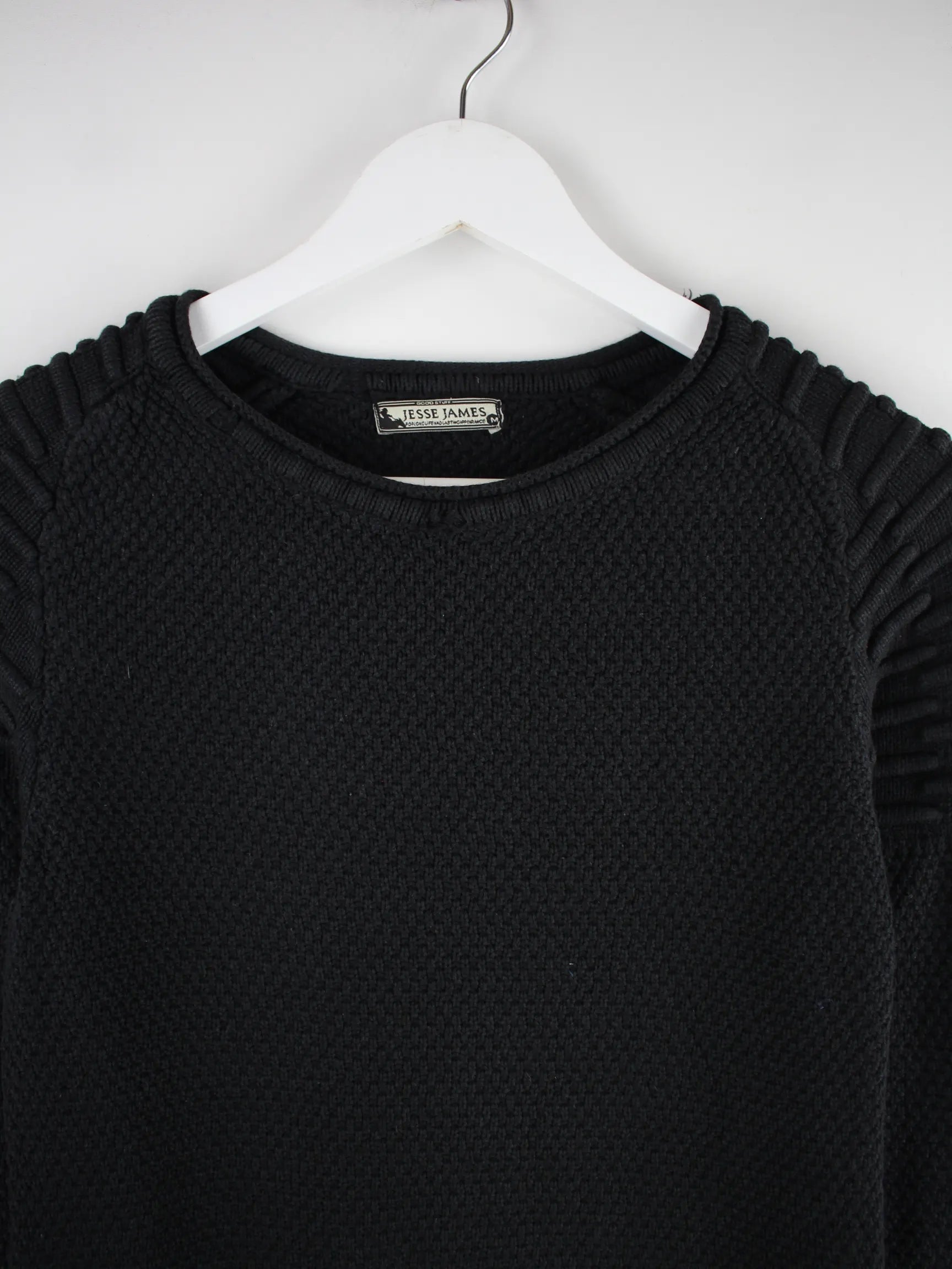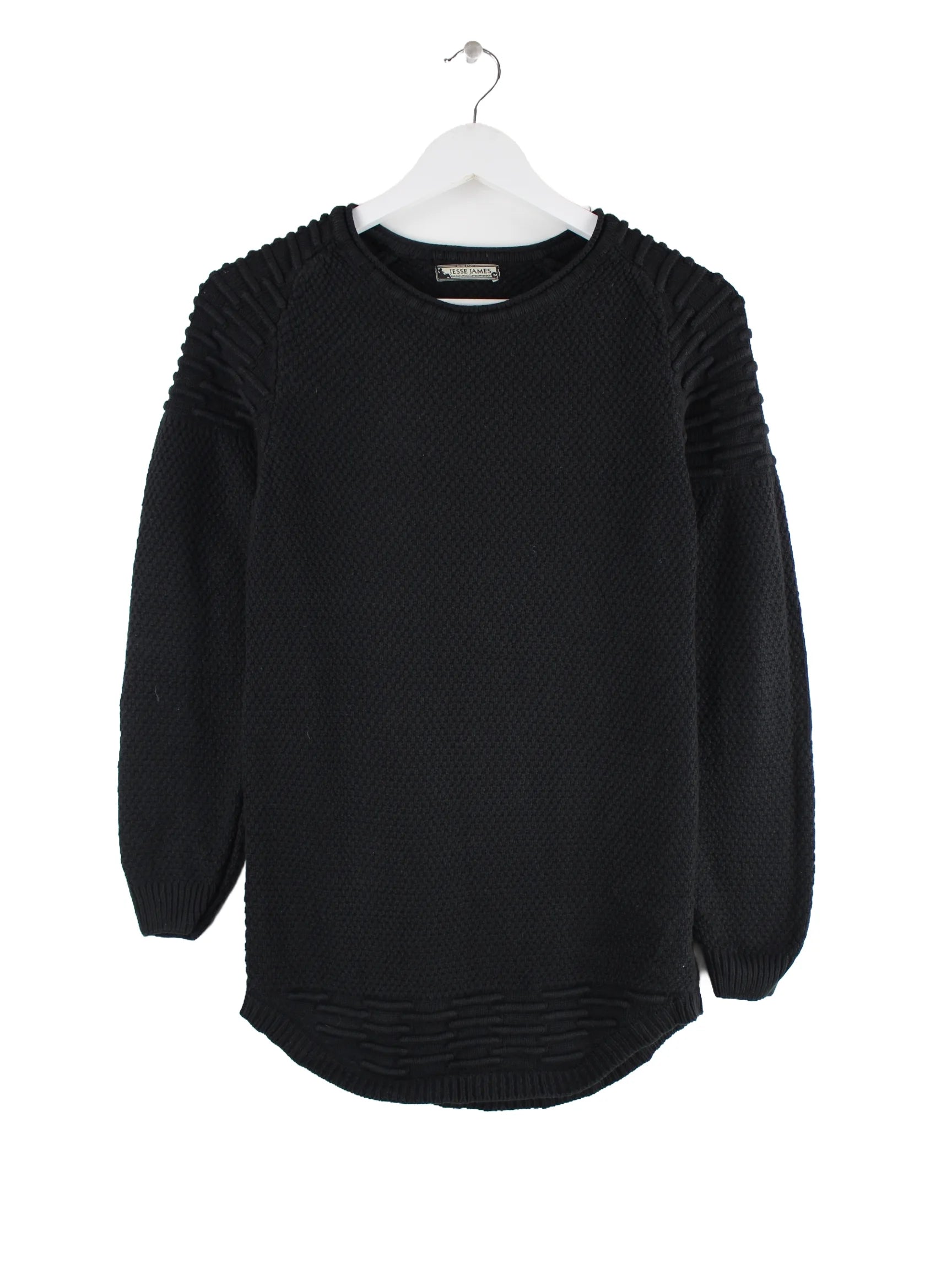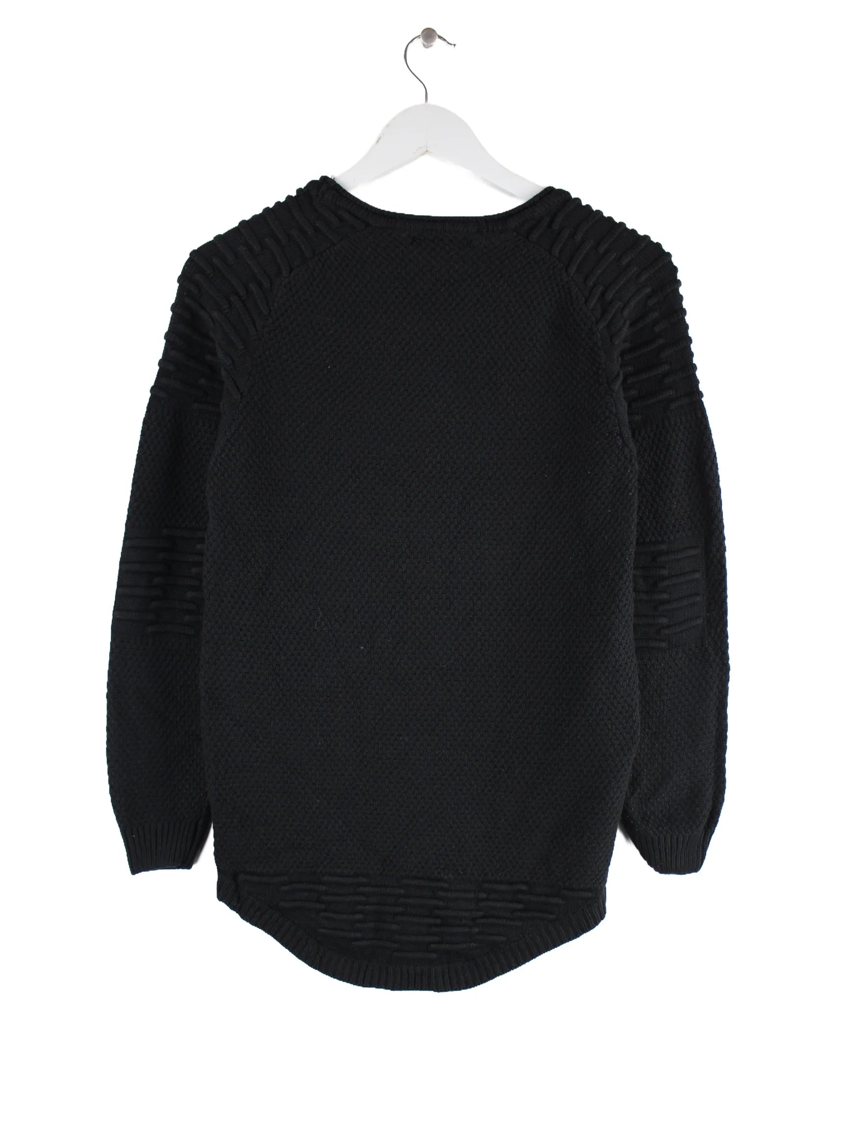 Vintage Pullover in Größe M aus den 90'ern. Er ist aus einer Baumwollmischung angefertigt und in Schwarz zu haben.