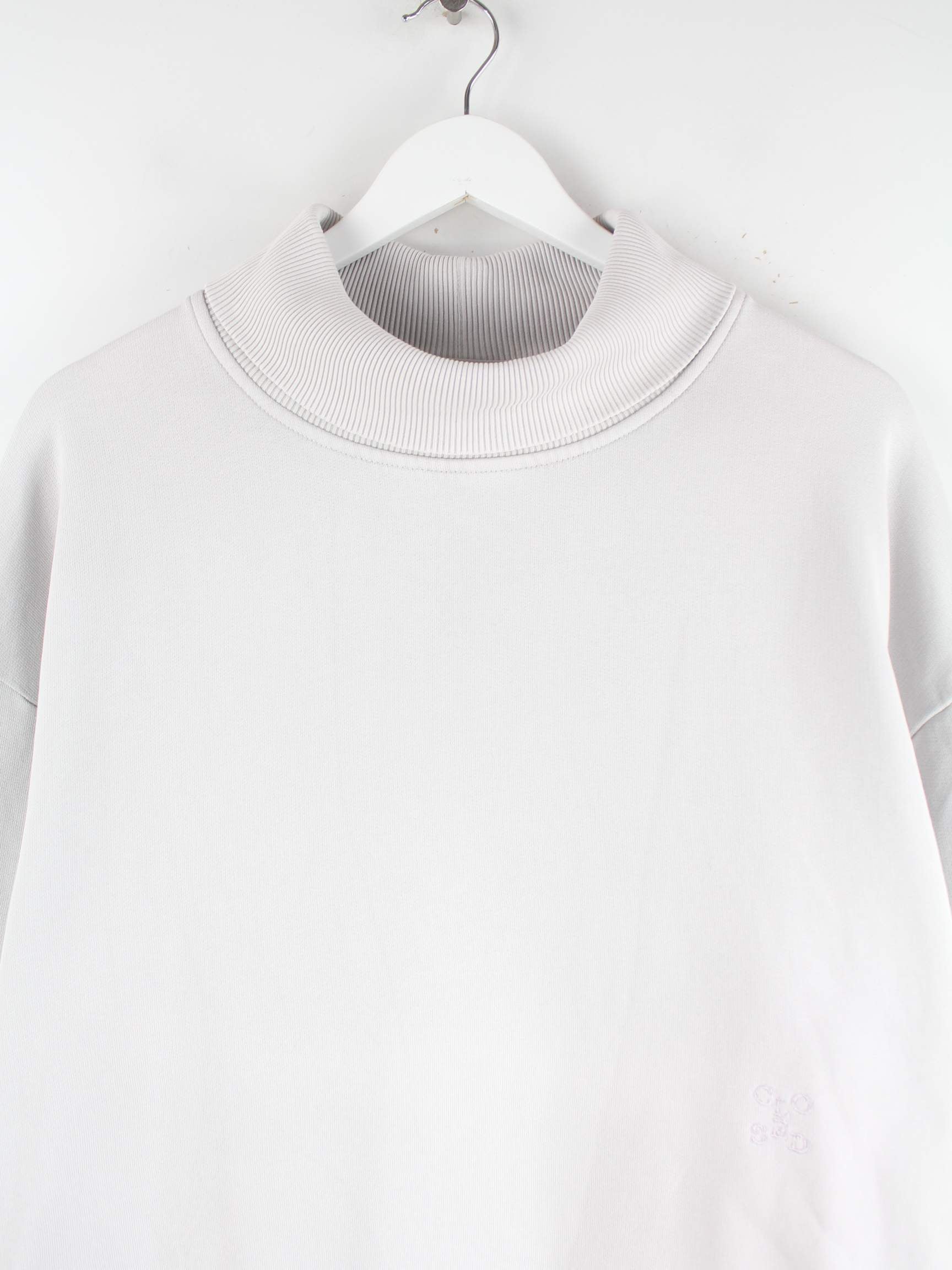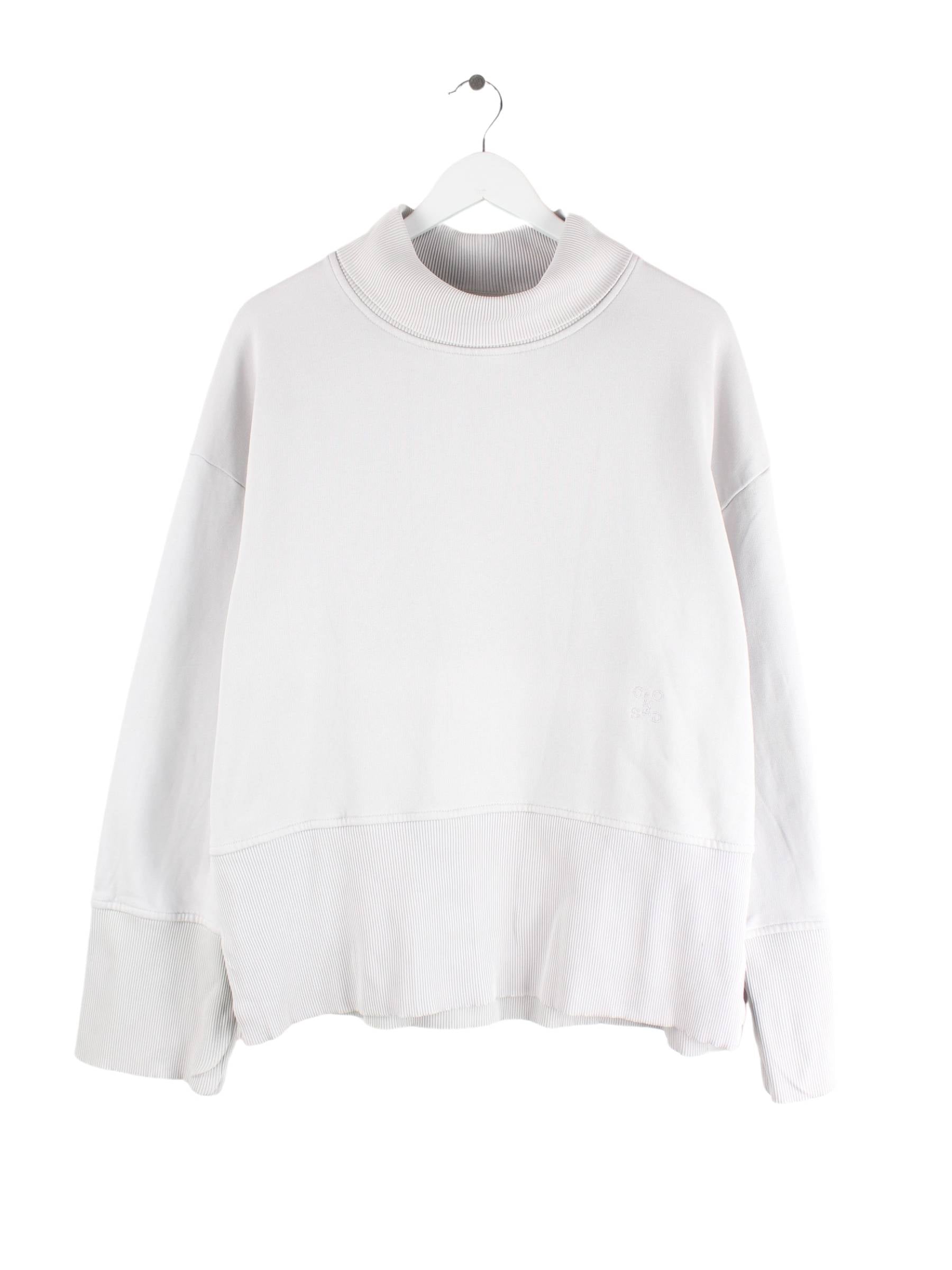 Vintage Sweater in Größe M. Er ist aus einer Baumwollmischung und in Grau zu haben.