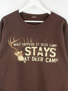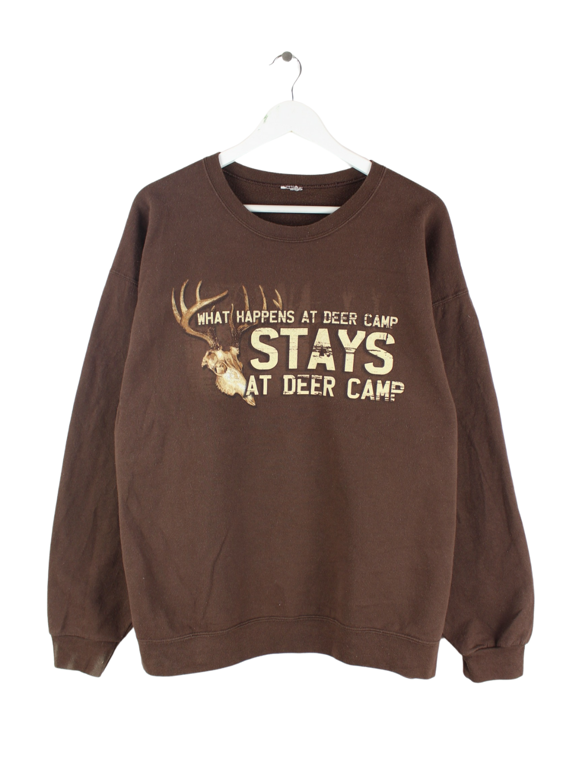Vintage Sweater in Größe XL. Er ist aus einer Baumwollmischung gefertigt und in Braun lieferbar. Mit tollem Camp Print.