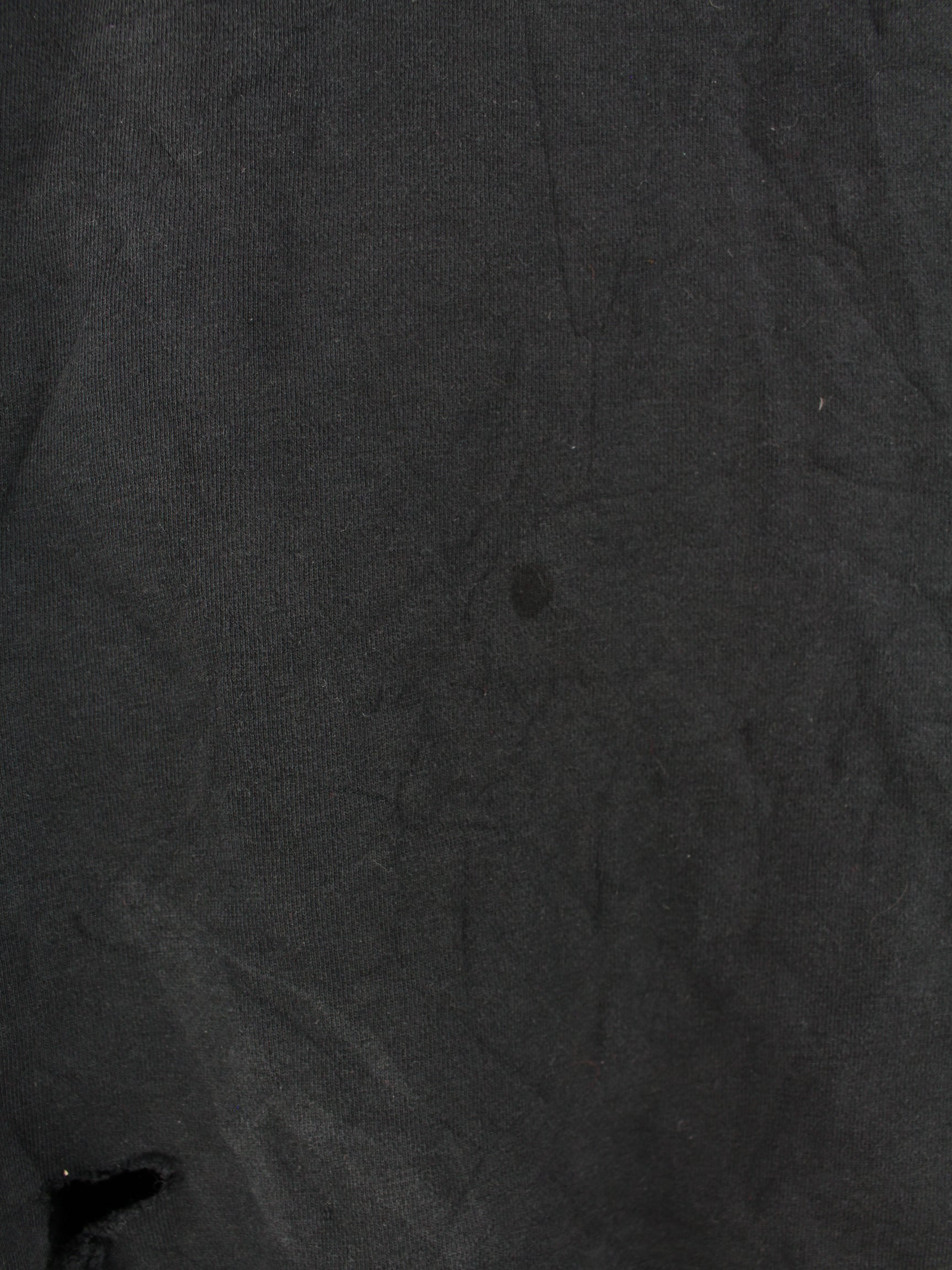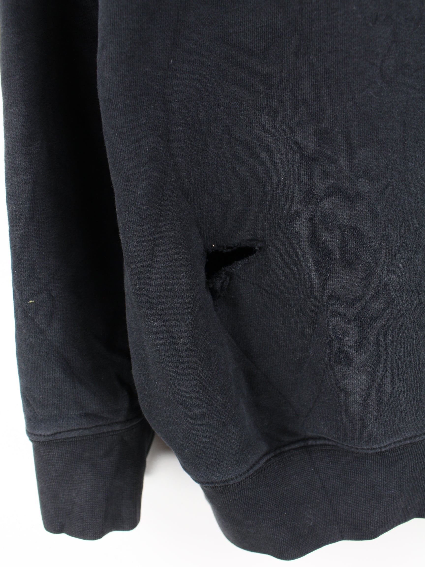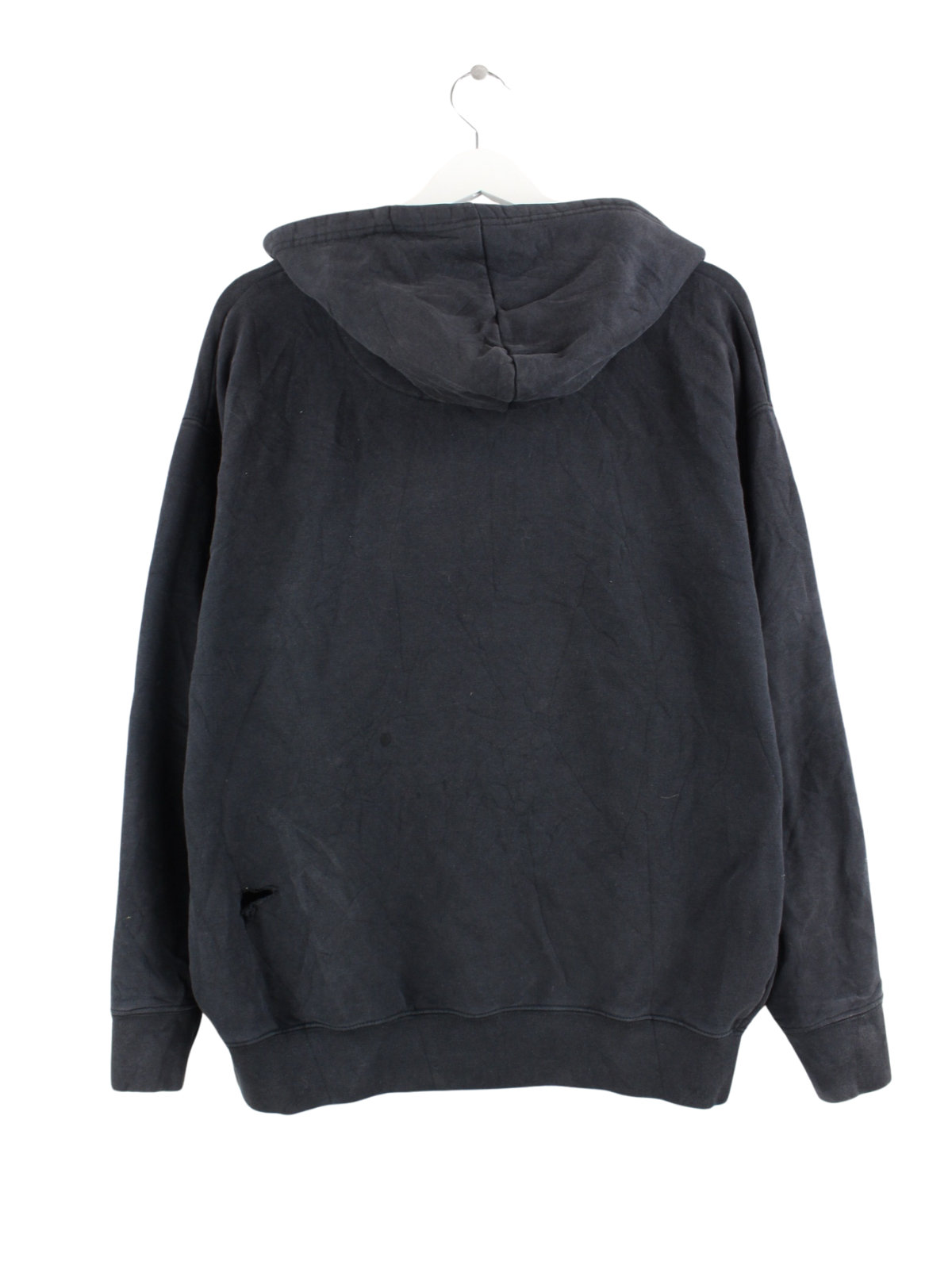 Schwarzer Vintage Hoodie mit gestickten Motiven in Größe S. Er ist aus einer Baumwollmischung gefertigt. Den Zustand würden wir als 'In Ordnung' bezeichnen (vergl. Bilder).