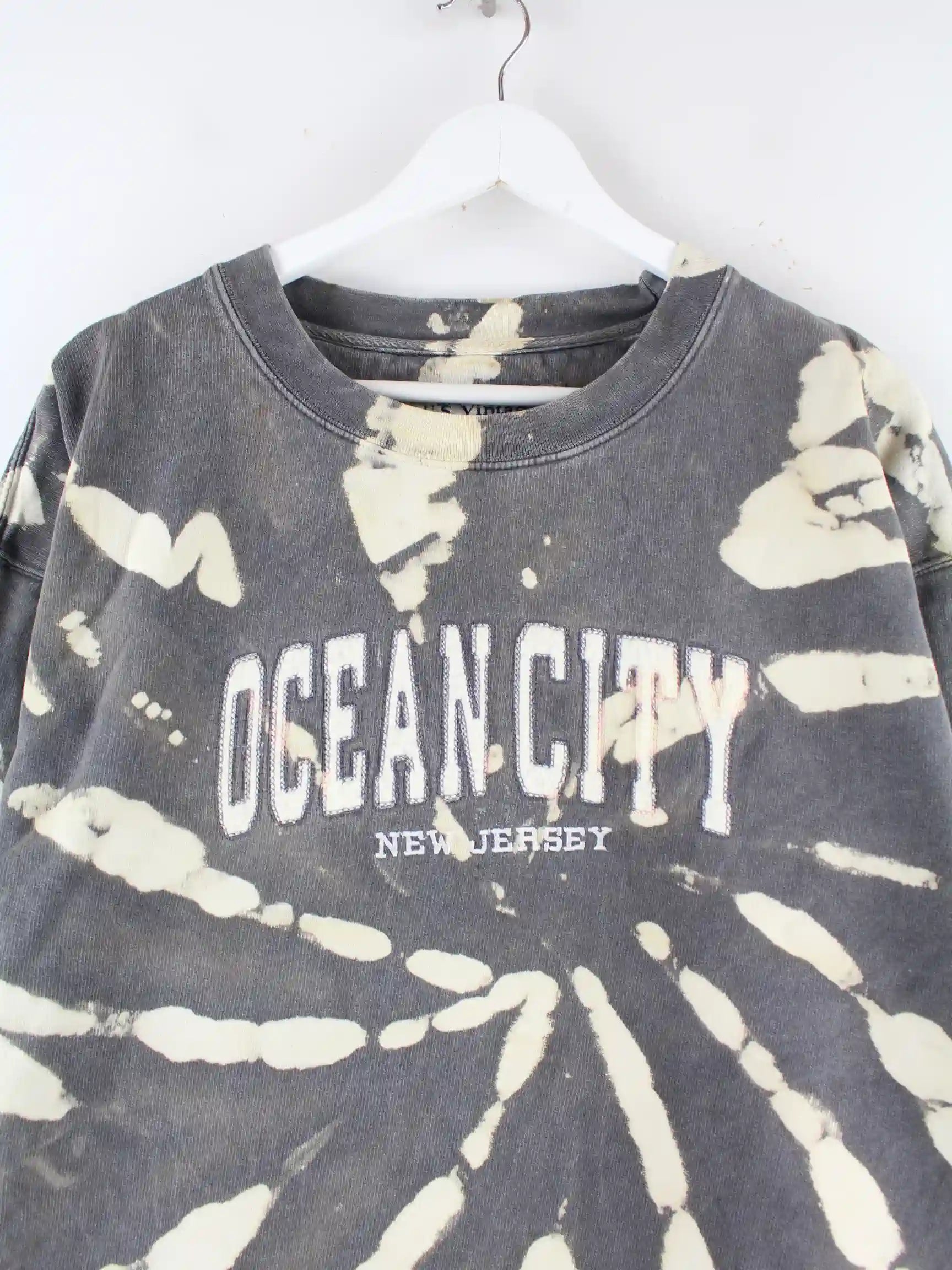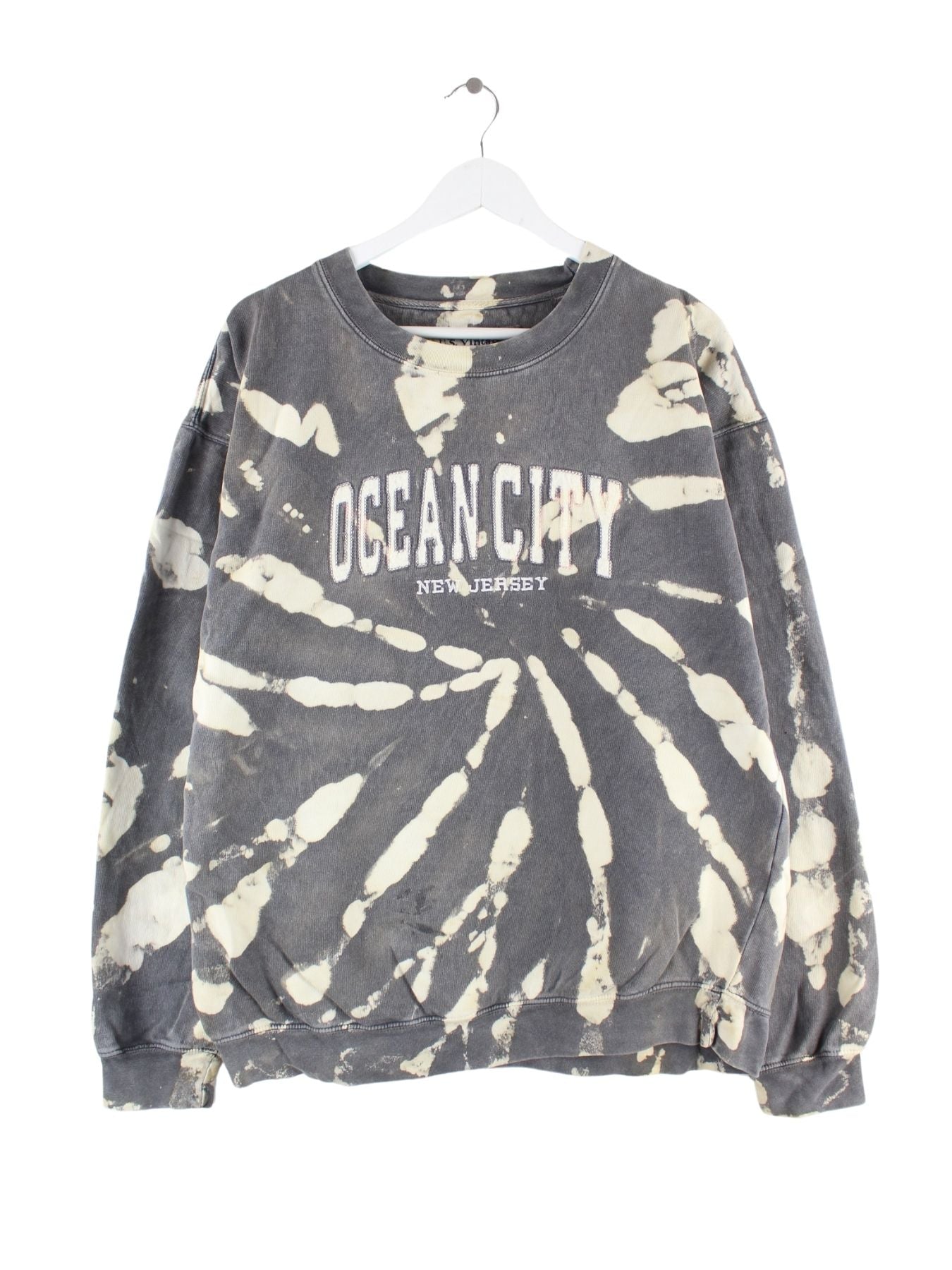 Vintage Ocean City Embroidered Rework Tie Dye Sweater Grau XL