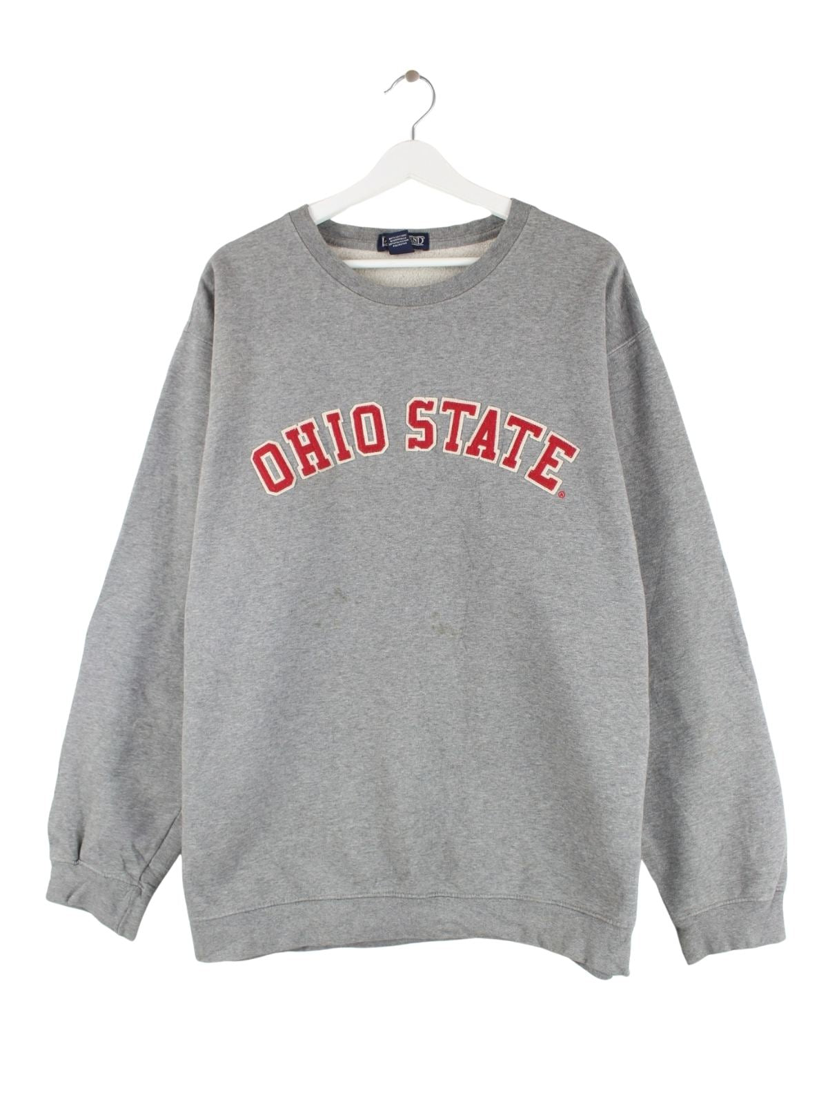 Vintage Sweater in Größe L. Er ist aus einer Baumwollmischung gefertigt und in Grau lieferbar.