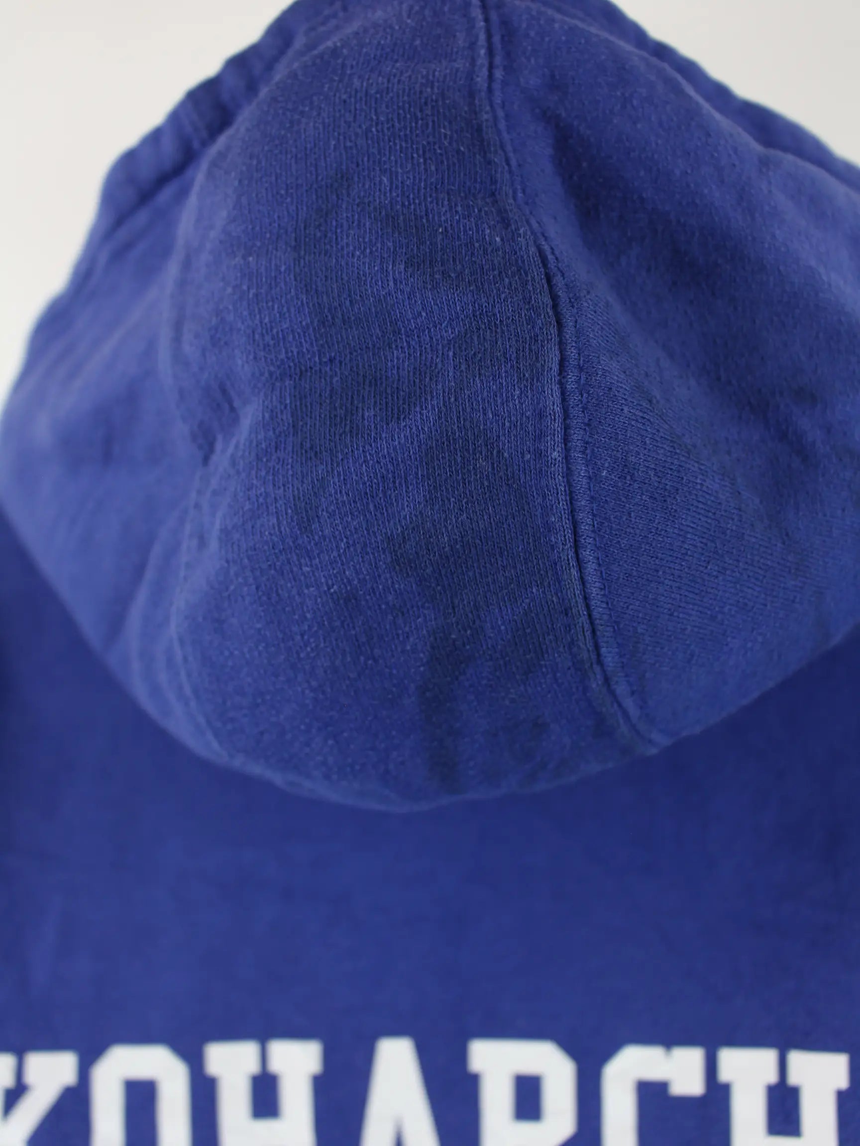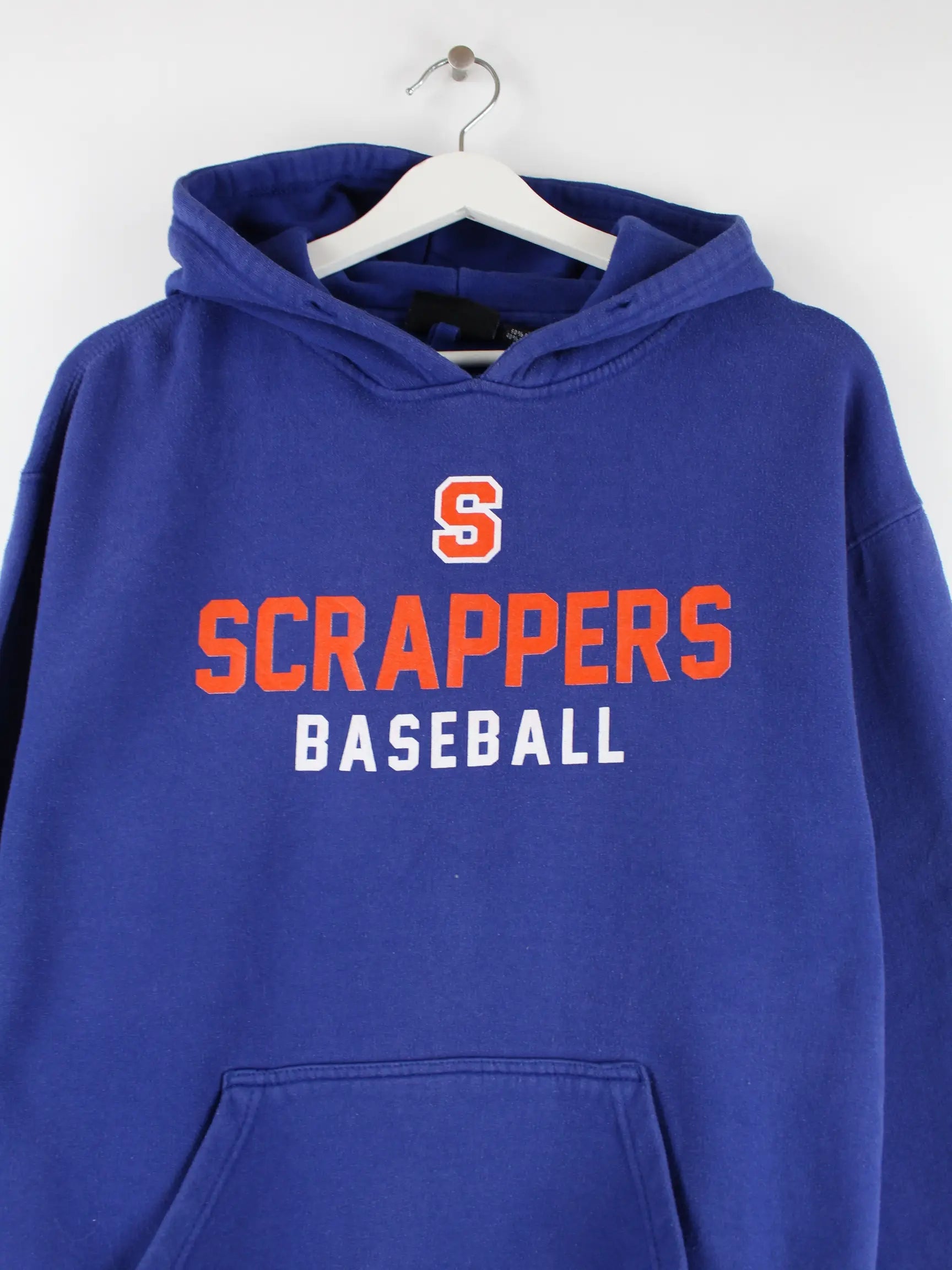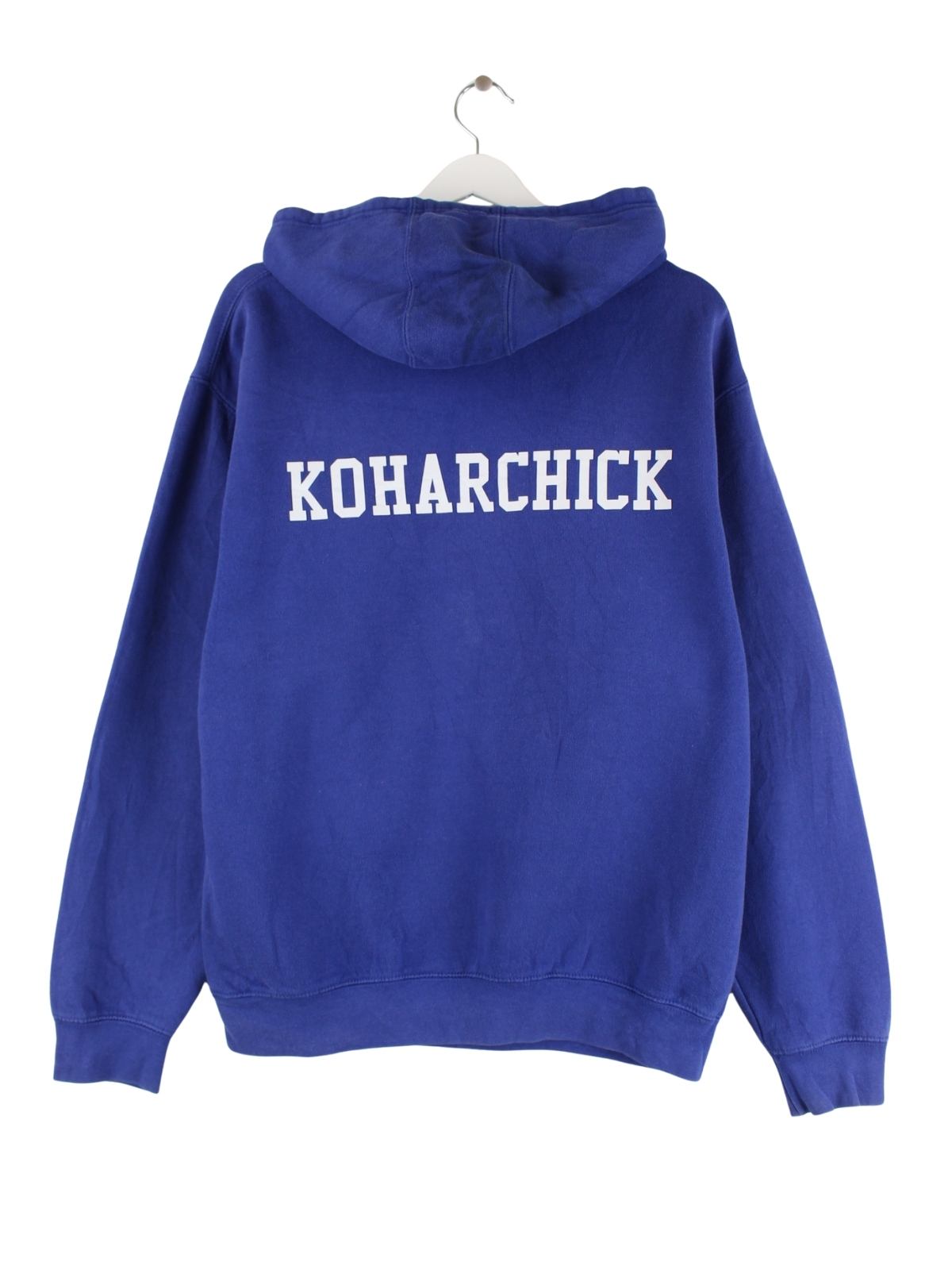 Vintage Hoodie in Größe M. Er ist aus einer Baumwollmischung gemacht und in Blau auf Lager.