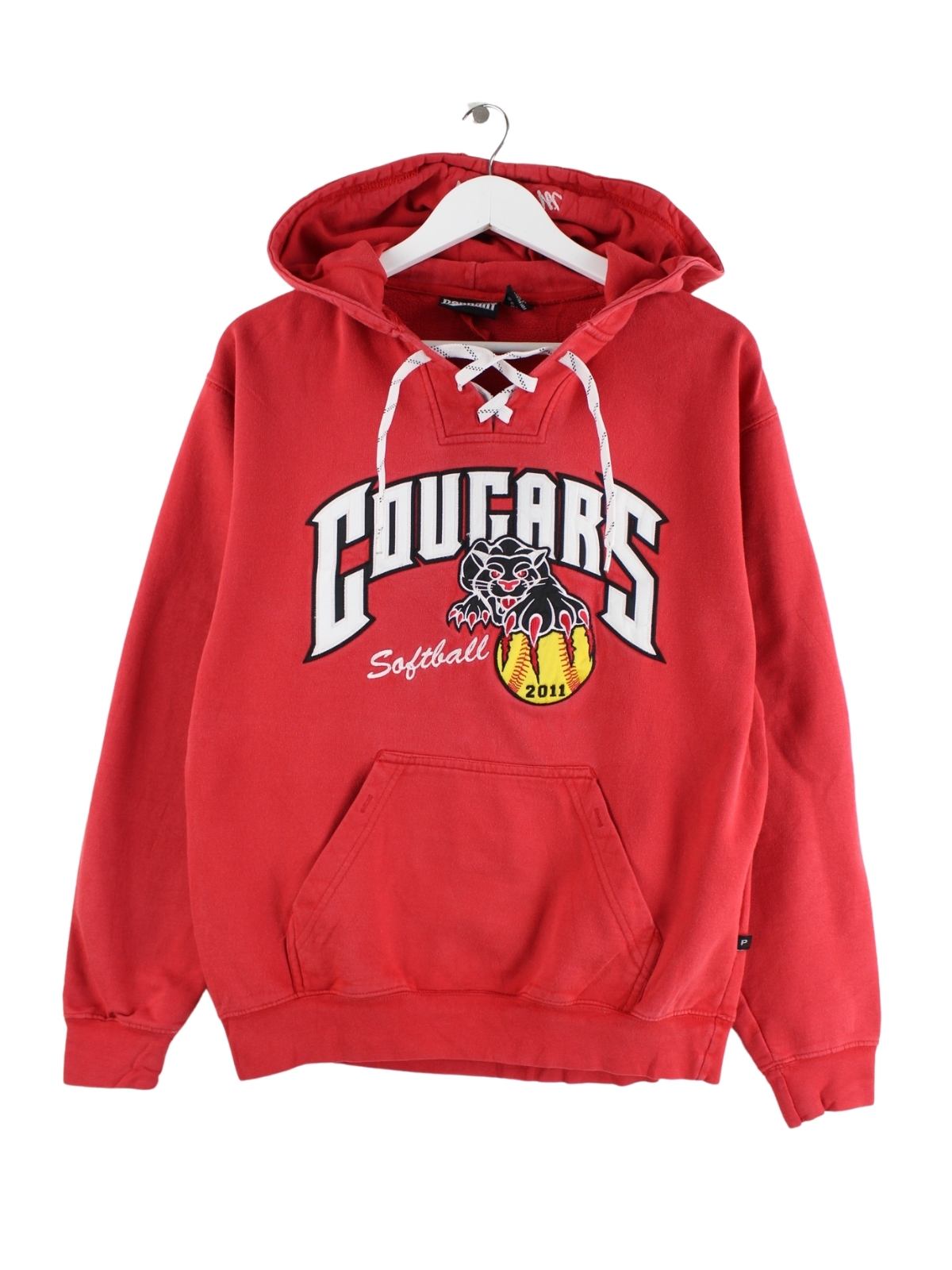Vintage Softball Cougars Embroidered Hoodie Rot S