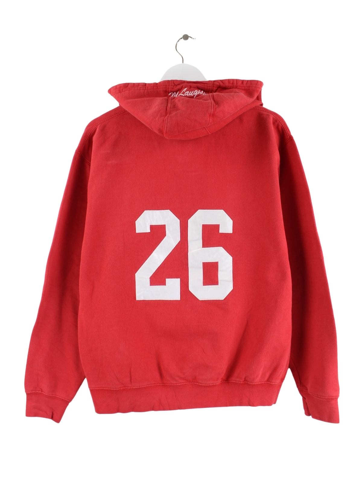 Roter Vintage Hoodie mit Stick in Größe S. Er ist aus einer Baumwollmischung angefertigt und in gutem Zustand vorrätig.
