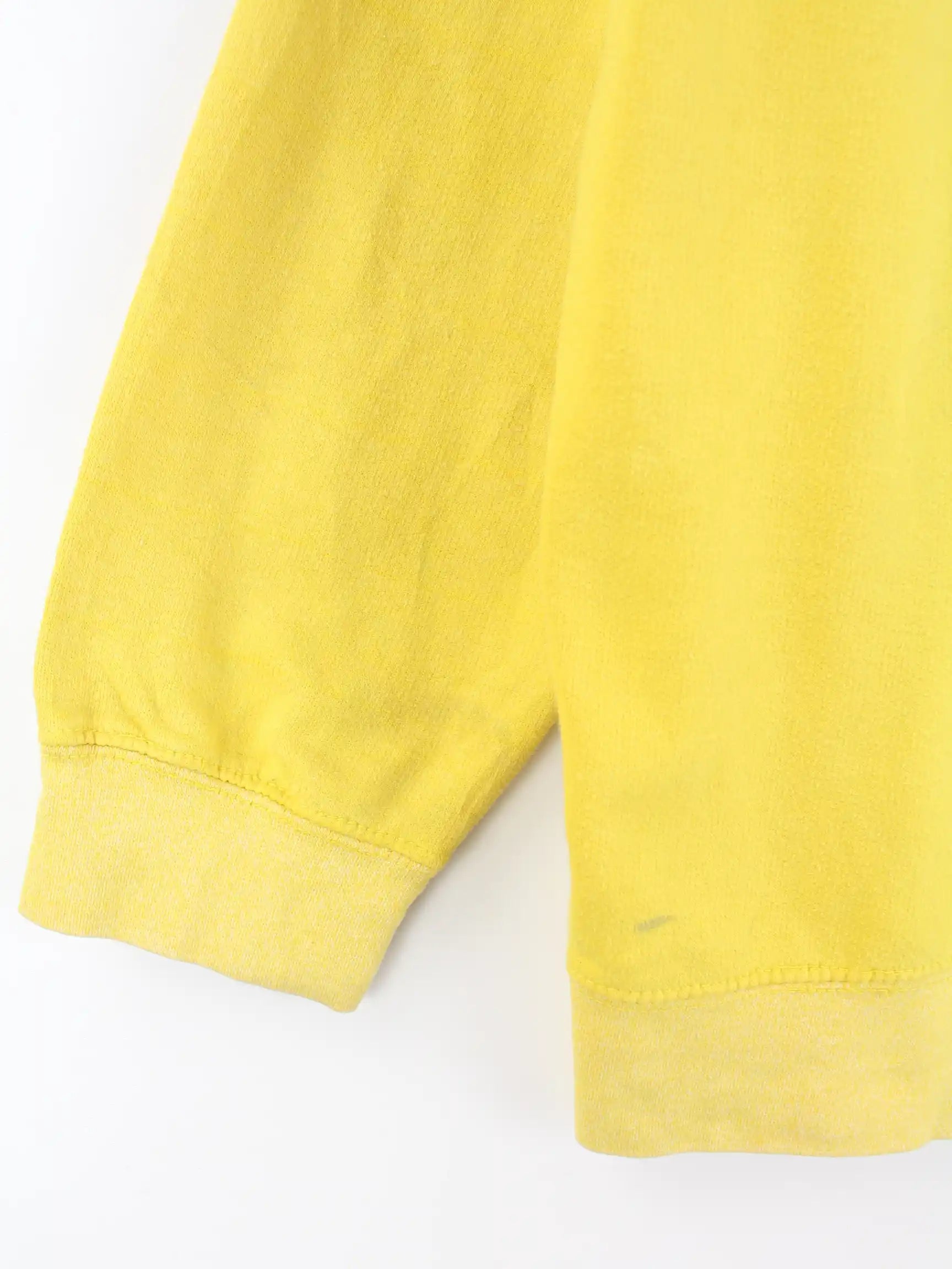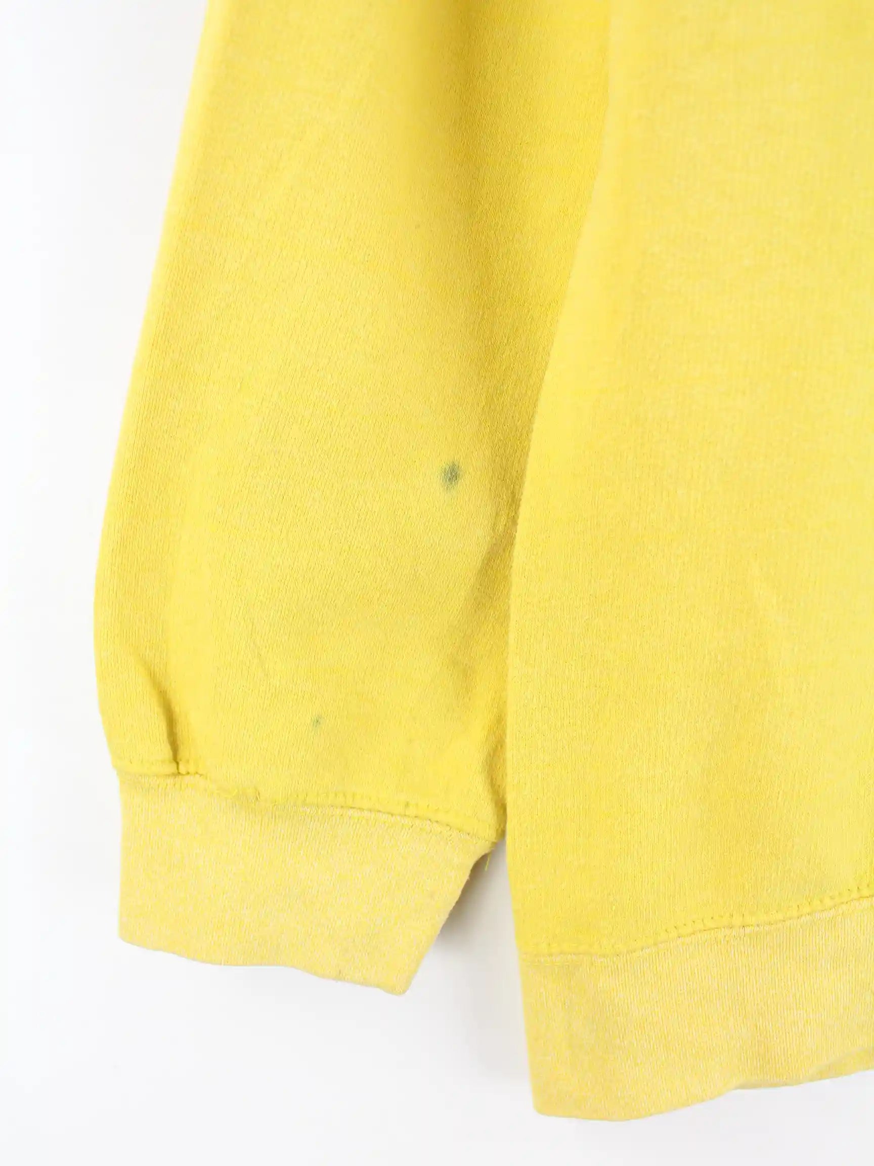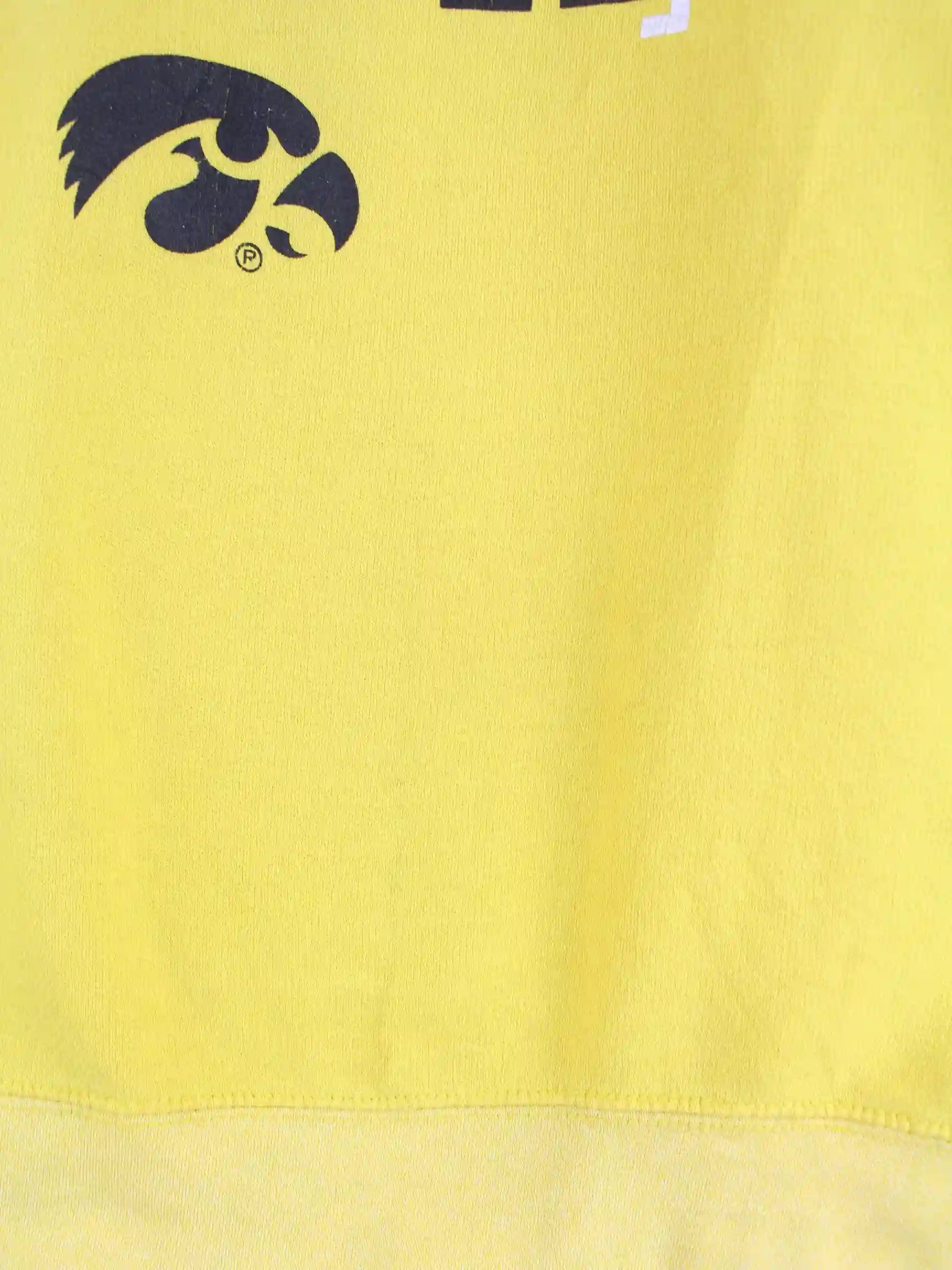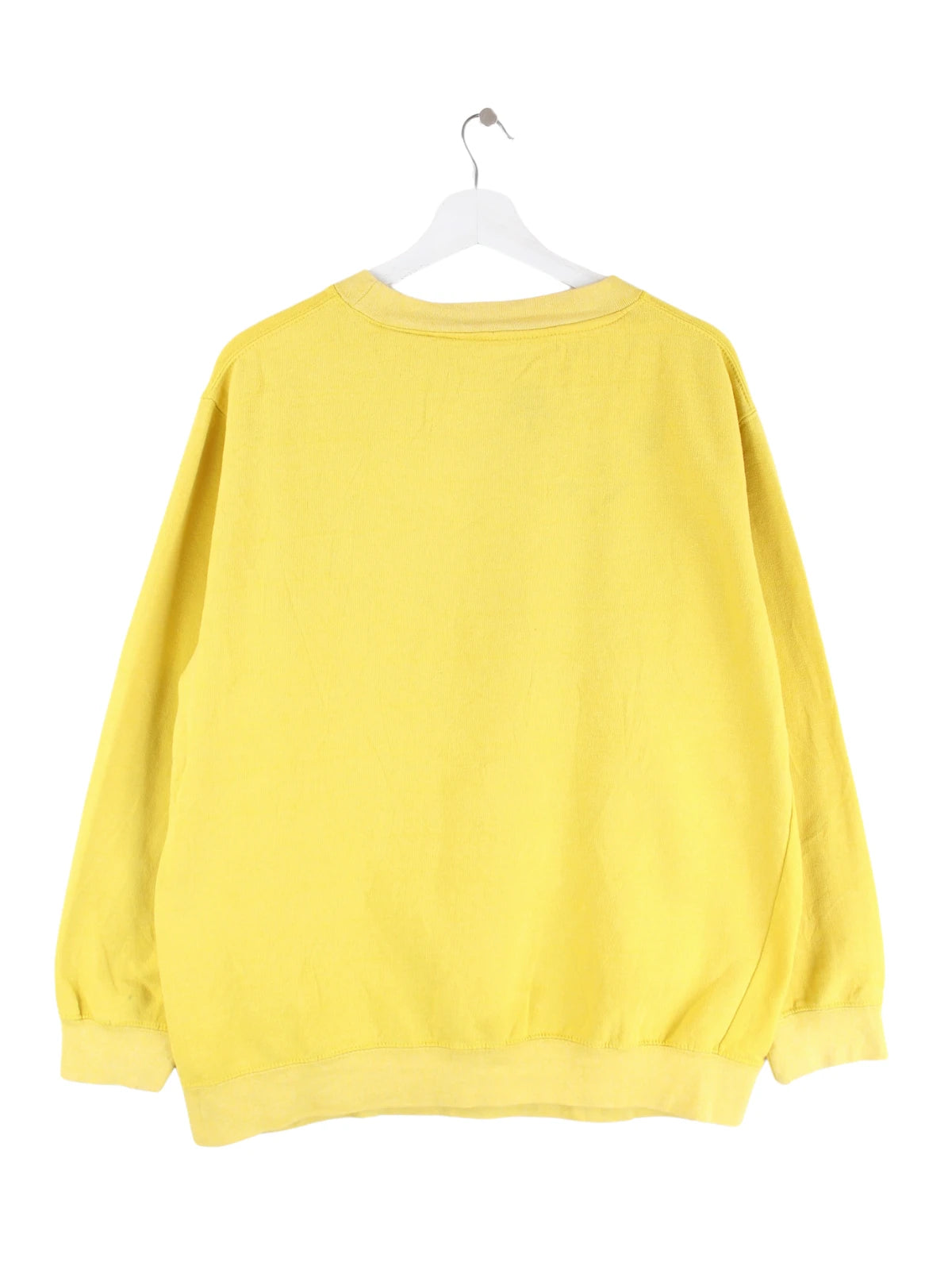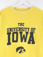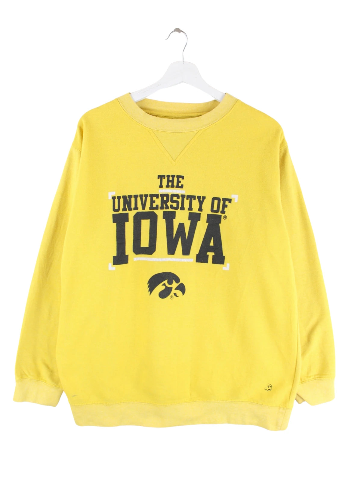 Vintage Sweater in Größe L. Er ist aus einer Baumwollmischung gemacht und in Gelb bei uns vorrätig. Mit schönem IOWA Print.