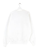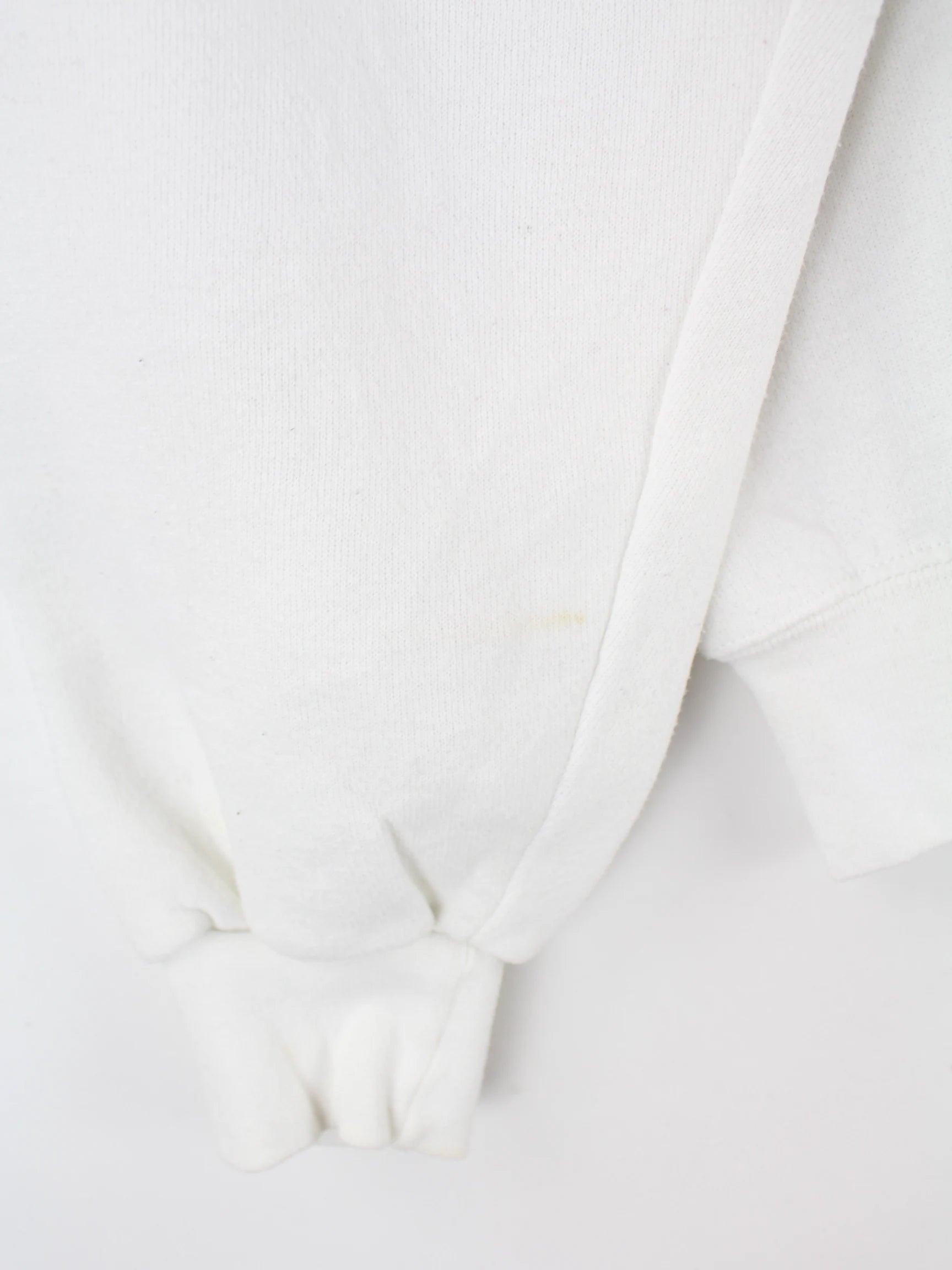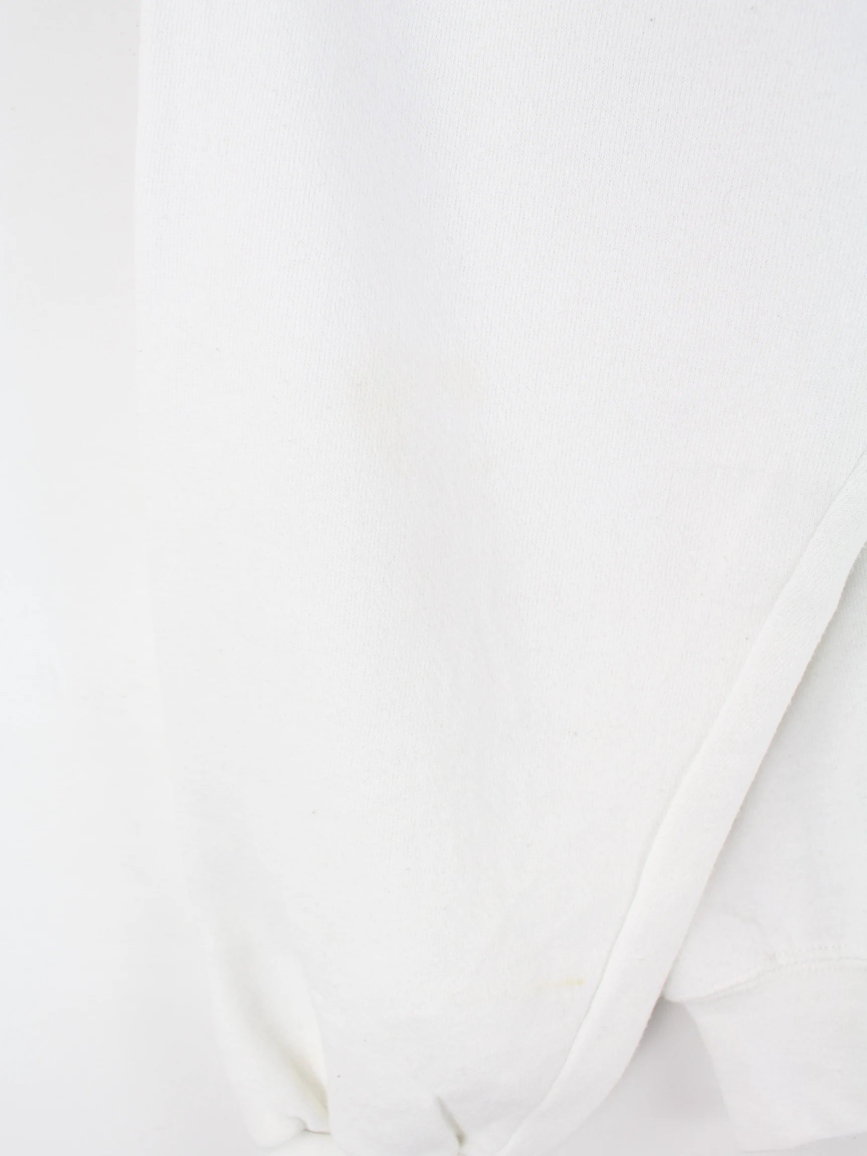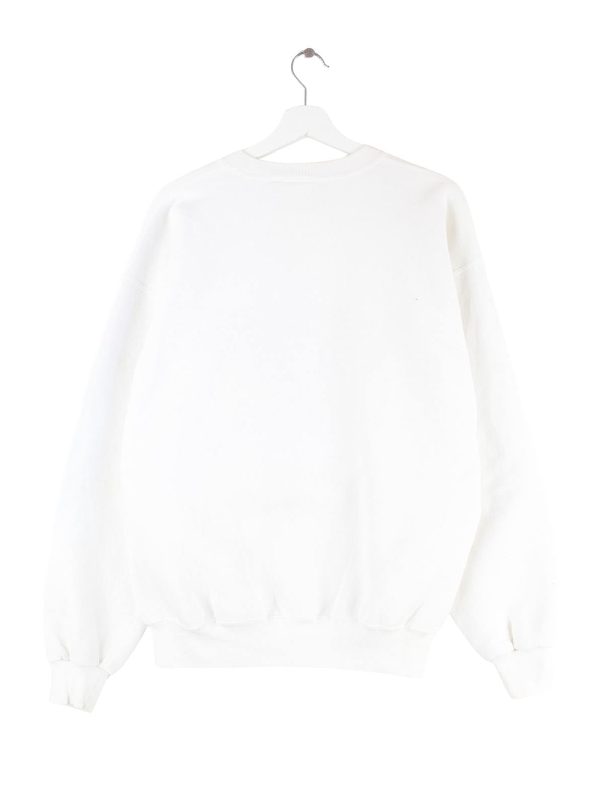 Vintage Sweater mit Stickereien in Größe L. Er ist aus einer Baumwollmischung gefertigt und in Weiß vorrätig.