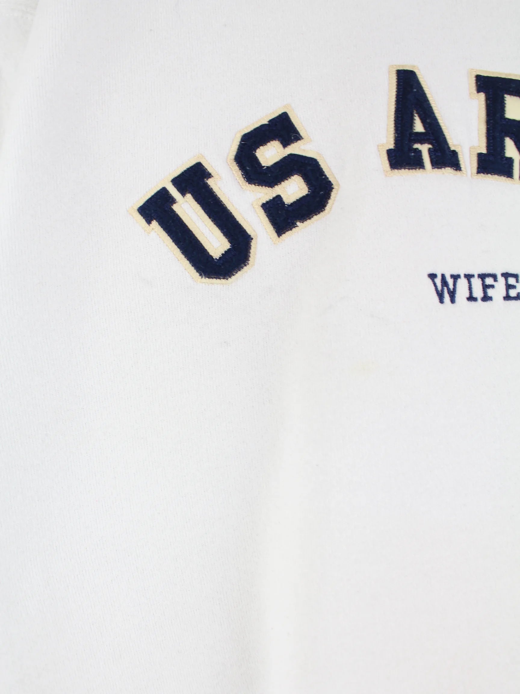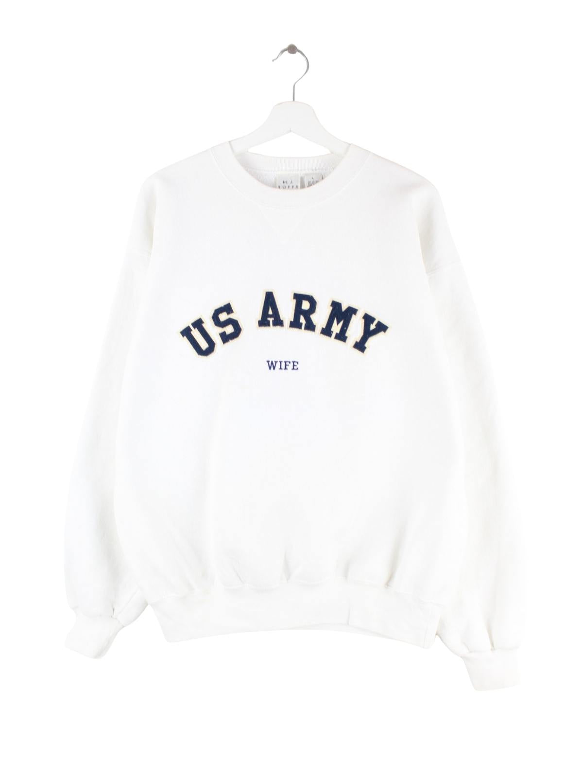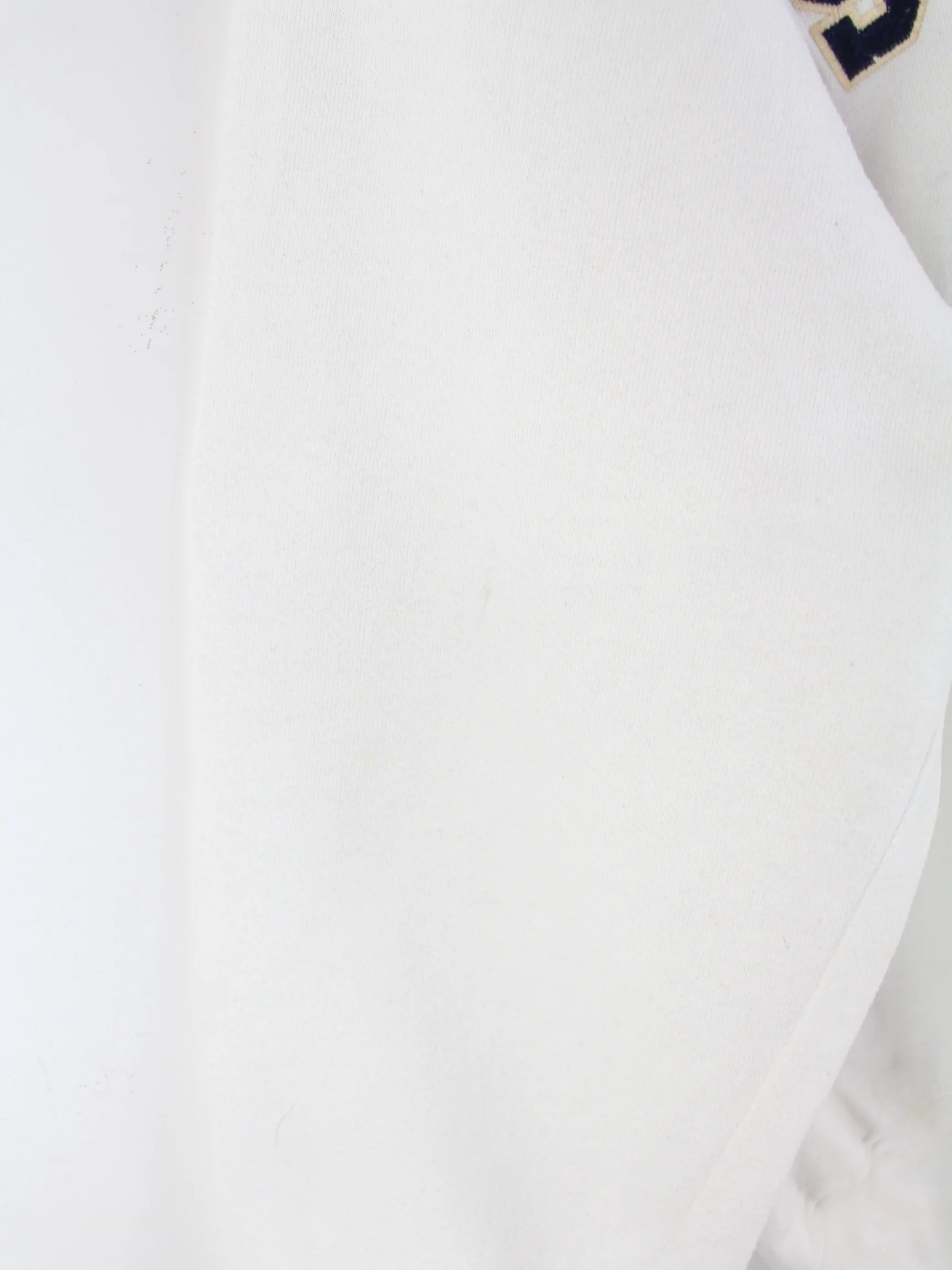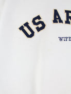 Vintage Sweater mit Stickereien in Größe L. Er ist aus einer Baumwollmischung gefertigt und in Weiß vorrätig.