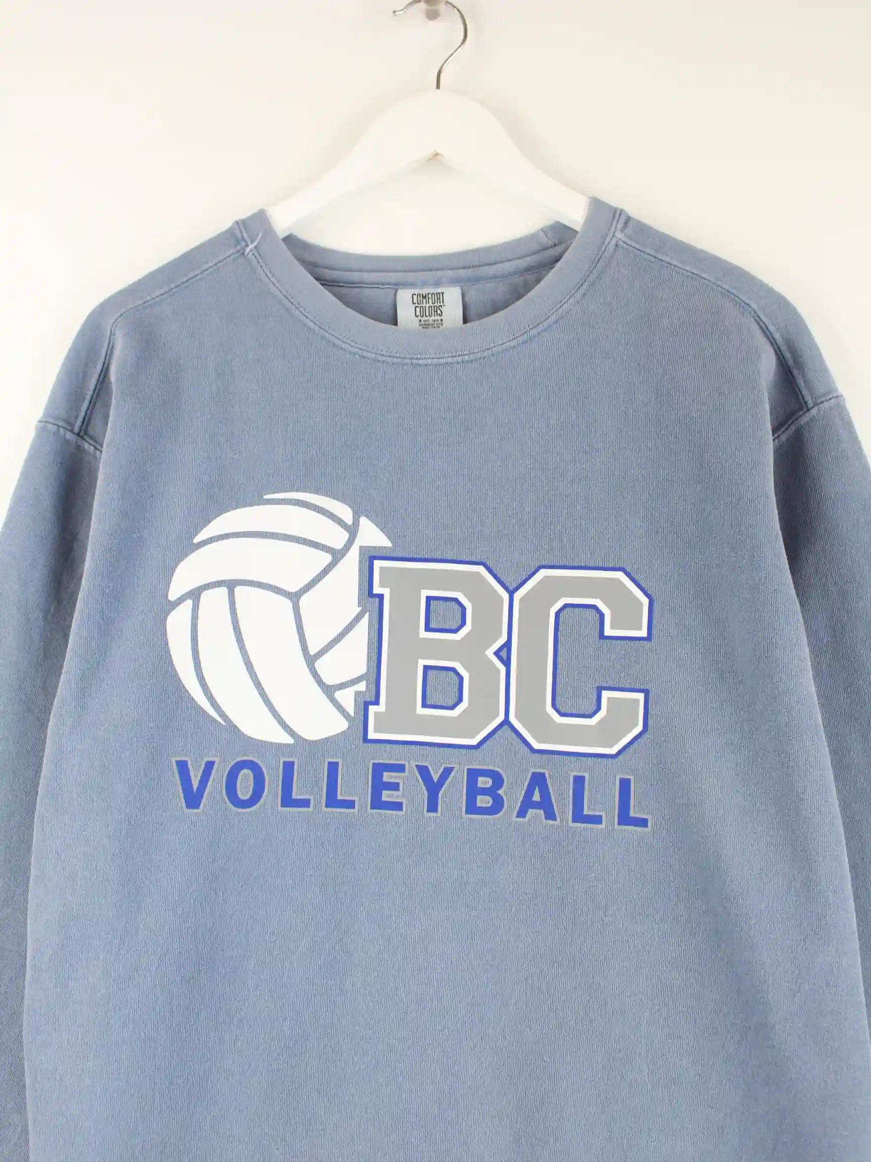 Blauer Vintage Sweater in Größe M. Er ist aus einer Baumwollmischung gemacht und in sehr gutem Zustand zu haben. Mit seltenem Volleyball Print.