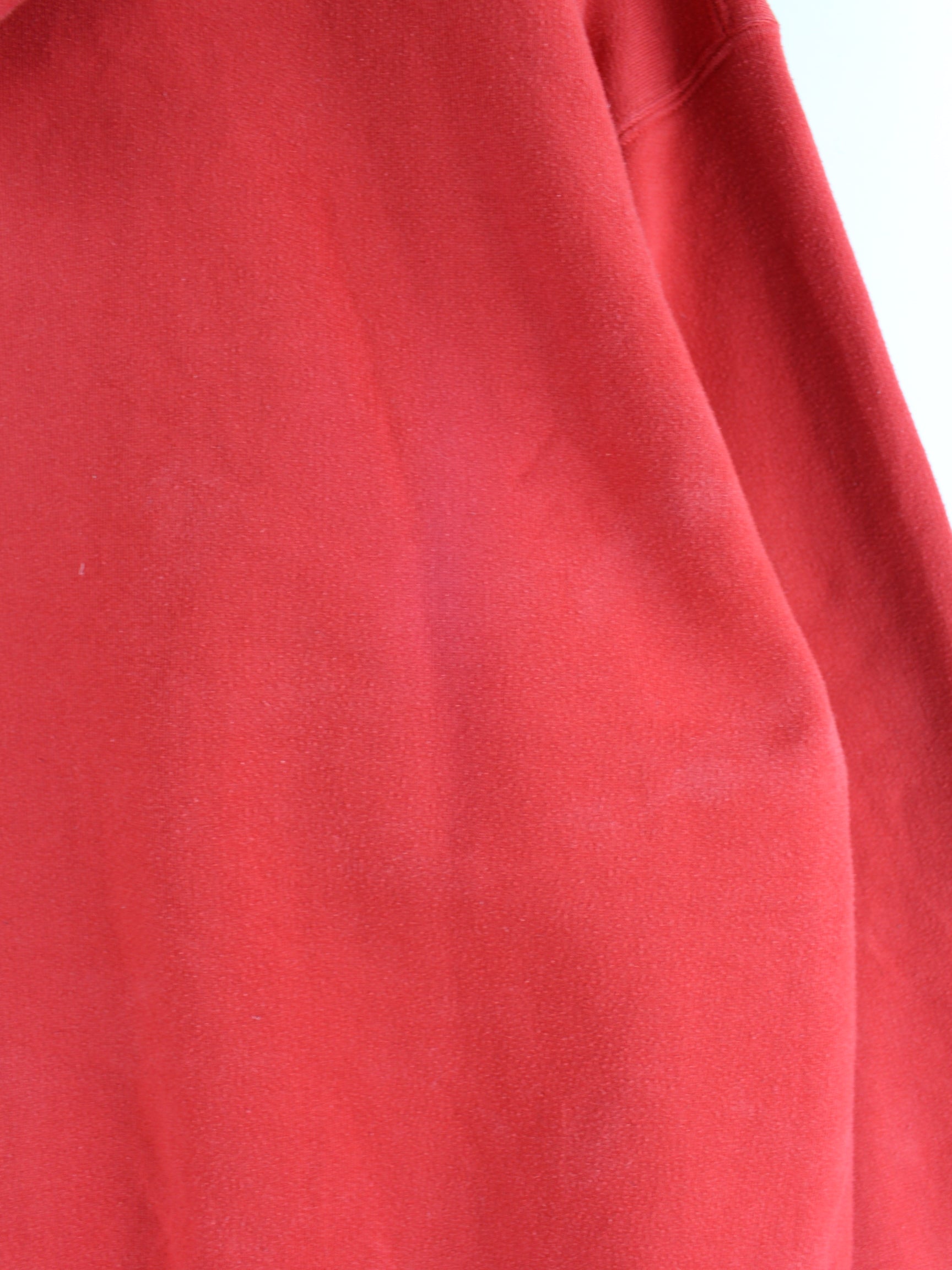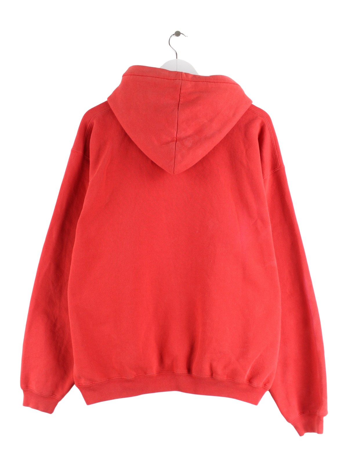 Roter Vintage Hoodie aus Anfang der 2000'er in Größe XL. Er ist aus einer Baumwollmischung hergestellt. Den Zustand würden wir als 'In Ordnung' bezeichnen (vergl. Bilder).