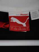 Schwarze Trainingsjacke aus dem Hause Puma in Größe L. Sie ist aus Synthetik gefertigt und in gutem Zustand vorrätig. Mit tollem Print.