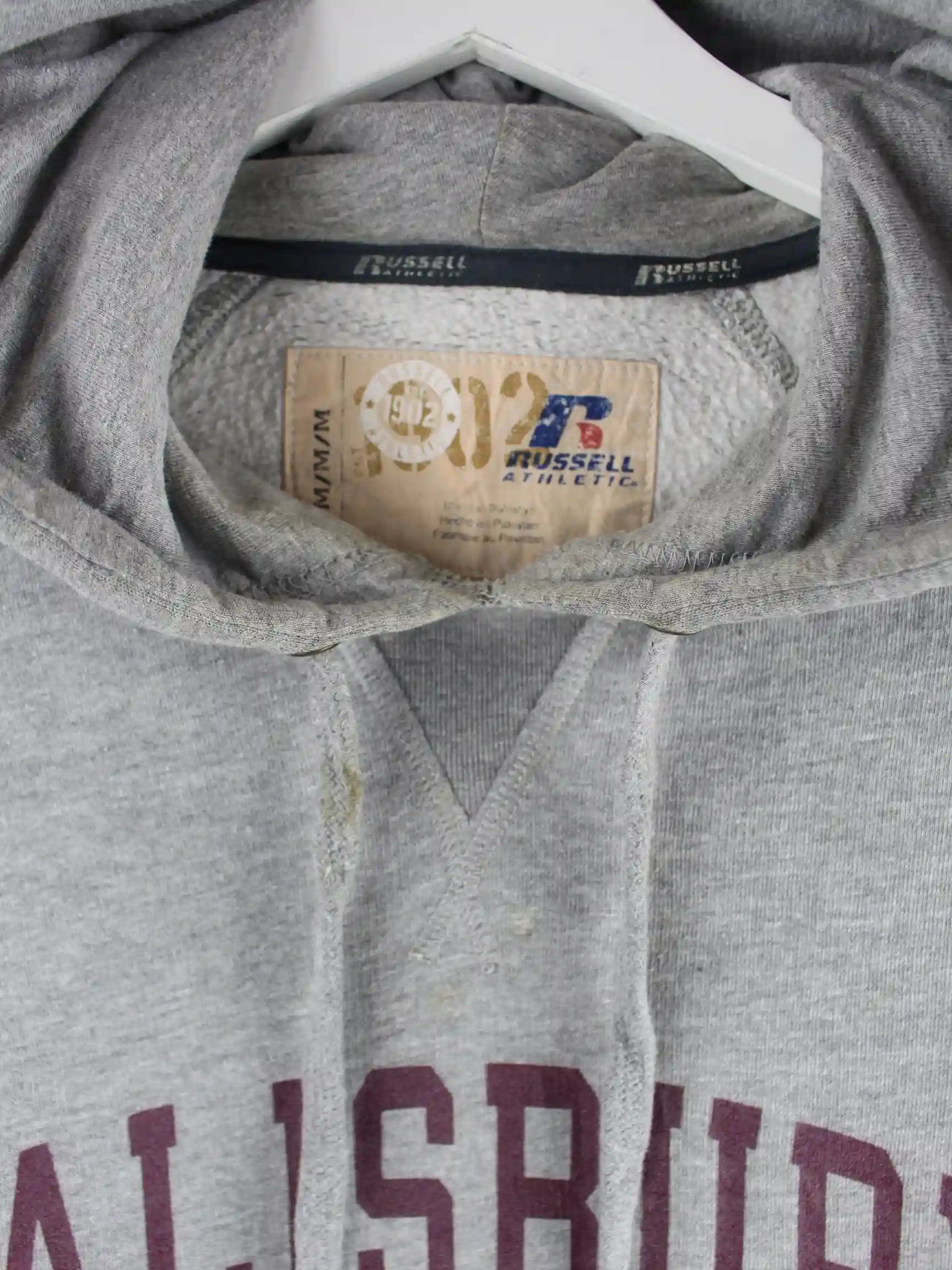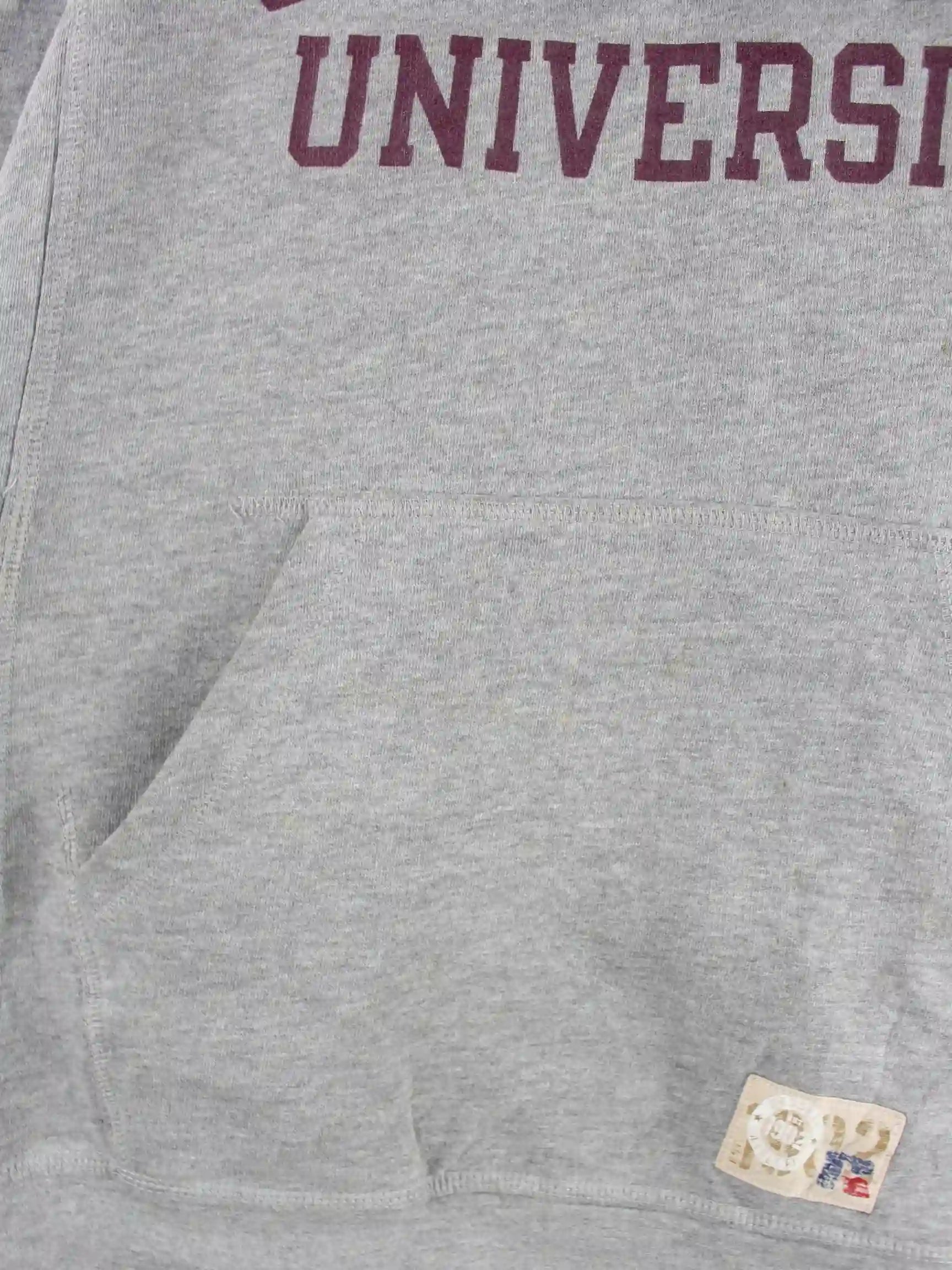 Grauer Hoodie vom Brand Russell Athletic in Größe XL. Er ist aus einer Baumwollmischung angefertigt. Den Zustand würden wir als 'In Ordnung' bezeichnen (vergl. Bilder).Mit schönem University Print.