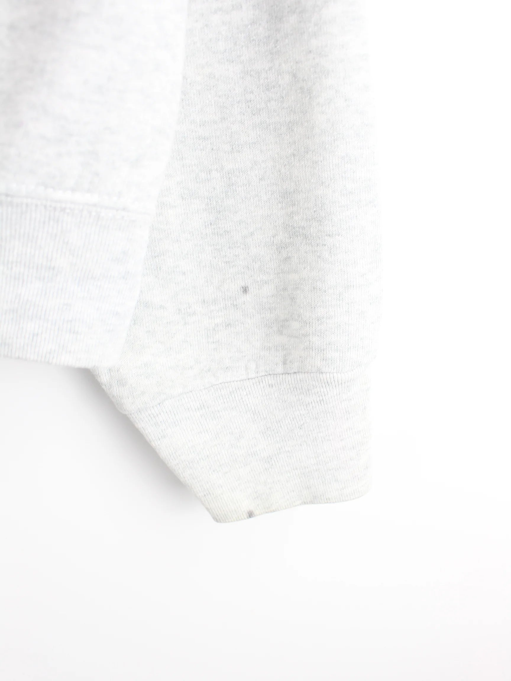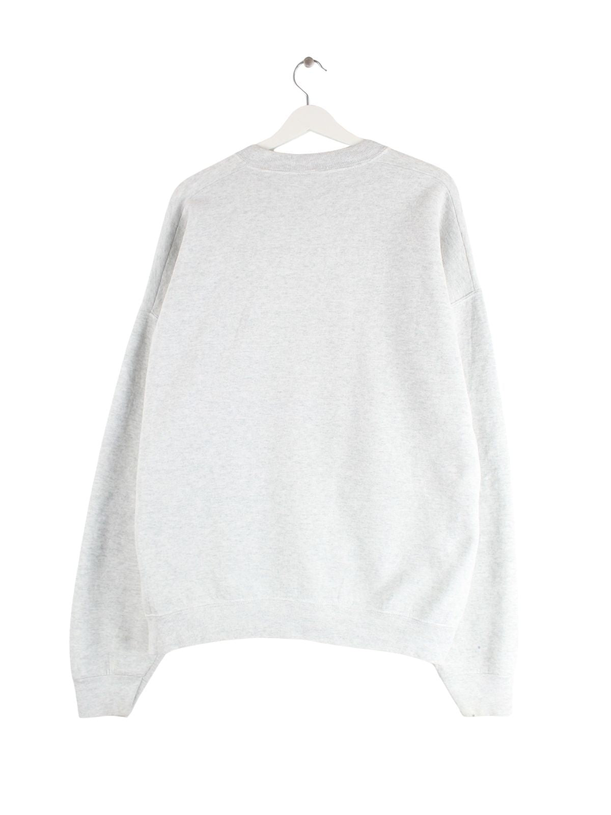Vintage Sweater in Größe 3XL aus den 90'ern. Er ist aus einer Baumwollmischung gefertigt und in Grau vorrätig. Mit schickem Winter Print.