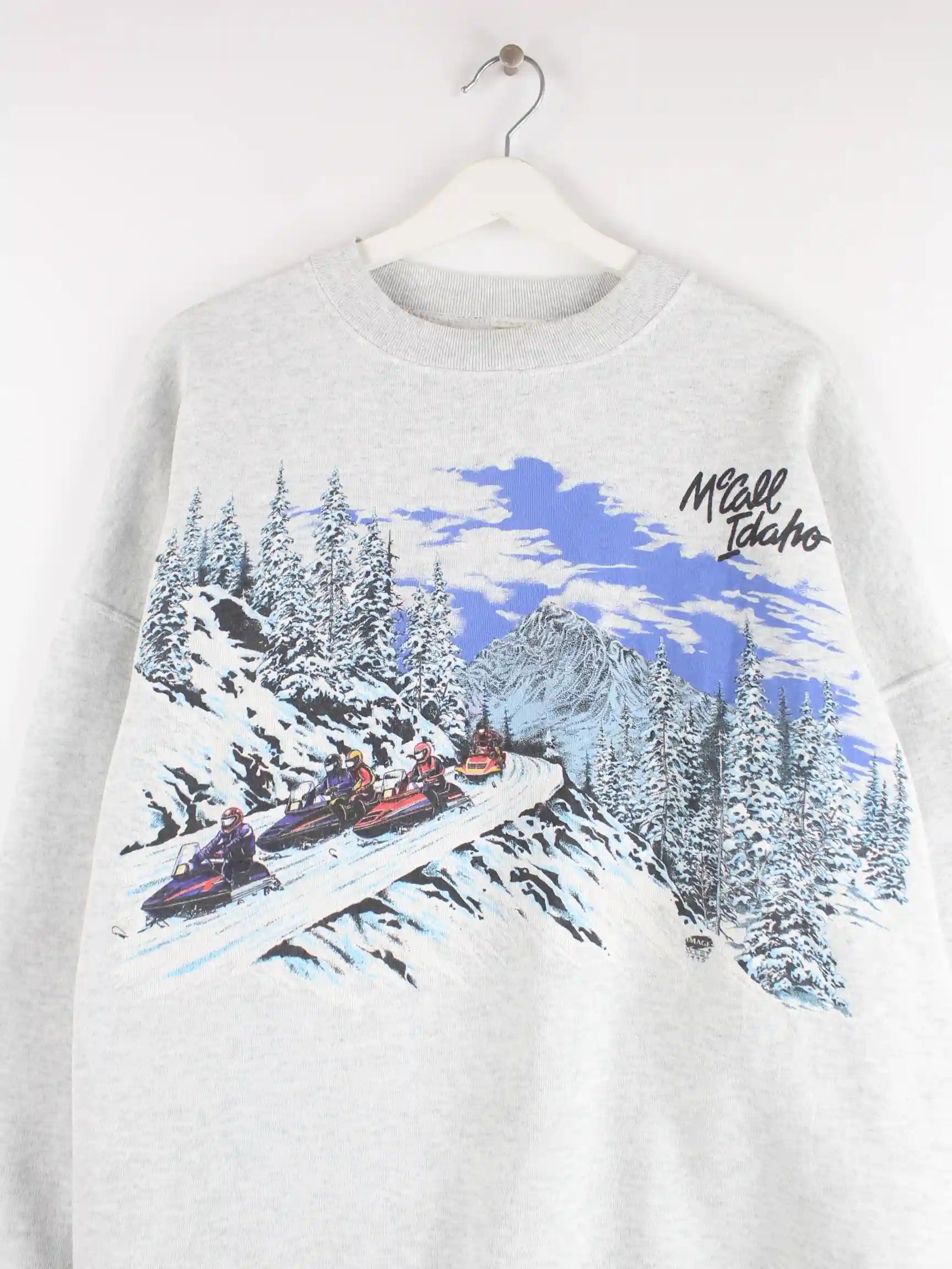 Vintage 90s Idaho Winter Print Sweater Grau 3XL