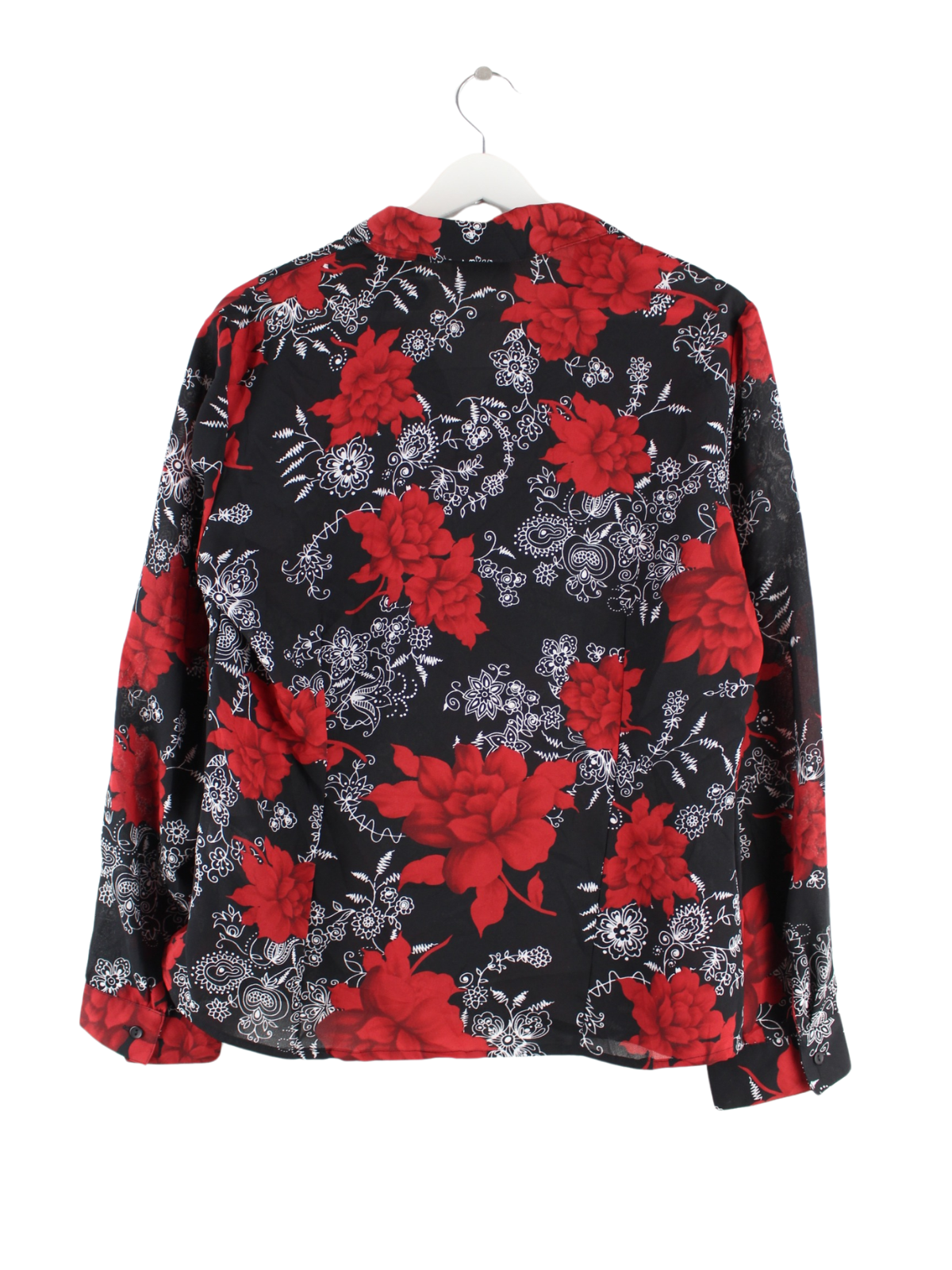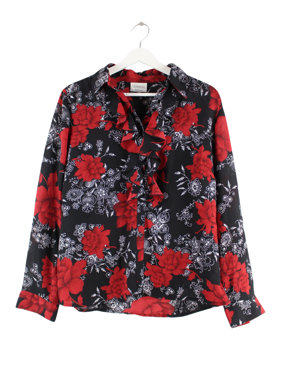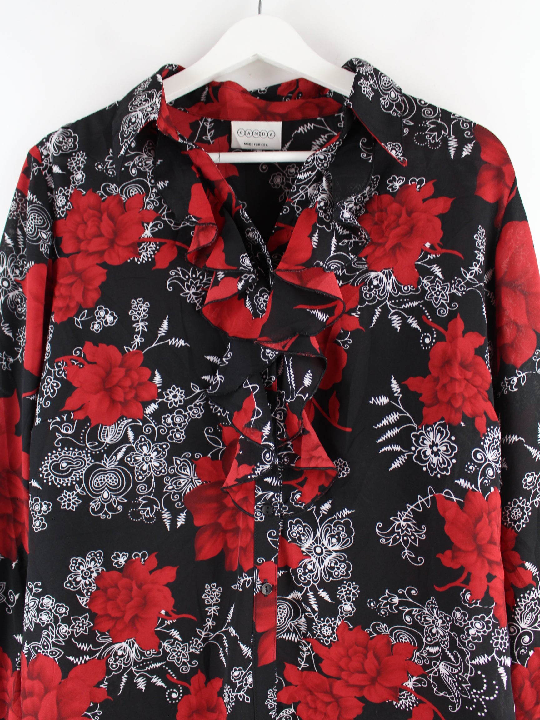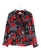 Vintage Damen Rose Pattern Bluse Schwarz M