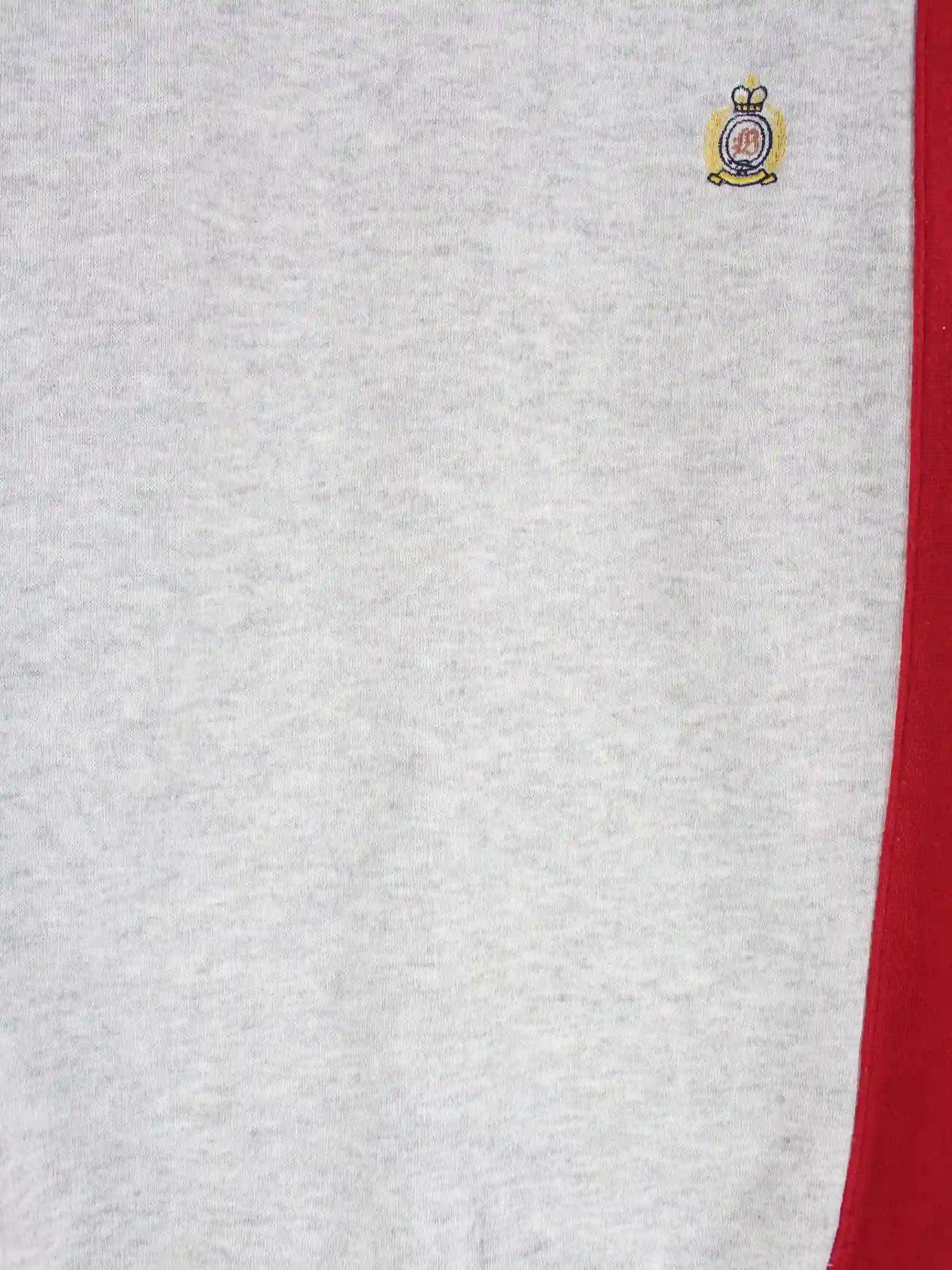 Sweater vom Brand Bugle Boy in Größe L aus den 90'ern. Er ist aus einer Baumwollmischung gefertigt und in Grau vorrätig.