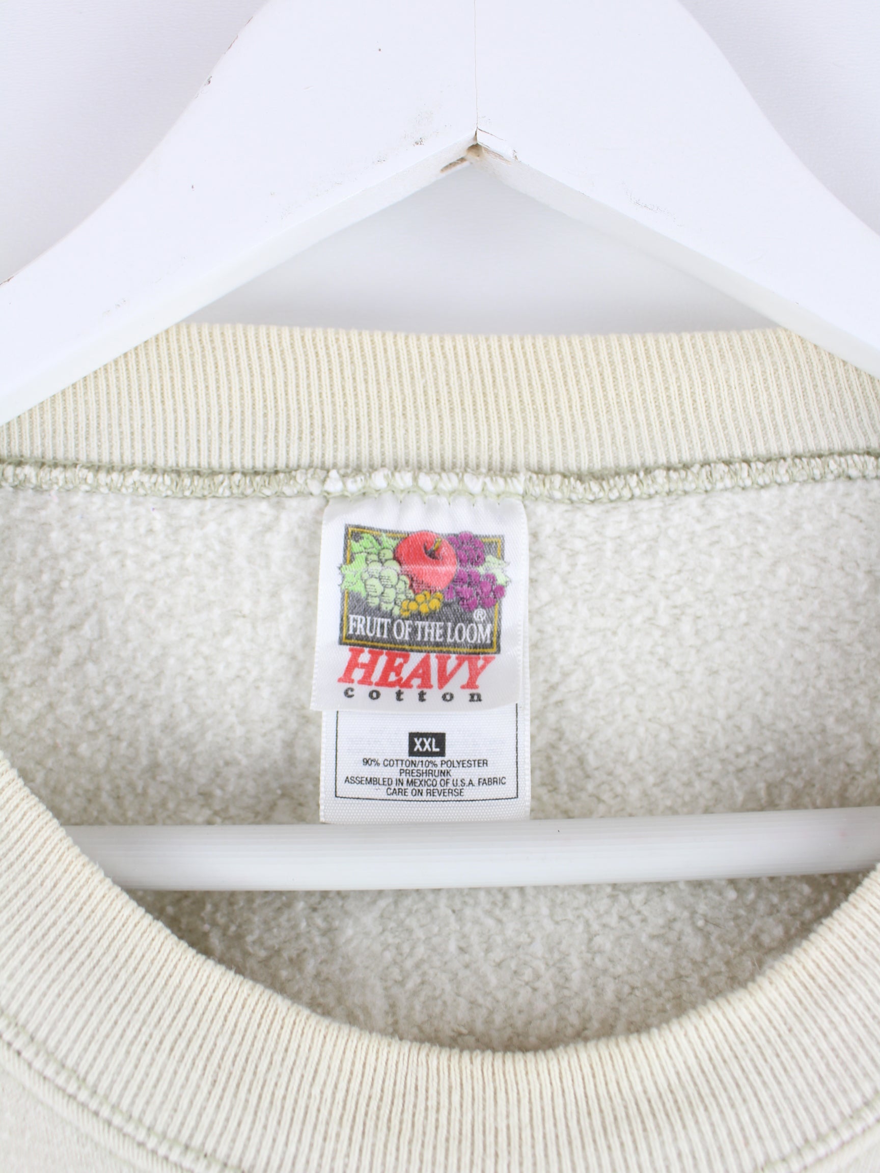 Sweater vom Label Fruit of the Loom in Größe XXL aus den 90'ern. Er ist aus einer Baumwollmischung gemacht und in Beige auf Lager.