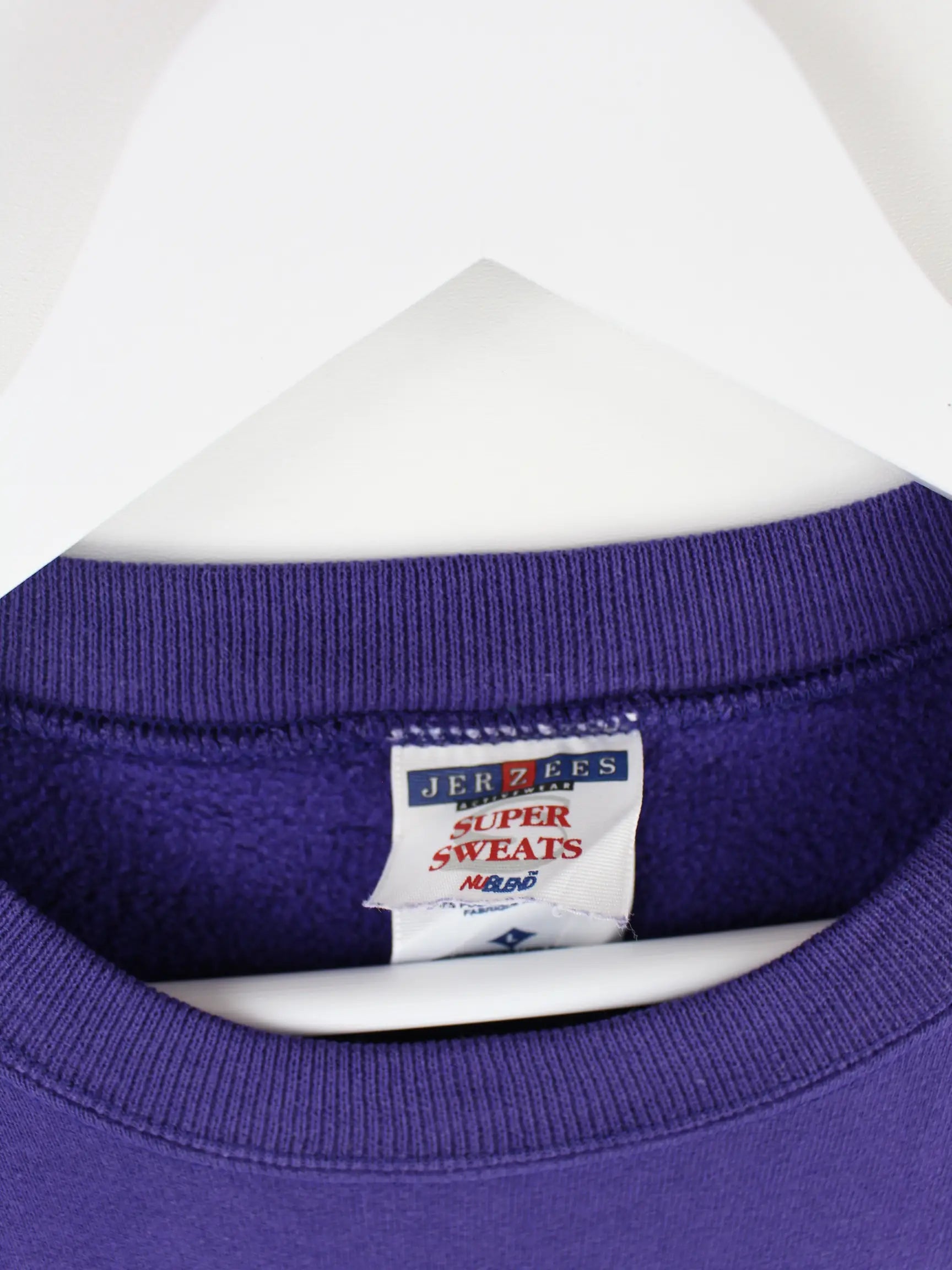 Sweater der Brand Jerzees in Größe L aus den 90'ern. Er ist aus einer Baumwollmischung gemacht und in Lila auf Lager.