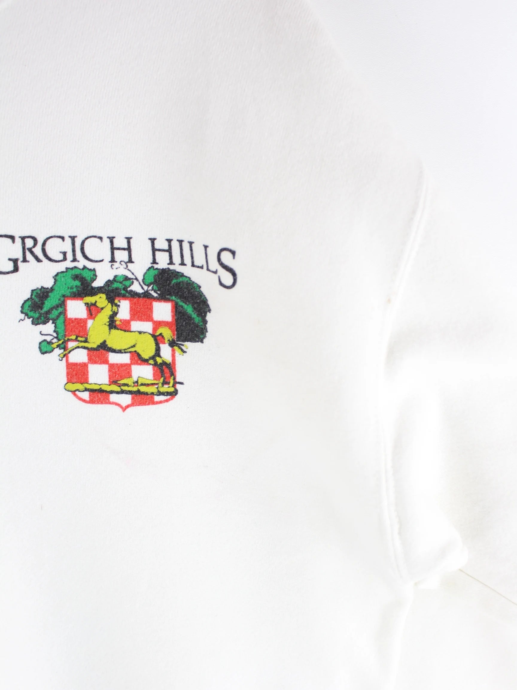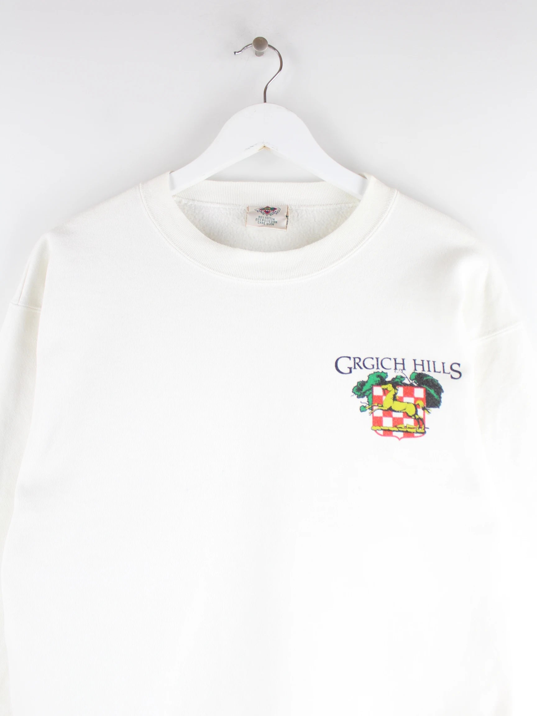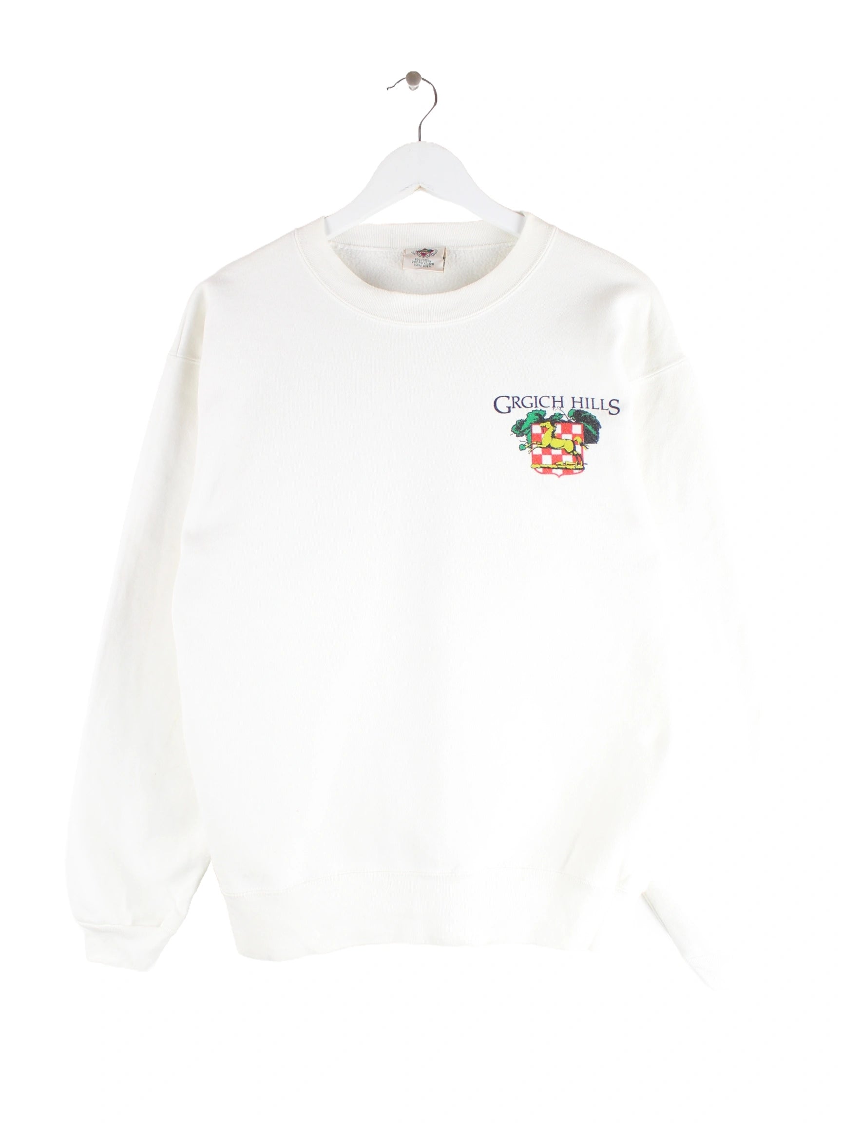 Weißer Vintage Sweater in Größe M. Er ist aus einer Baumwollmischung . Den Zustand würden wir als 'In Ordnung' bezeichnen (vergl. Bilder).Mit seltenem Hills Print.