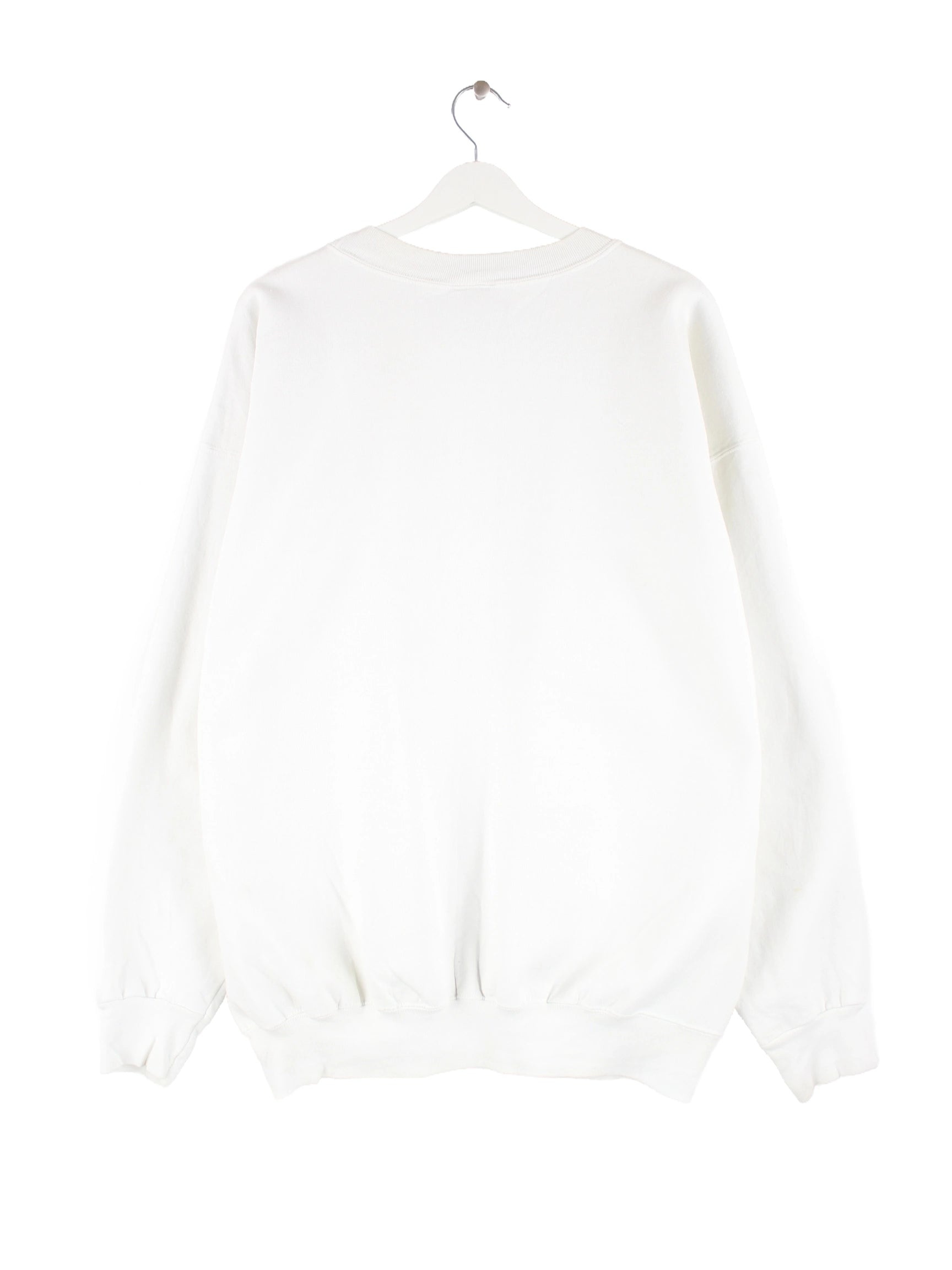 Vintage Sweater in Größe XL aus den 90'ern. Er ist aus einer Baumwollmischung hergestellt und in Weiß bei uns vorrätig.