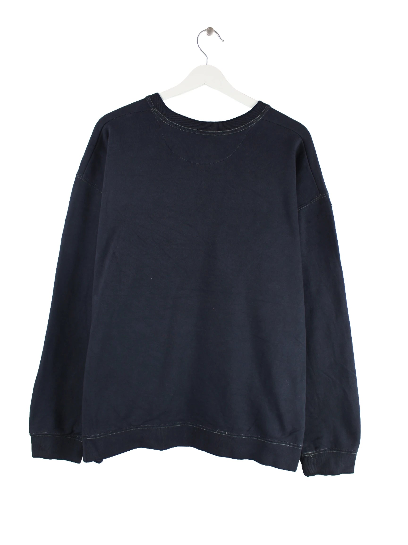 Schwarzer Vintage Sweater in Größe L. Er ist aus einer Baumwollmischung produziert. Den Zustand würden wir als 'In Ordnung' bezeichnen (vergl. Bilder).