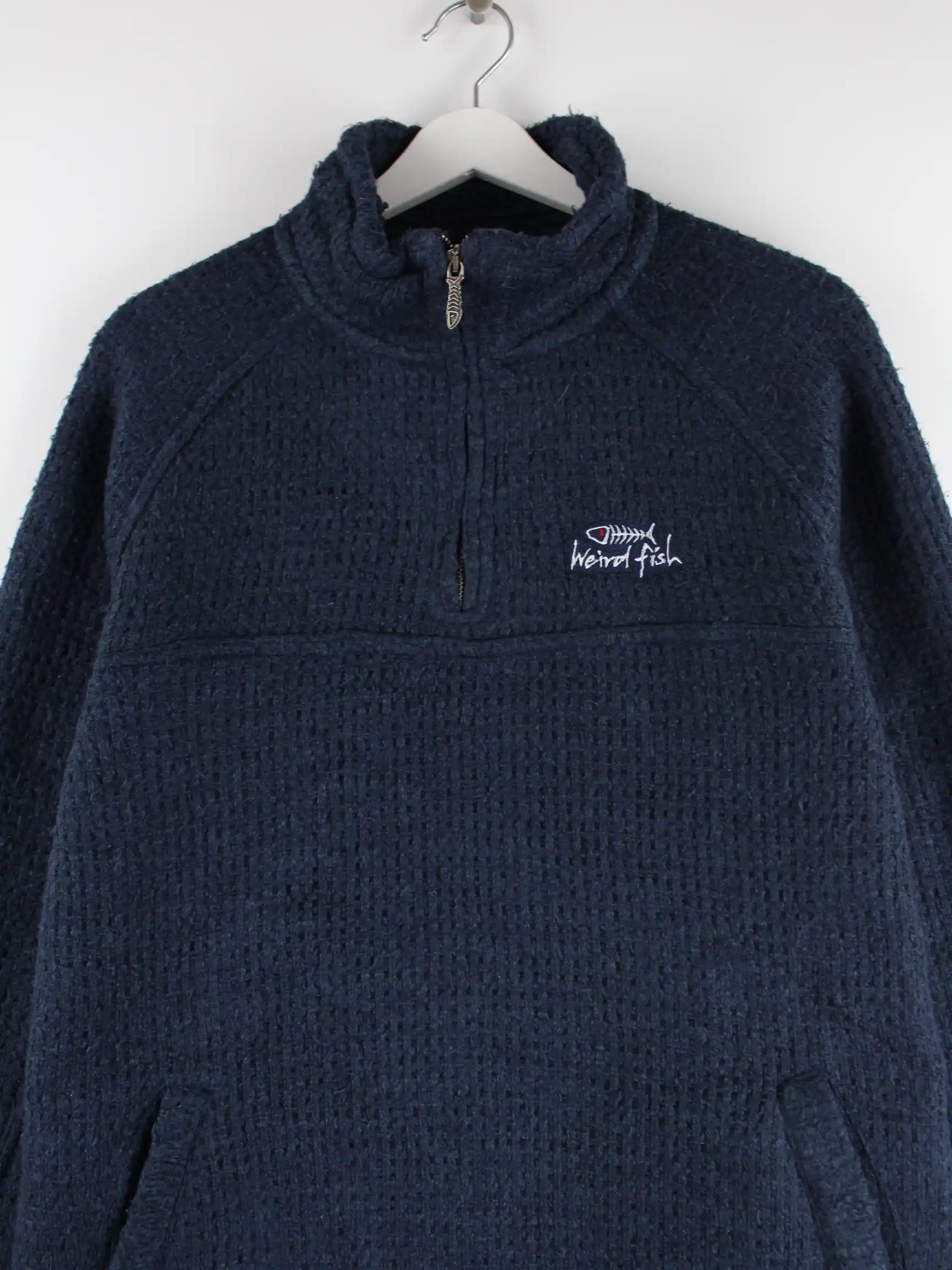 Blauer Sweater mit kurzem Reißverschluß vom Brand Weird Fish in Größe XL. Er ist aus einer Baumwollmischung gemacht und in sehr gutem Zustand vorrätig.