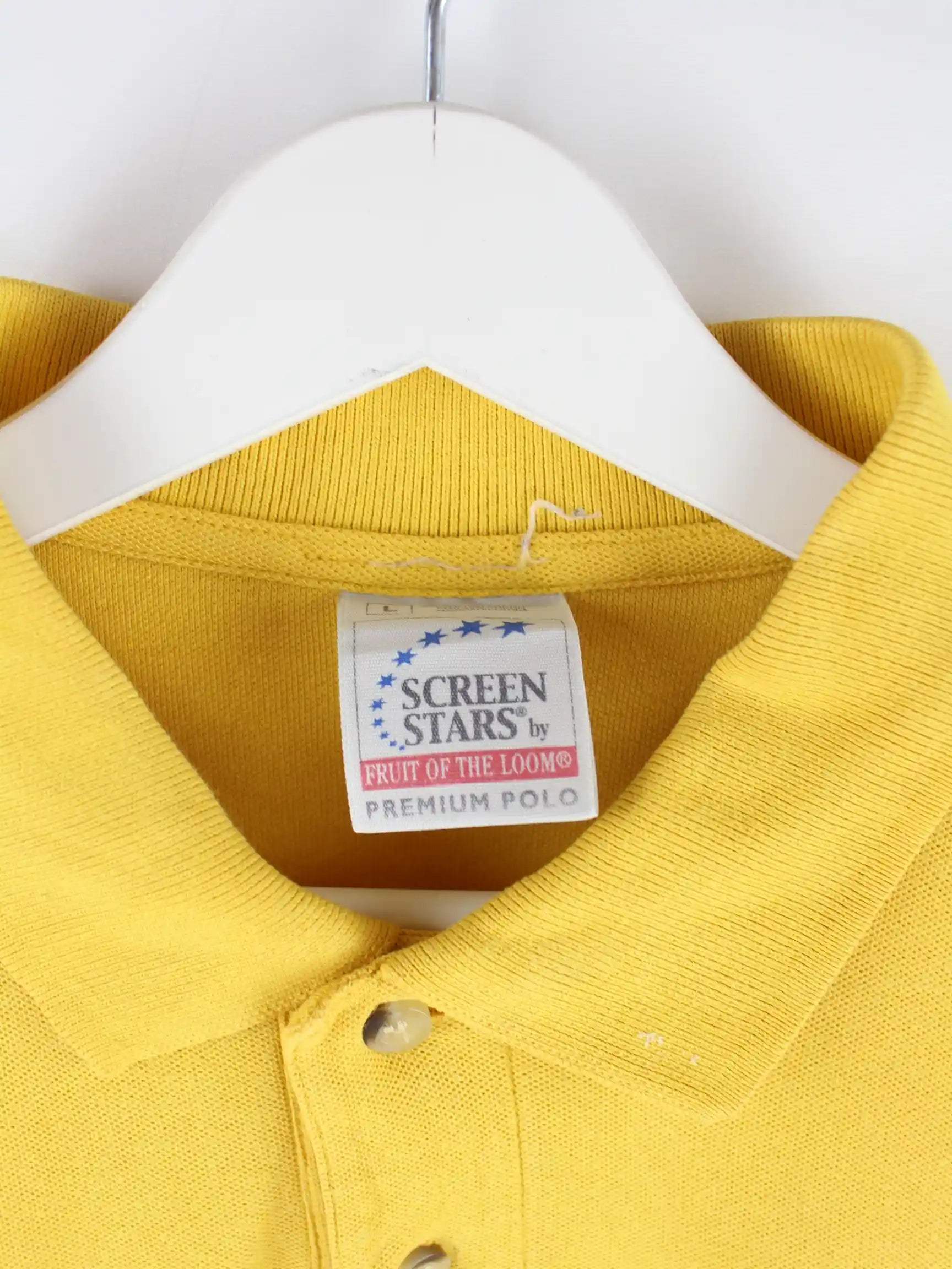 Poloshirt aus dem Hause Screen Stars in Größe L. Es ist aus Baumwolle gemacht und in Gelb vorrätig.