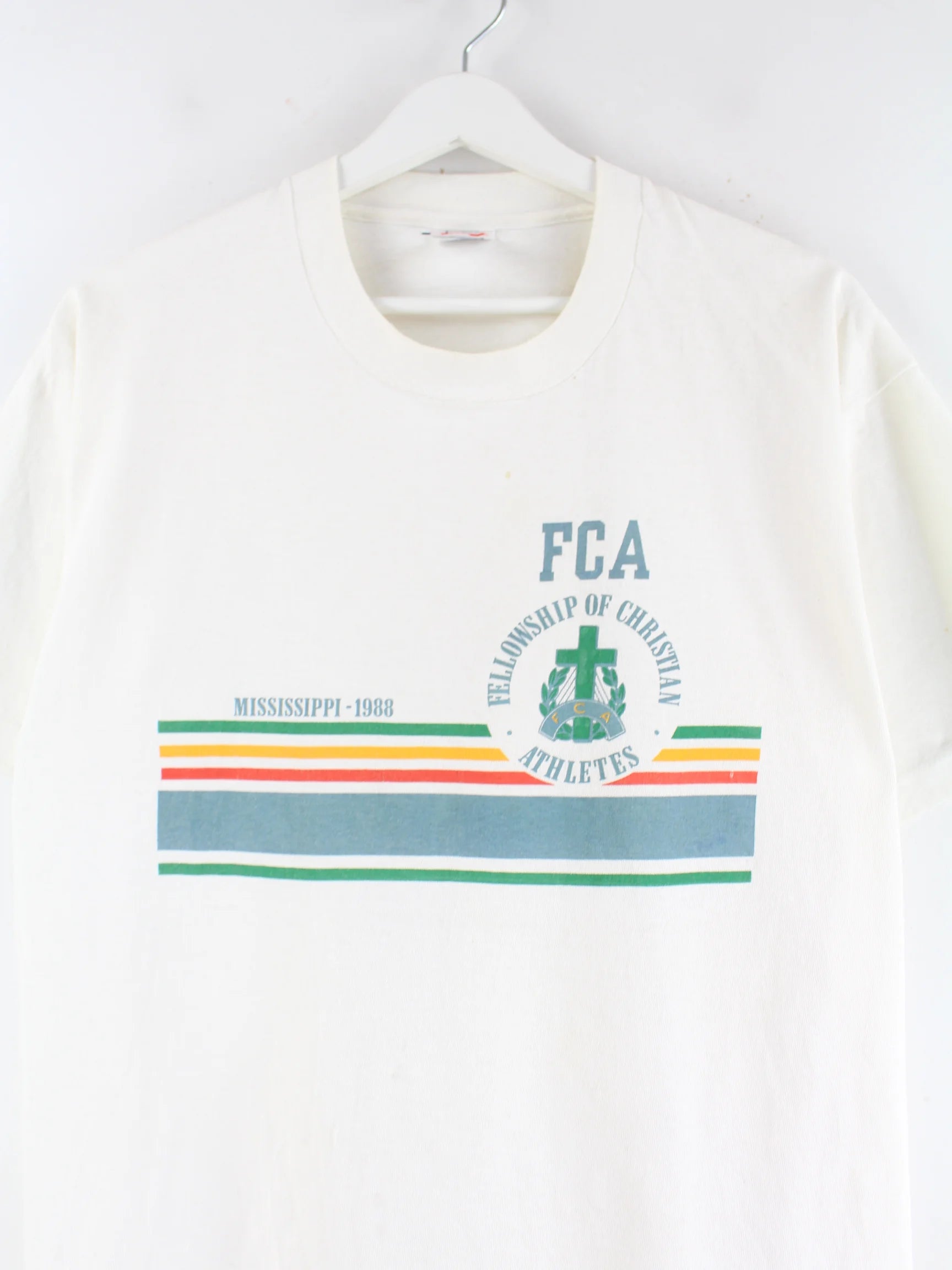 Fruit of the Loom 1988 Vintage Mississippi Print Single Stitch T-Shirt Weiß L