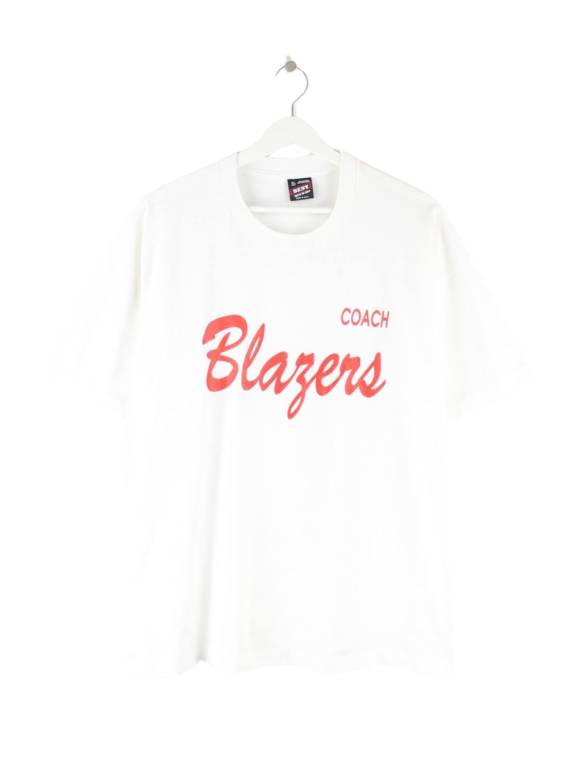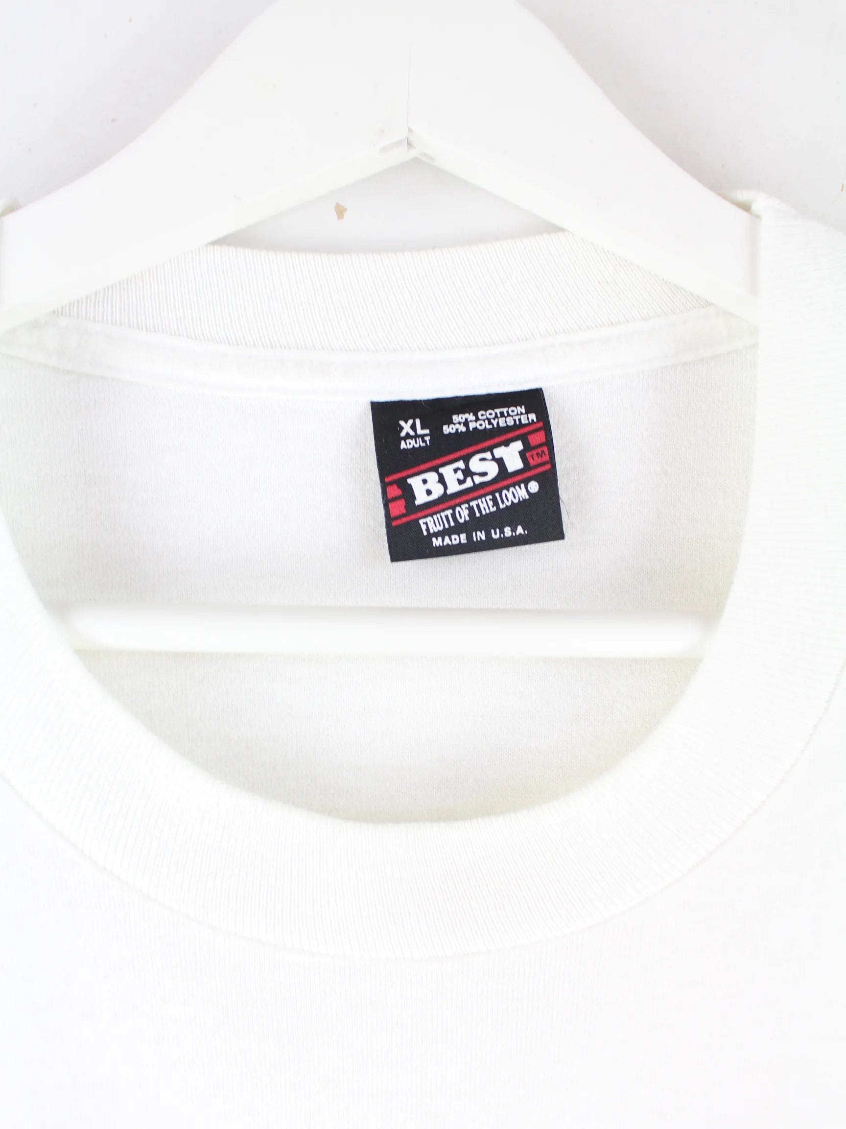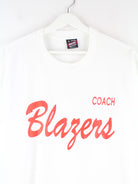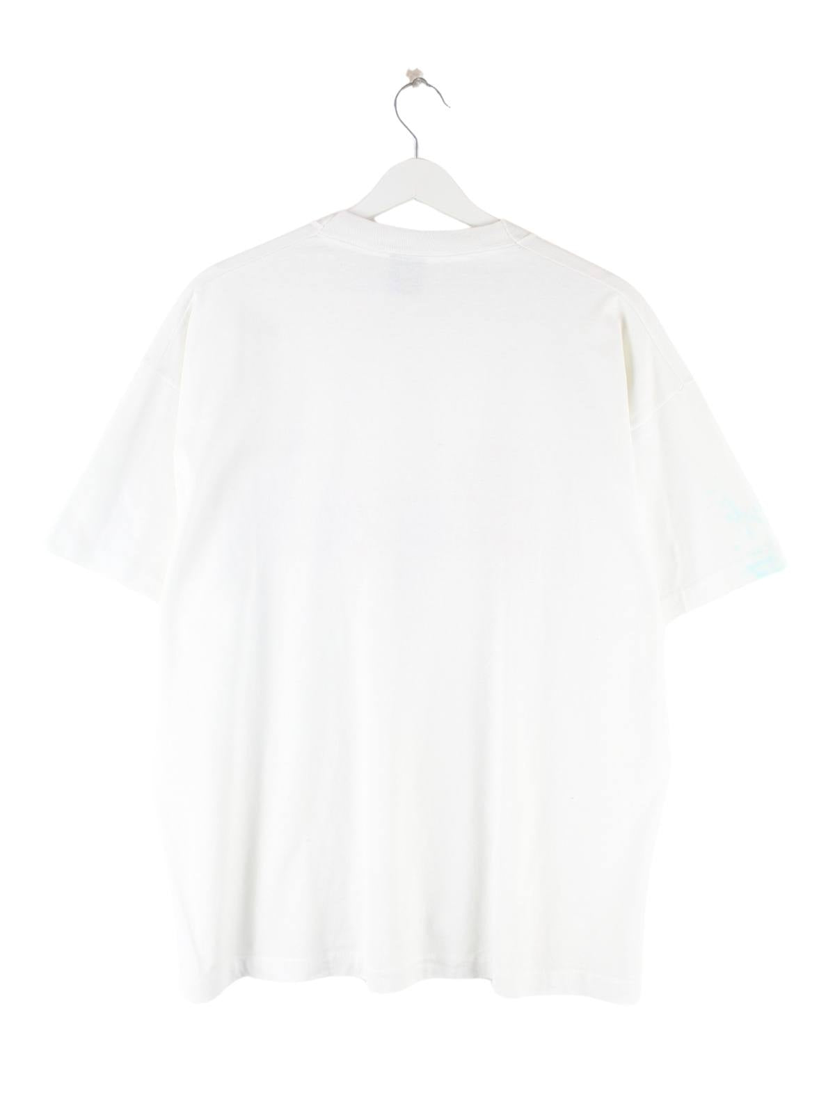 Fruit of the Loom 90s Vintage Coach Print Single Stitch T-Shirt Weiß XL