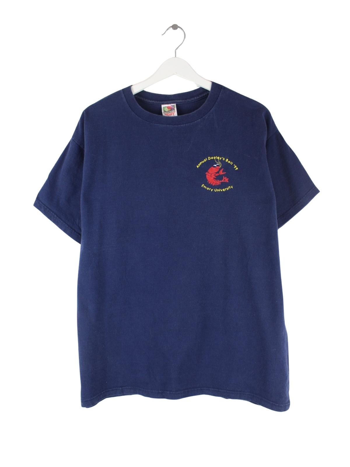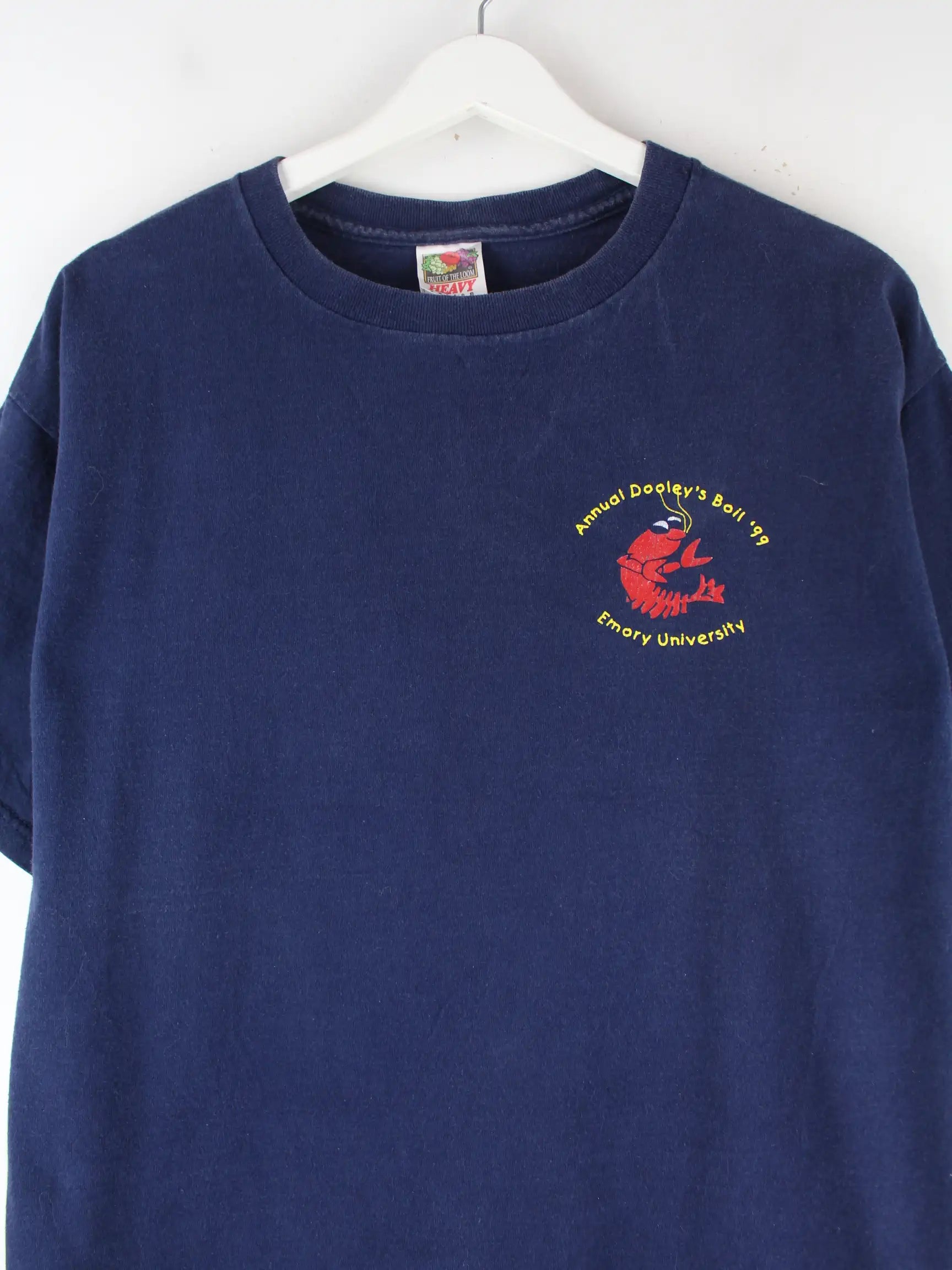 T-Shirt der Marke Fruit of the Loom in Größe XL aus den 90'ern. Es ist aus Baumwolle hergestellt und in Blau im Angebot. Mit schönem Lobster Print.