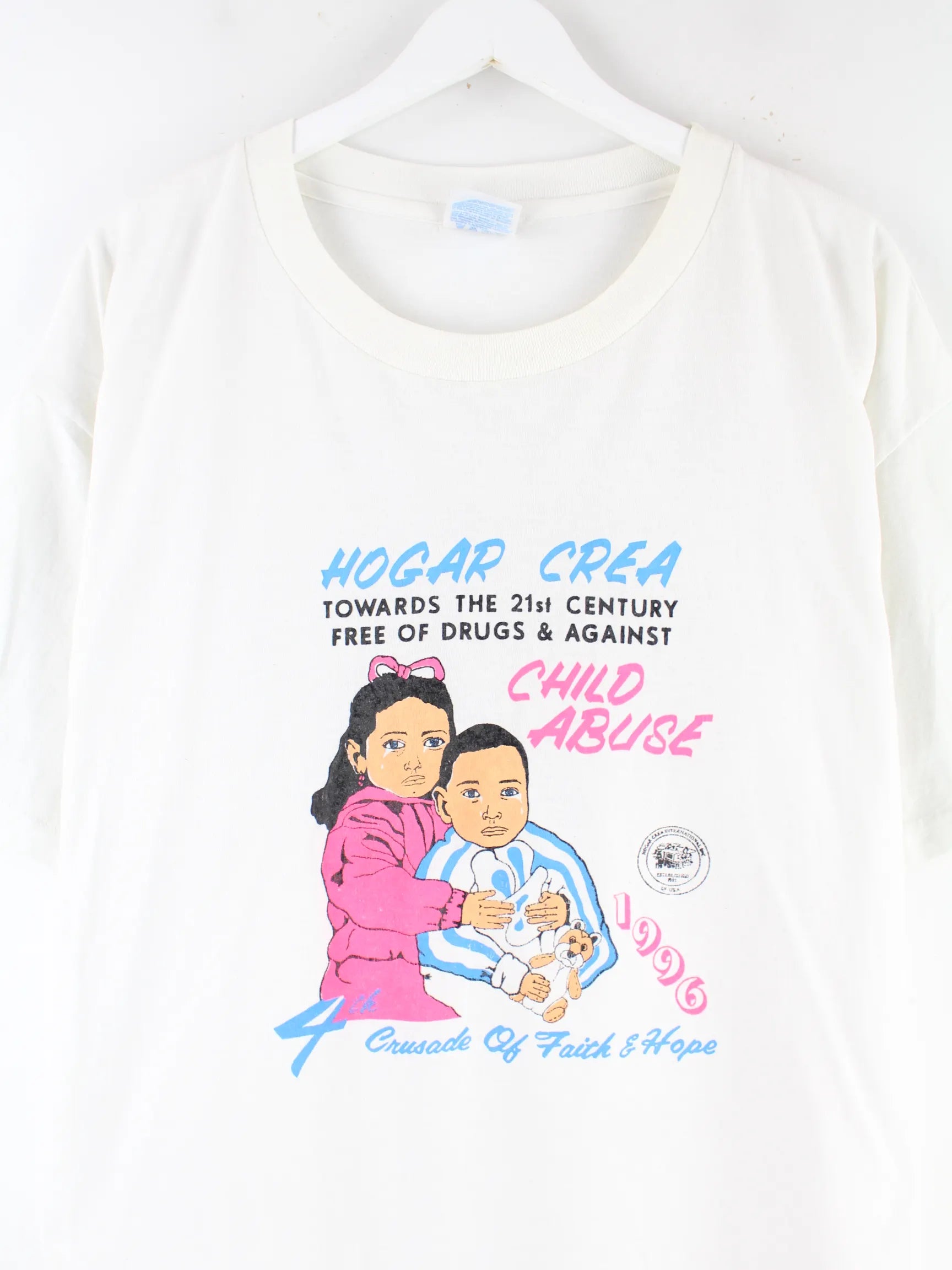 Hanes 1996 Vintage Faith & Hope Print Single Stitch T-Shirt Weiß XL