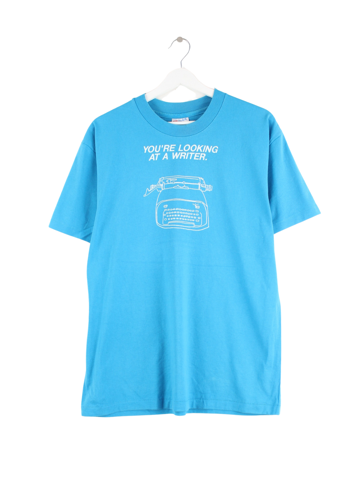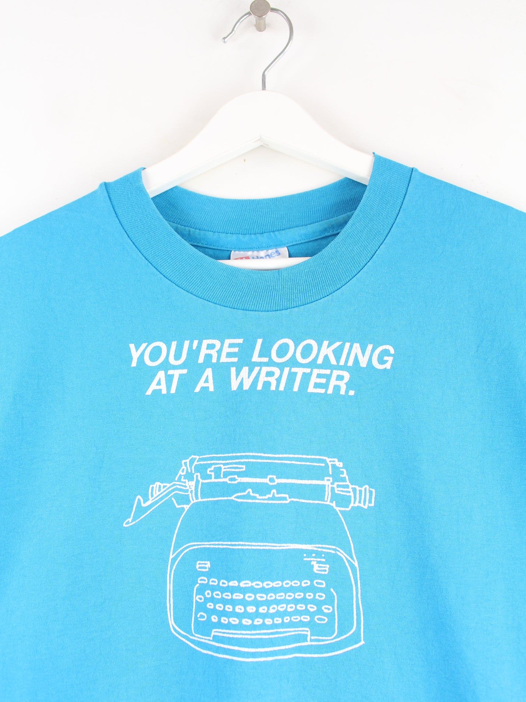 Hanes 90s Vintage Writer Print Single Stitch T-Shirt Türkis L
