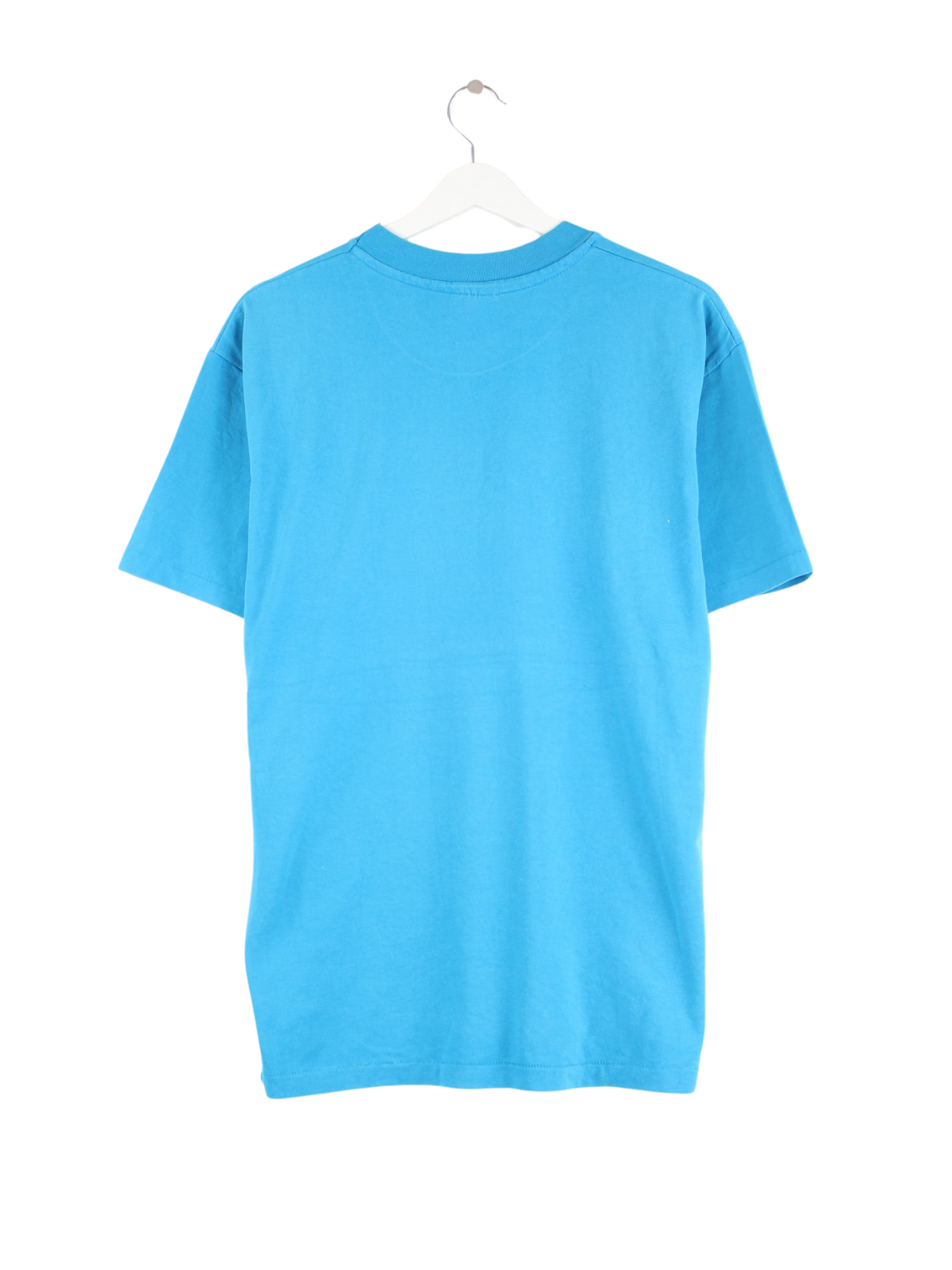 T-Shirt des Labels Hanes in Größe L aus den 90'ern. Es ist aus Baumwolle gemacht und in Türkis bei uns zu bekommen. Mit schickem Writer Print.