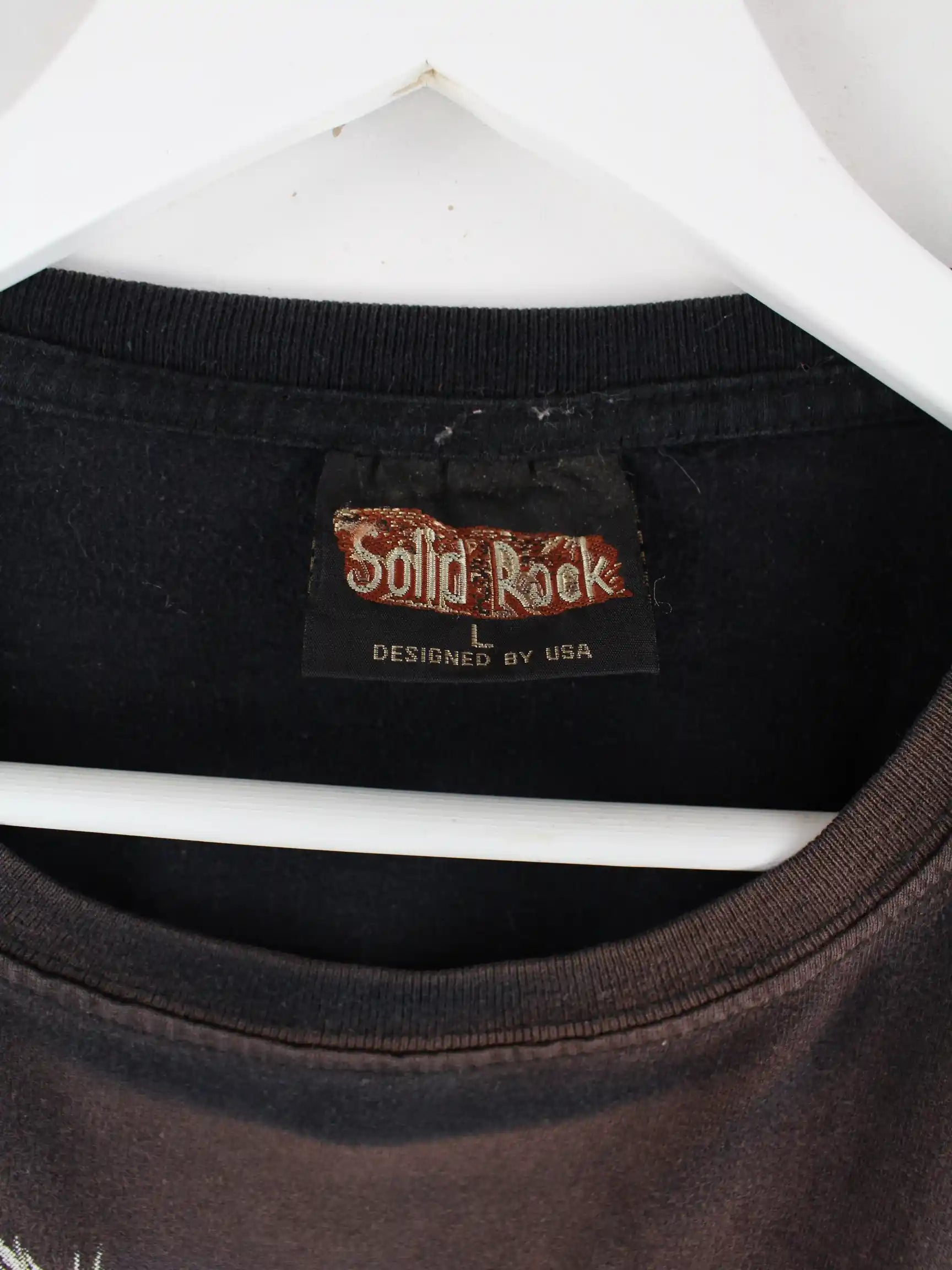 T-Shirt von Solid Rock in Größe L aus den 90'ern. Es ist aus Baumwolle hergestellt und in Schwarz bei uns vorrätig. Mit seltenem Dead Print.