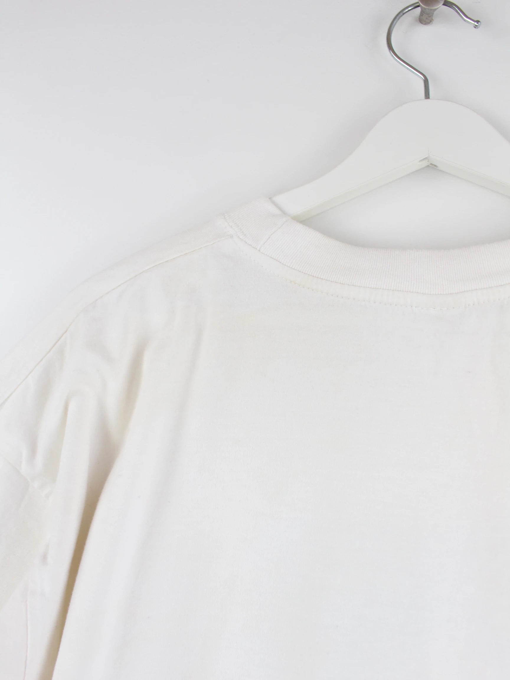 Vintage T-Shirt in Größe L. Es ist aus Baumwolle und in Weiß zu bekommen. Mit schönem Beckers Print.