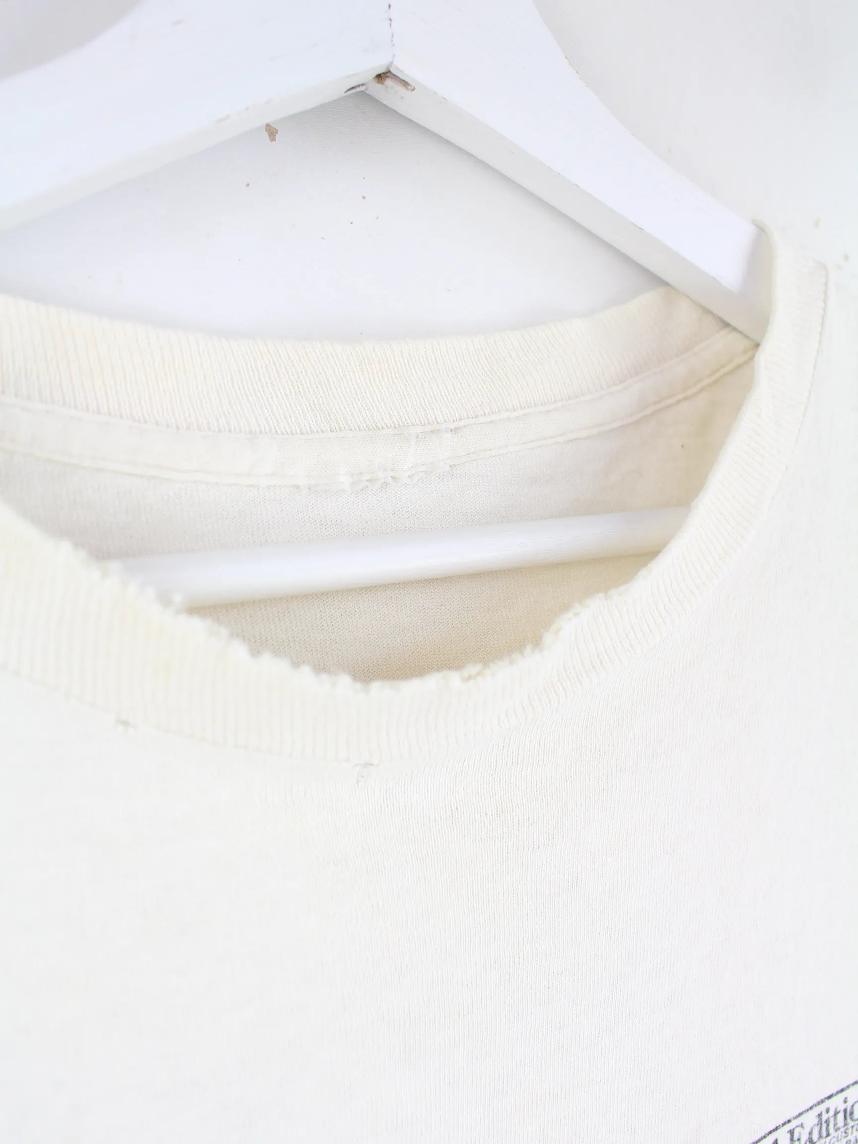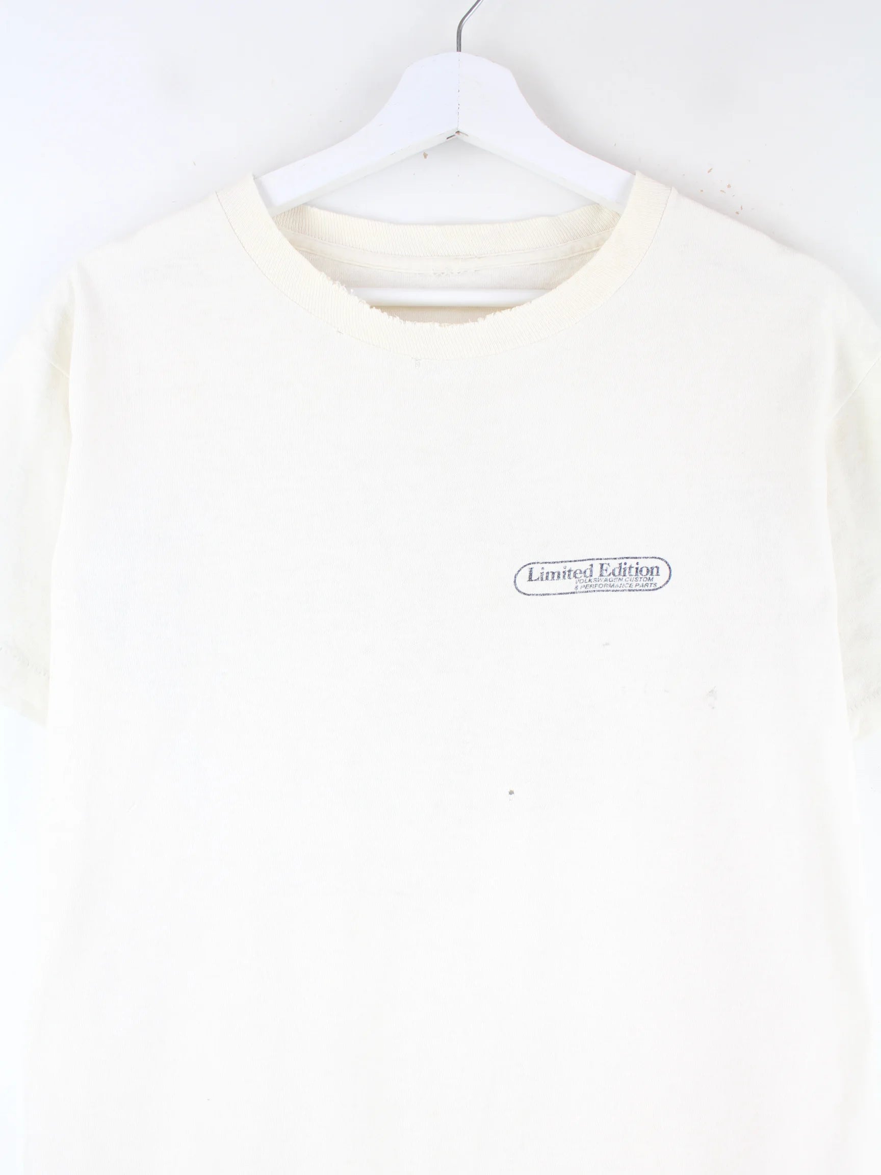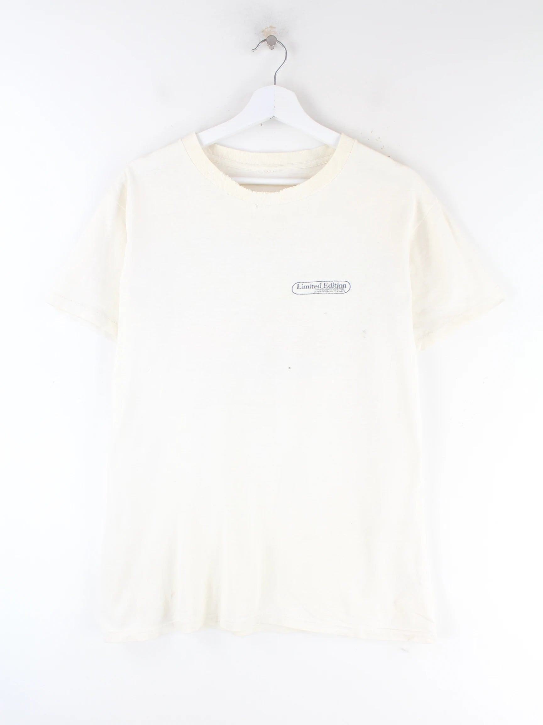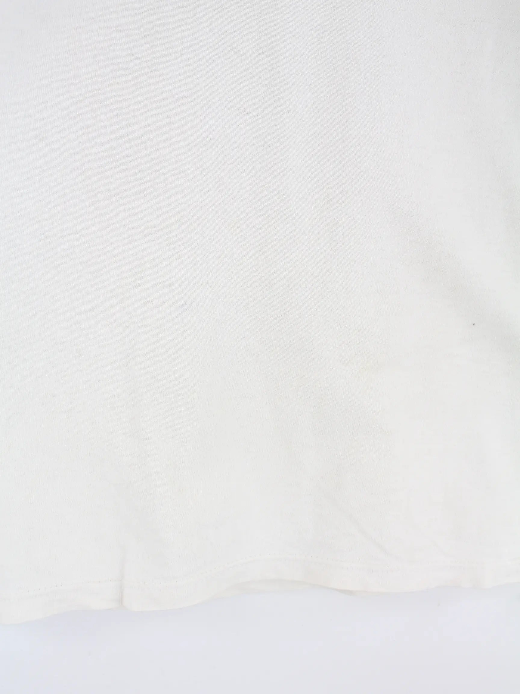 Vintage T-Shirt in Größe M. Es ist aus Baumwolle gefertigt und in Weiß zu bekommen. Mit seltenem Custom Print.