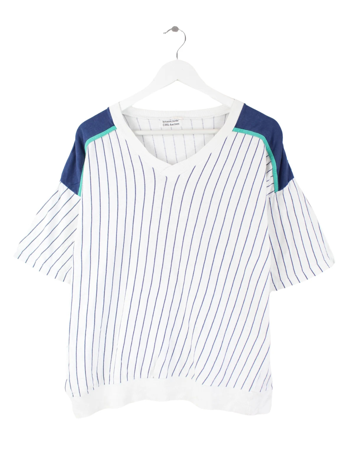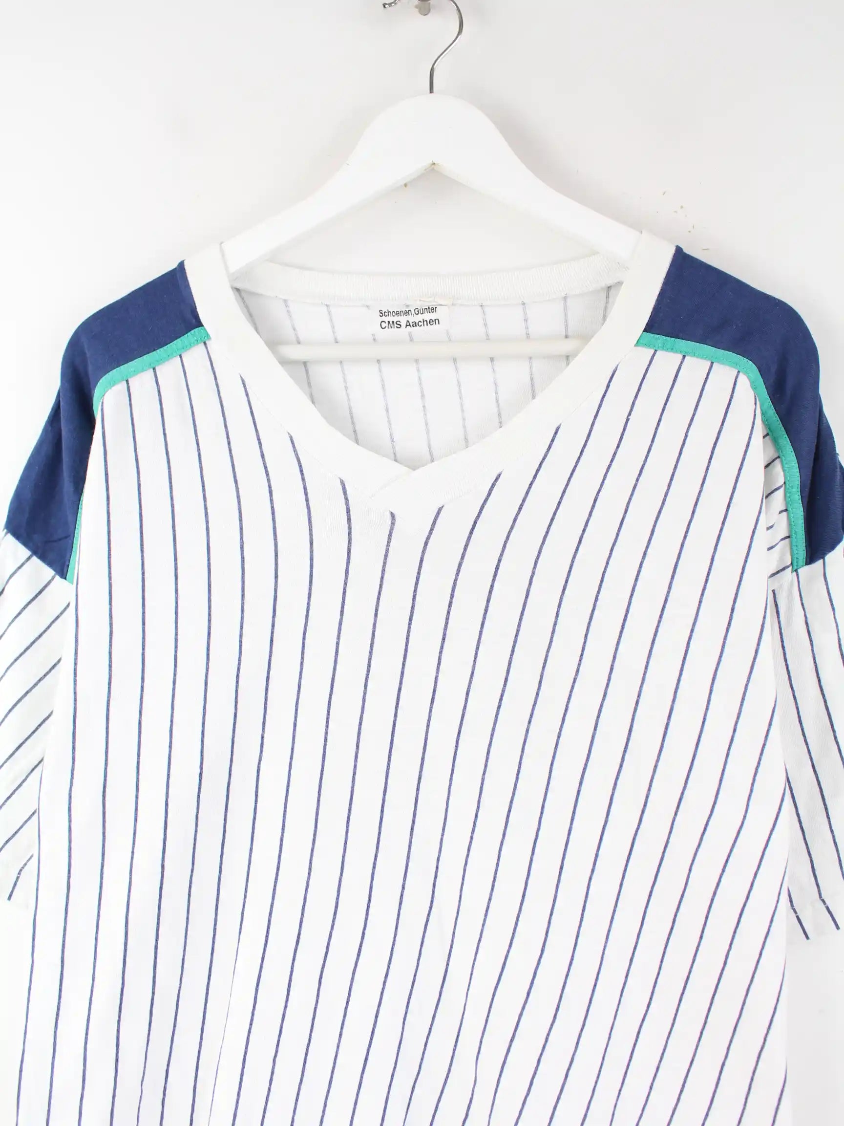 Vintage 80s Striped V-Neck T-Shirt Weiß M