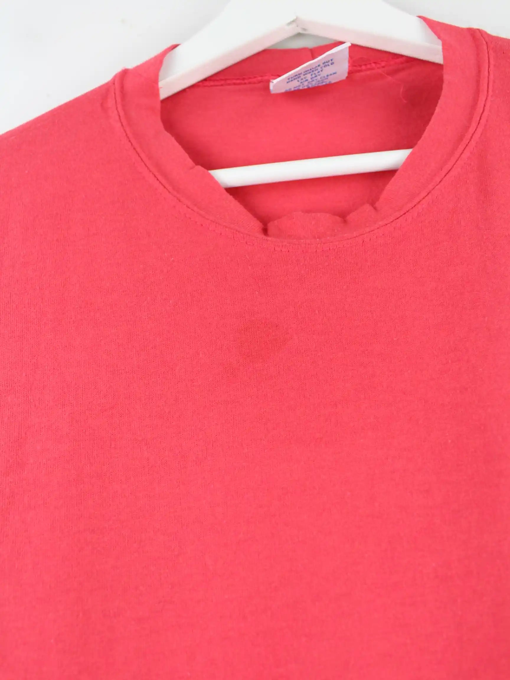Rotes Vintage T-Shirt aus den 90'ern in Größe M. Es ist aus Baumwolle gemacht und in gutem Zustand bei uns vorrätig.