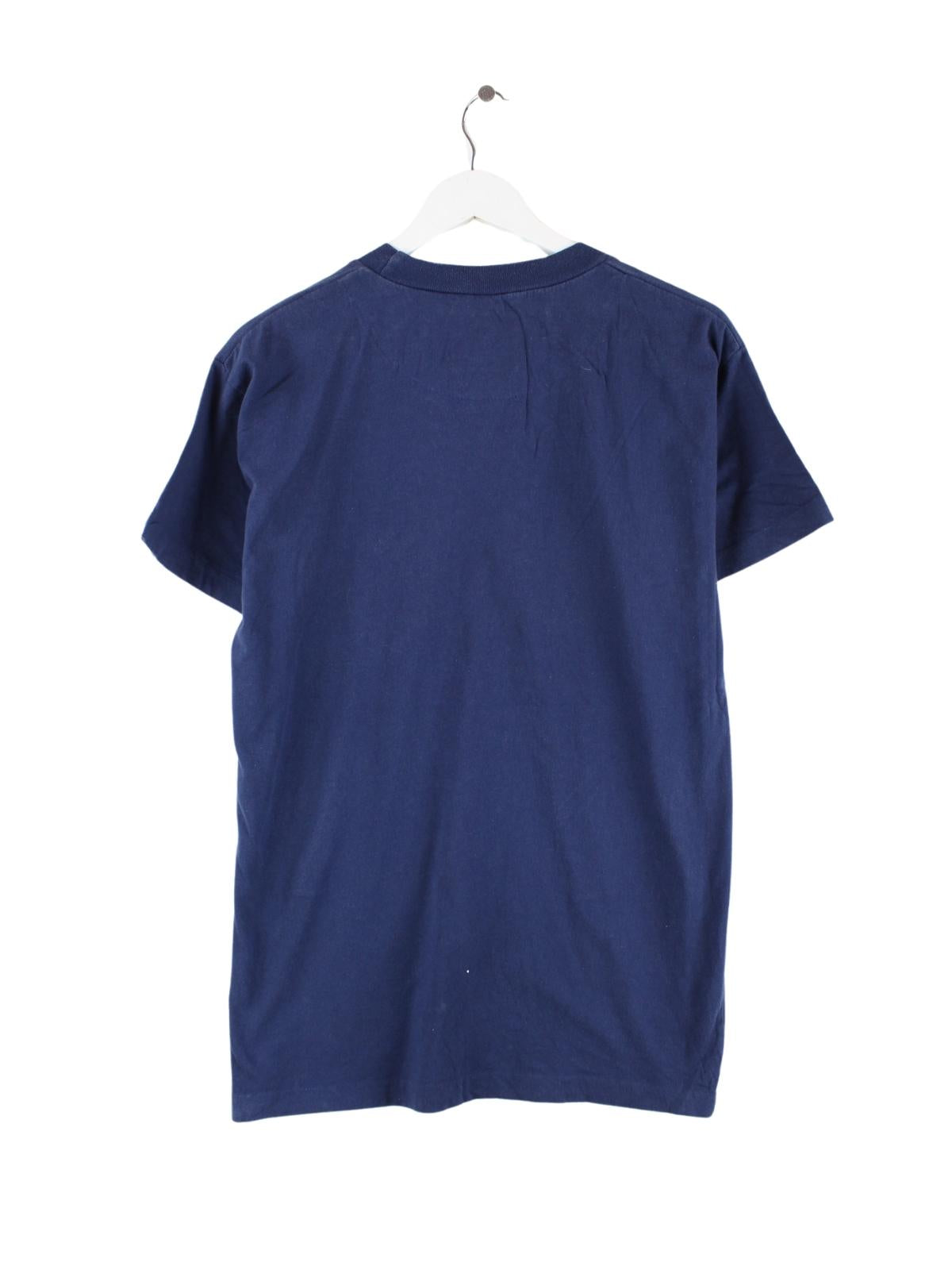 Blaues Vintage T-Shirt aus den 90'ern in Größe XS. Es ist aus Baumwolle und in sehr gutem Zustand in Stock.