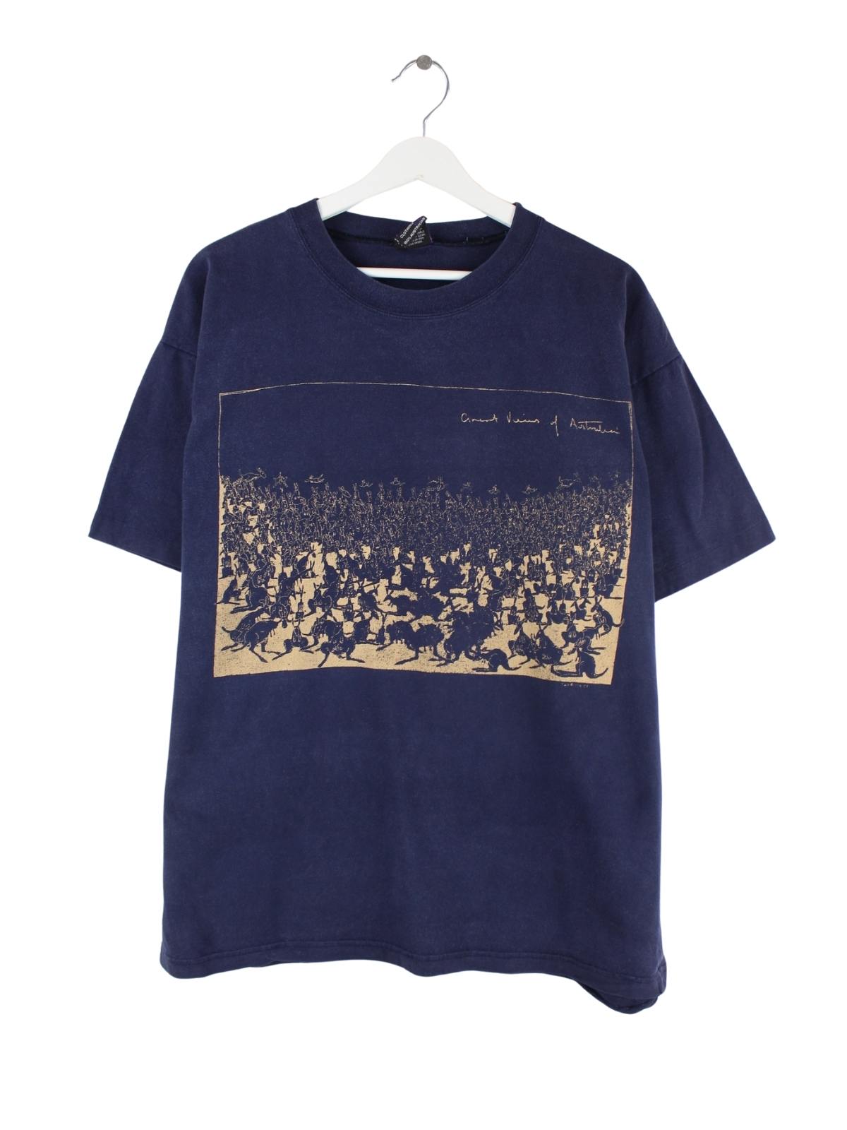Blaues Vintage T-Shirt aus den 90'ern in Größe XXL. Es ist aus Baumwolle angefertigt und in sehr gutem Zustand lieferbar. Mit seltenem Kangaroo Print.