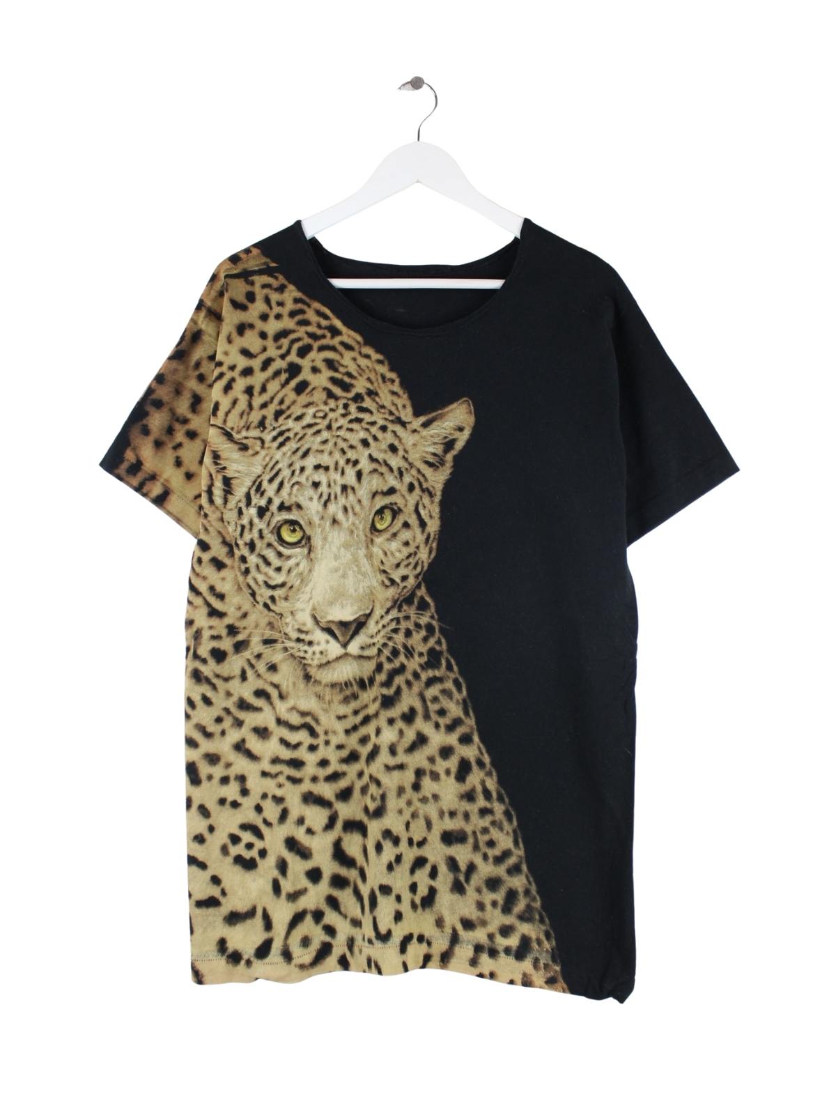 Vintage T-Shirt in Größe XL aus den 90'ern. Es ist aus Baumwolle hergestellt und in Schwarz bei uns zu bekommen. Mit chiquem Leopard Print.
