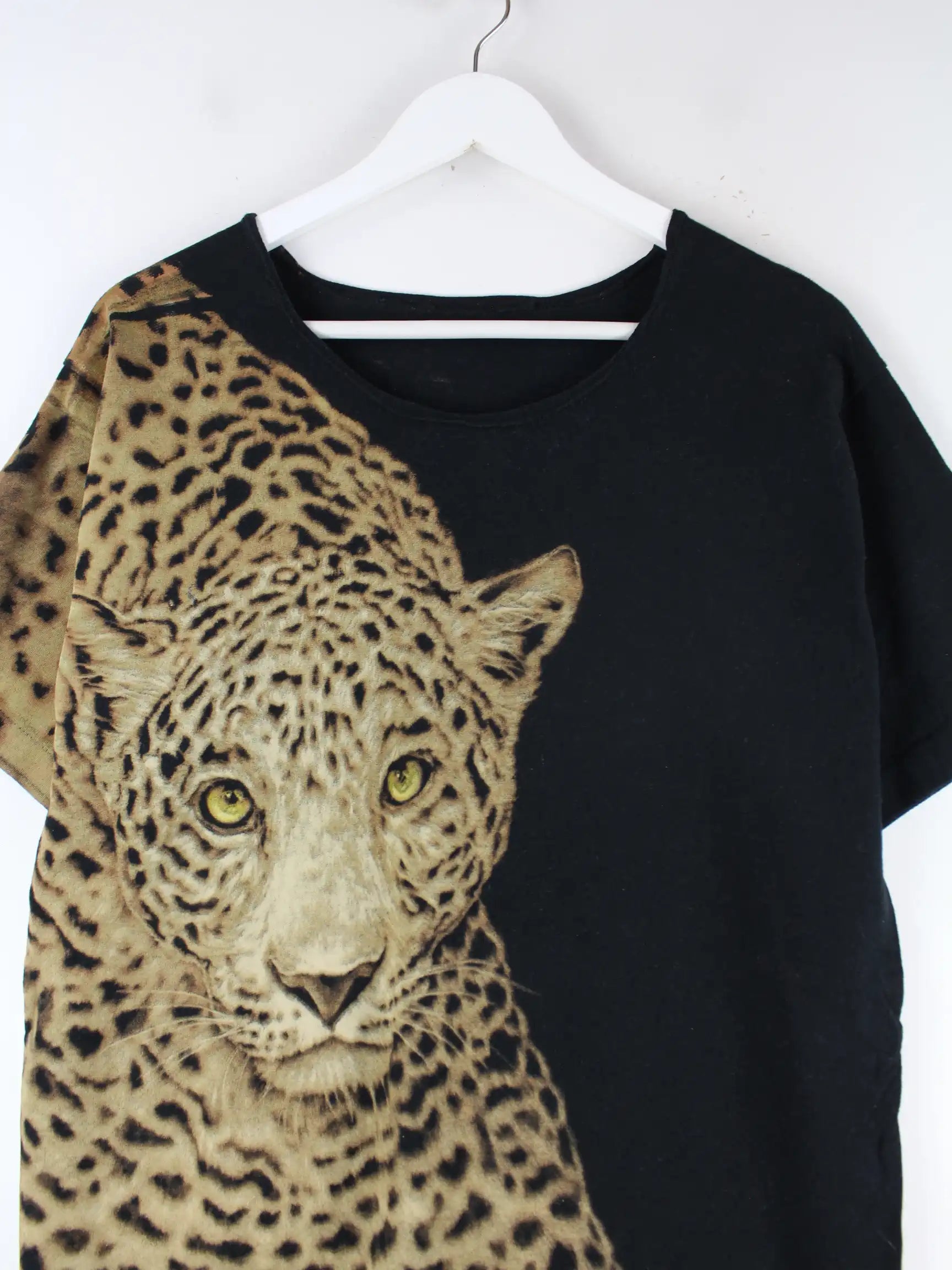 Vintage 90s Leopard Print Single Stitch T-Shirt Schwarz XL