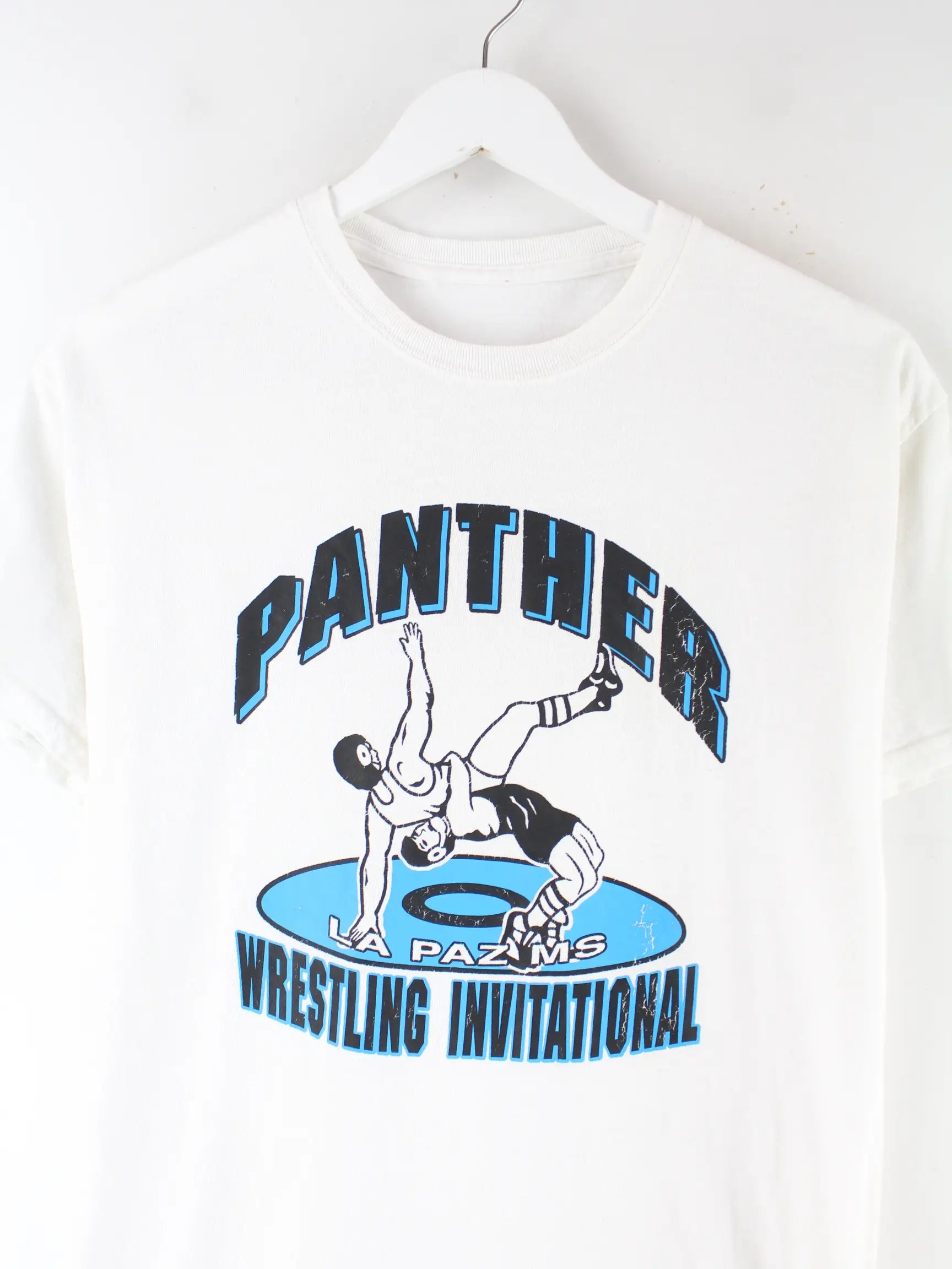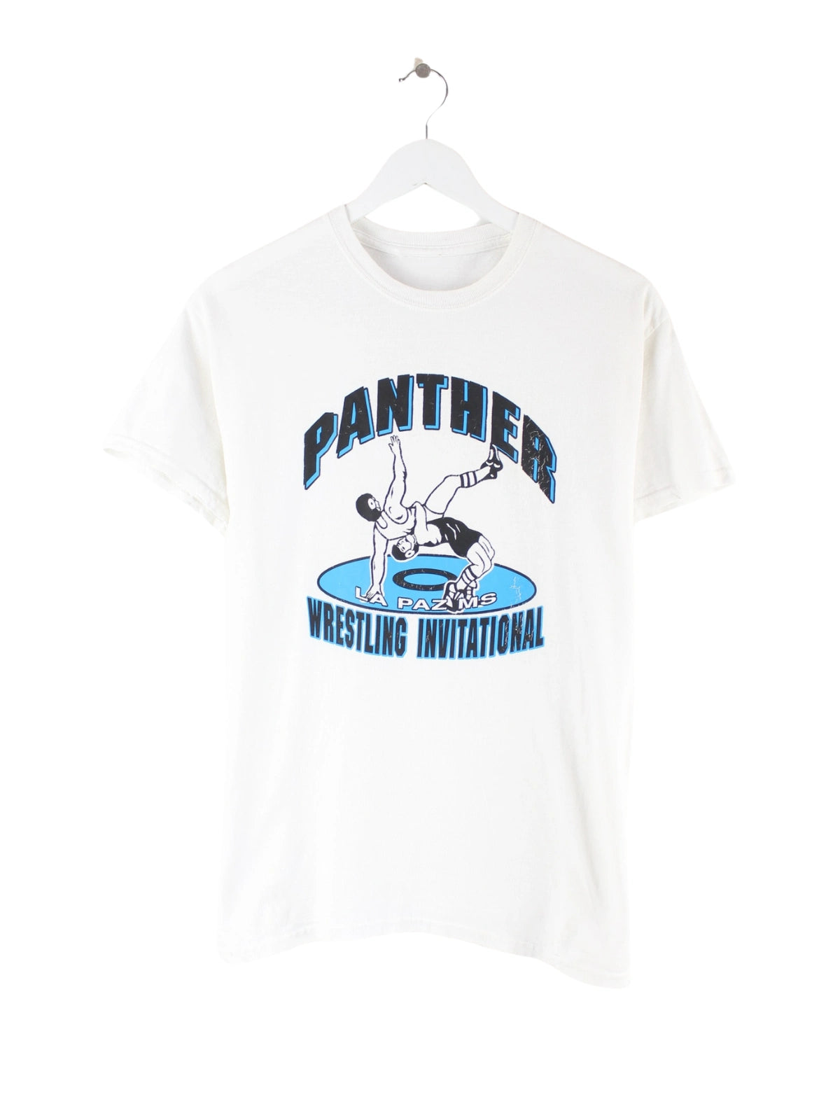 Vintage 90s Panthers Wrestling Print T-Shirt Weiß M