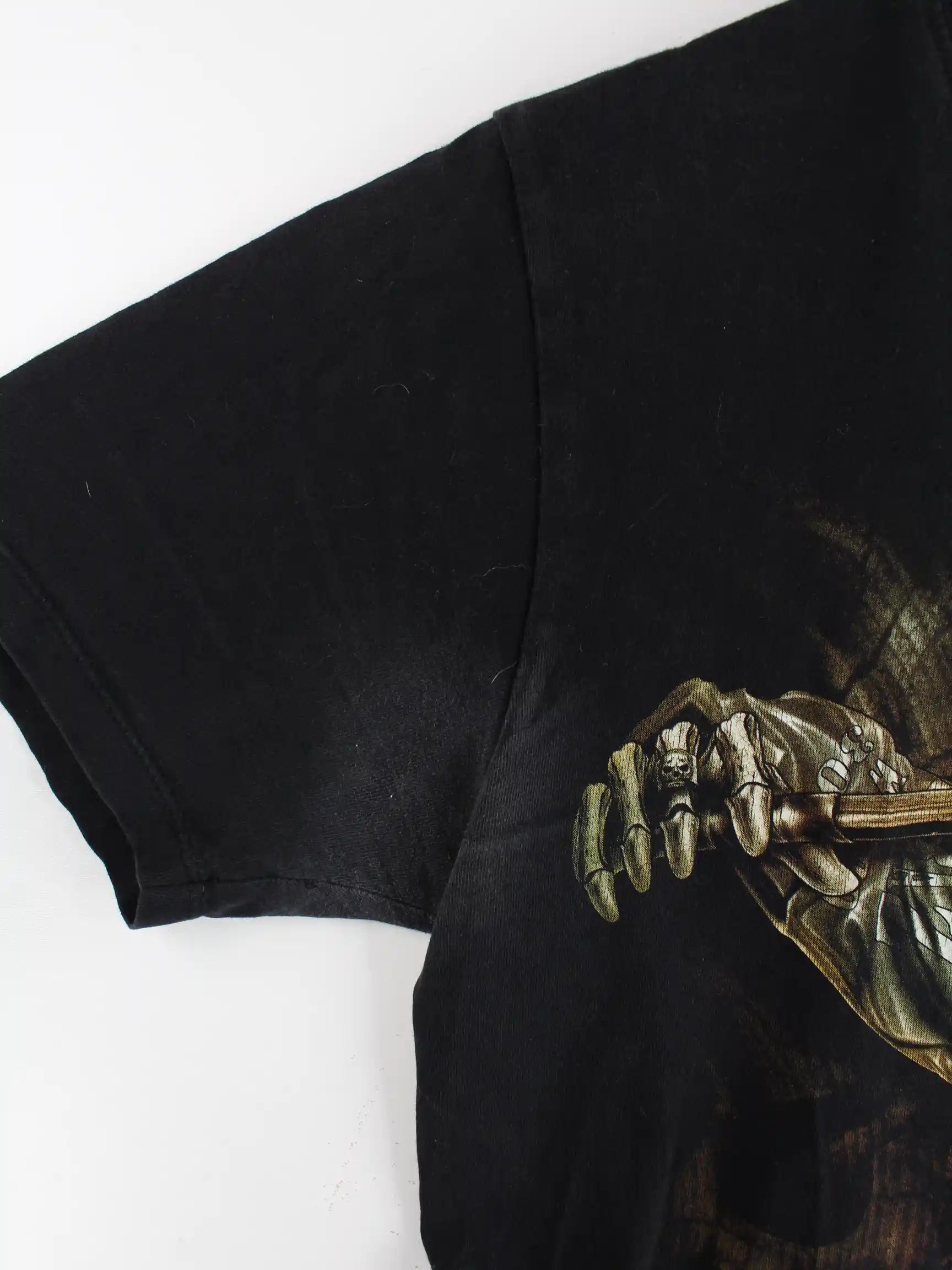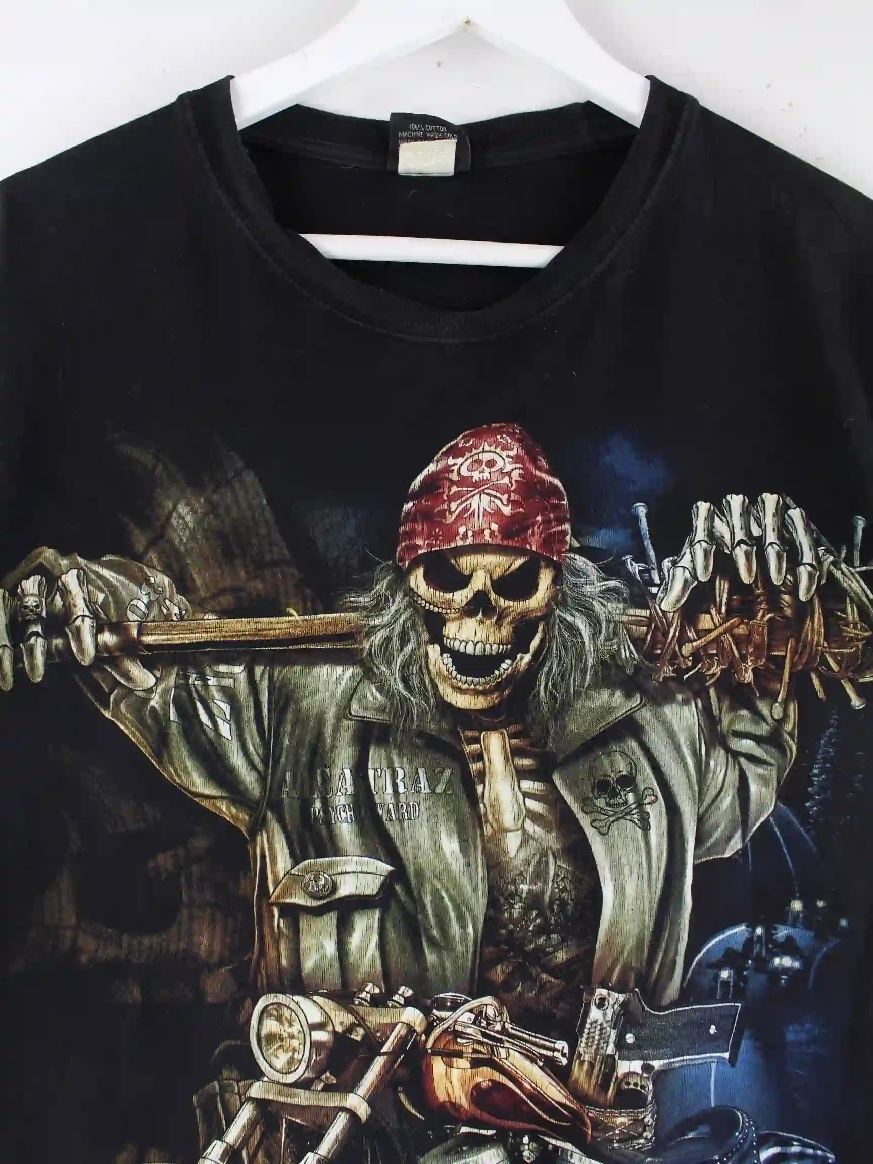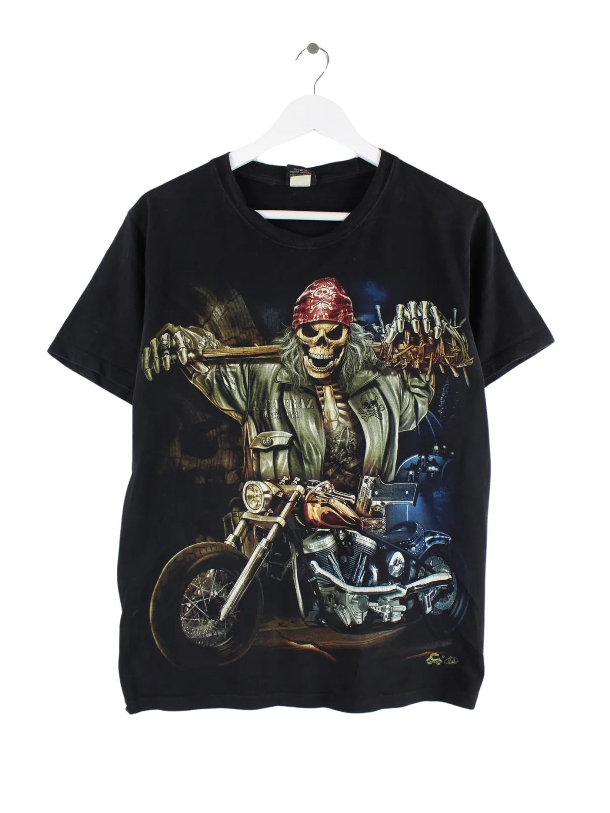 Vintage 90s Skull Biker Print T-Shirt Schwarz M