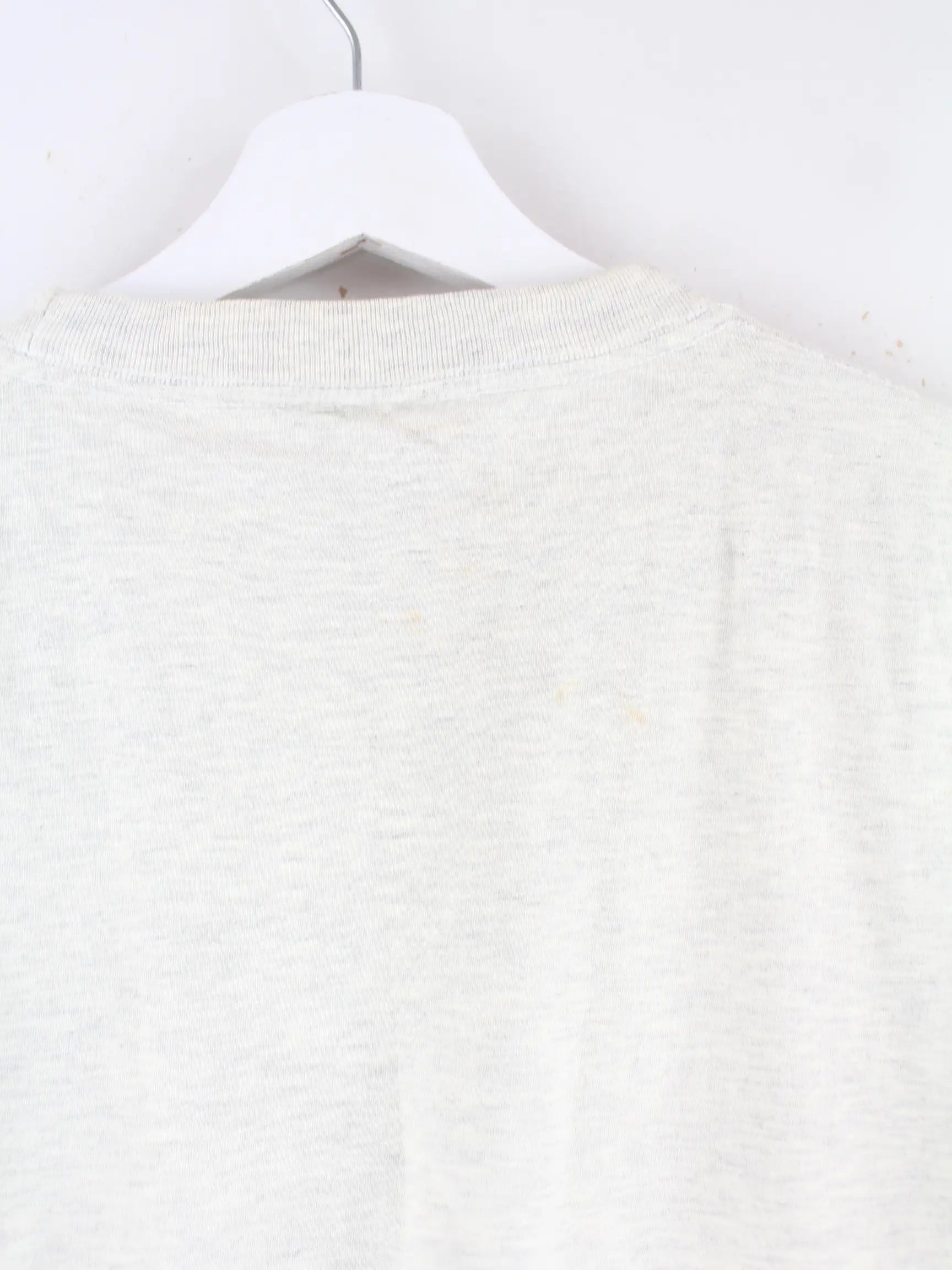 Graues Vintage T-Shirt aus den 90'ern in Größe XS. Es ist aus einer Baumwollmischung hergestellt. Den Zustand würden wir als 'In Ordnung' bezeichnen (vergl. Bilder).Mit schönem Moose Print.