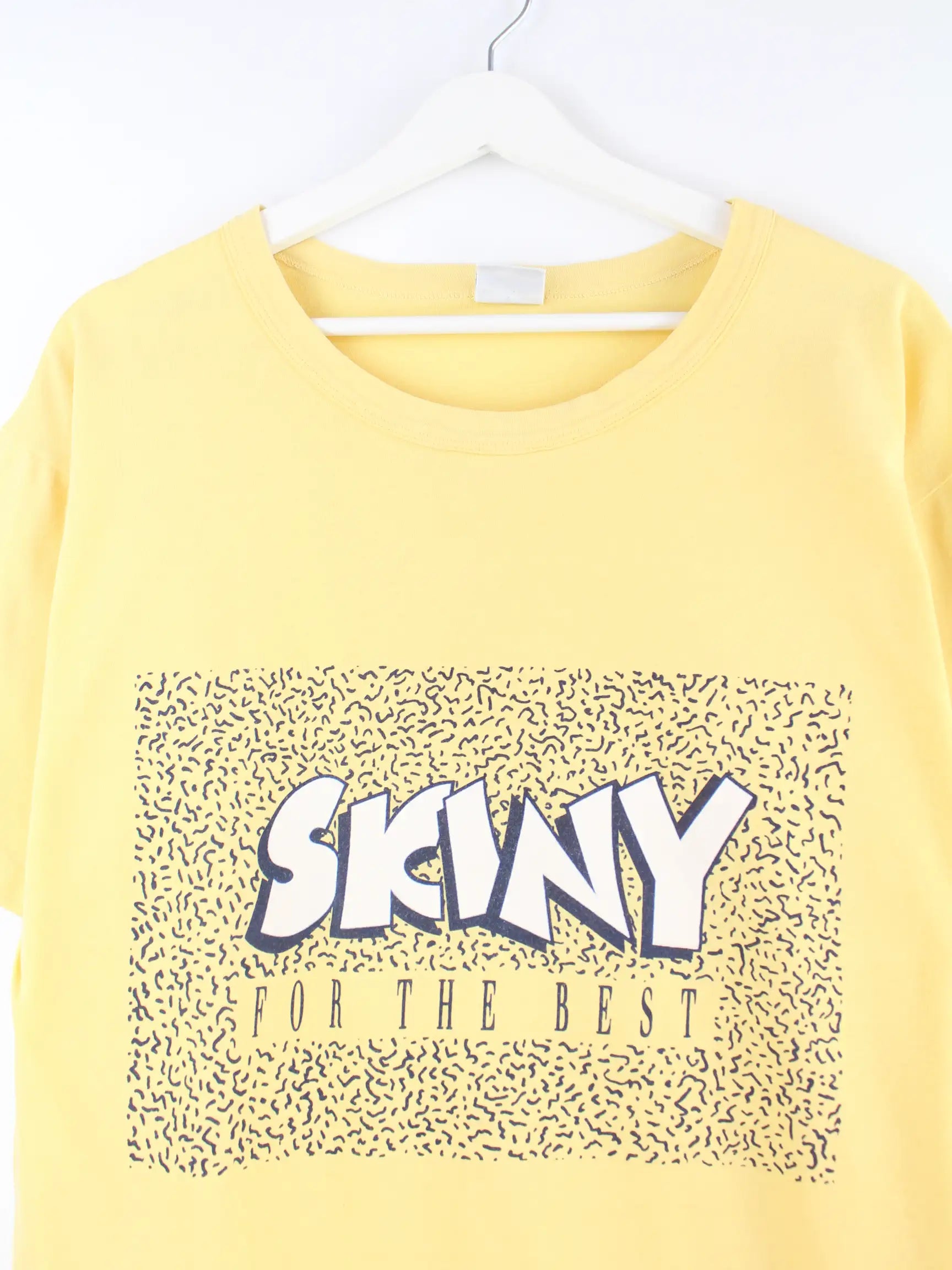 Vintage Damen 90s Skiny Print Single Stitch T-Shirt Gelb XL